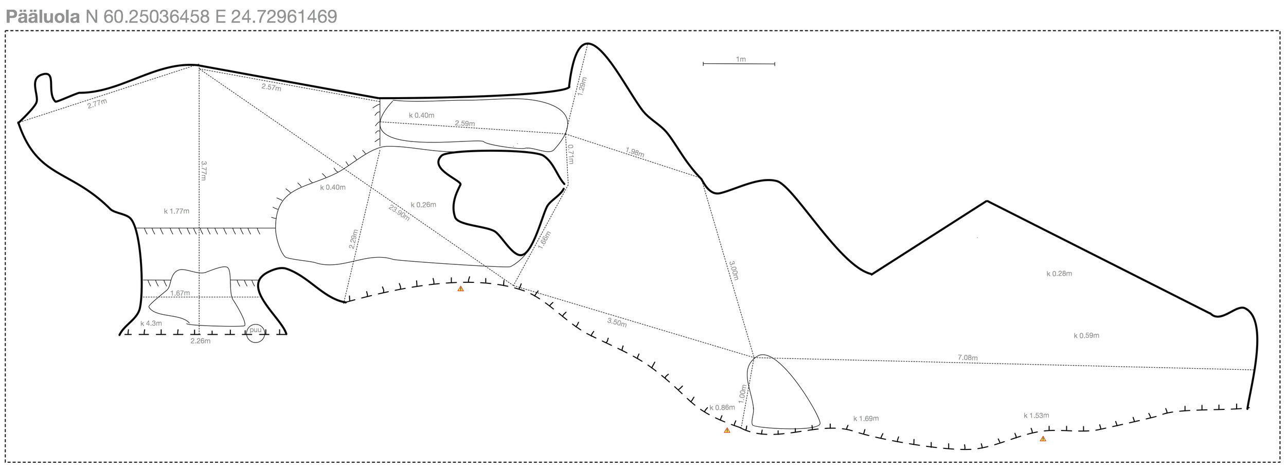 I had previously visited the Nepperi cave but not explored it fully. I had also visited the Kalkkikallio ("Limestone hill") caves in Vantaa, and taken some measurements. Those measurements indicated that the main cave there was six meters (!) long, and that there might be a squeeze through another cave in the area that would total eight meters.