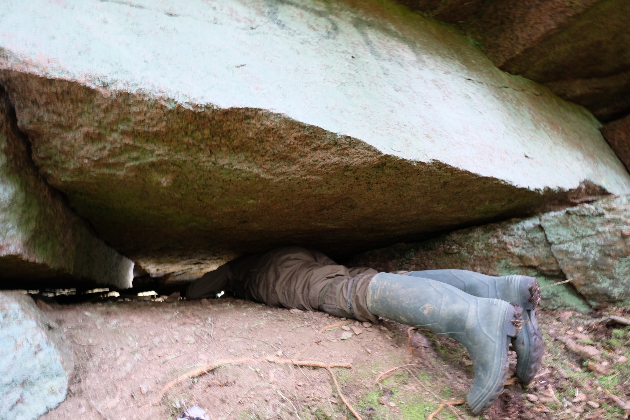 The dark, cave-like part is shorter in Nepperi (something like 4-5 meters) than in Kalkkikallio (6 meters). But to get to the dark part in Nepperi you need to traverse under the rock roofs on both ends for several meters.