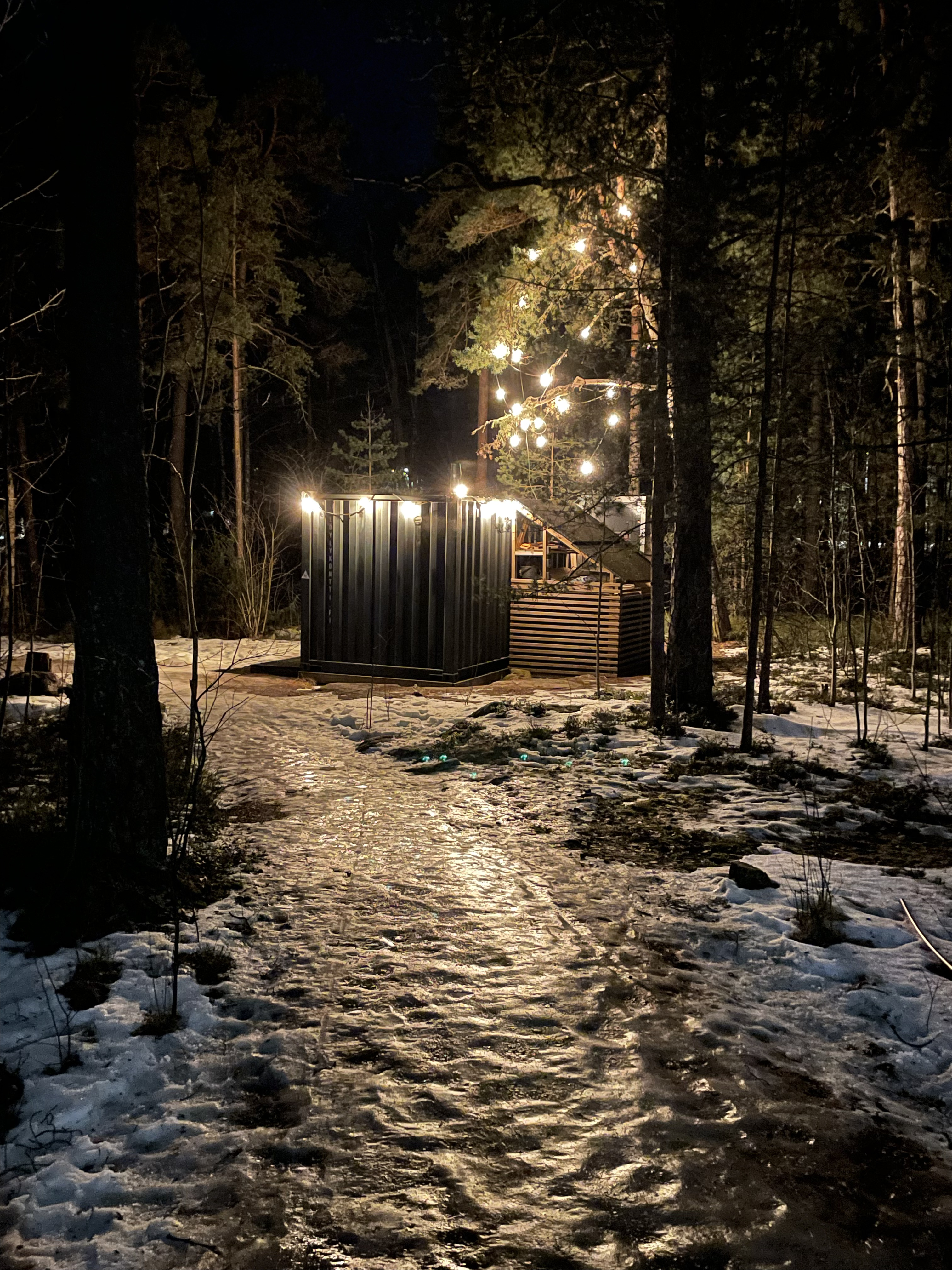 The sauna container is an enterprise that has several container saunas in Espoo. You have book your visit, per seat or by booking the whole sauna for your party. Very nice! But I think they don't have showers, except in the summer. Oh well you can always roll in the snow, or if there's snow then walk around naked in the cold rain and sleet :-)