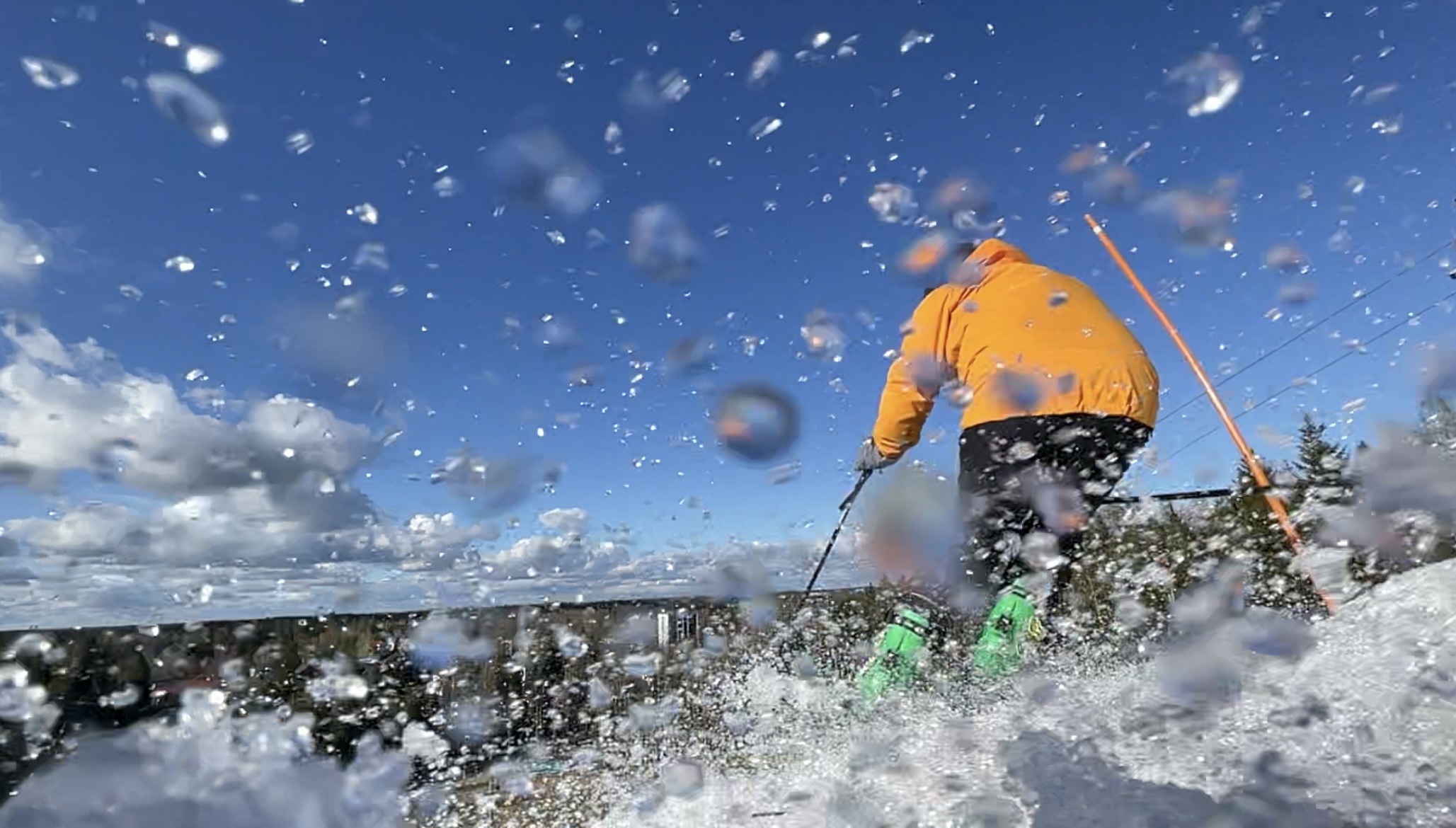 May ski turns on the melting local ski hill, some snow still left despite the early spring. Also a visit to the smoke saunas in Kuusijärvi that were empty due to the May Day.