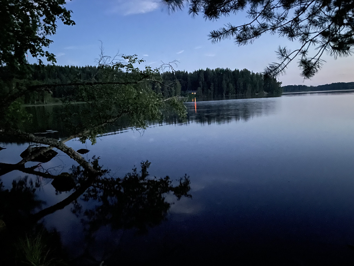 Arrived late from Madrid. And not only that, but the car's ventilation was broken, so drove to the cottage only late in the evening. Arrived shortly after 11pm, and did a swim at midnight. Such bliss, water was very warm but still cooled us down a bit, everything was quiet, the darkness had set in, lake had no waves. Nice!