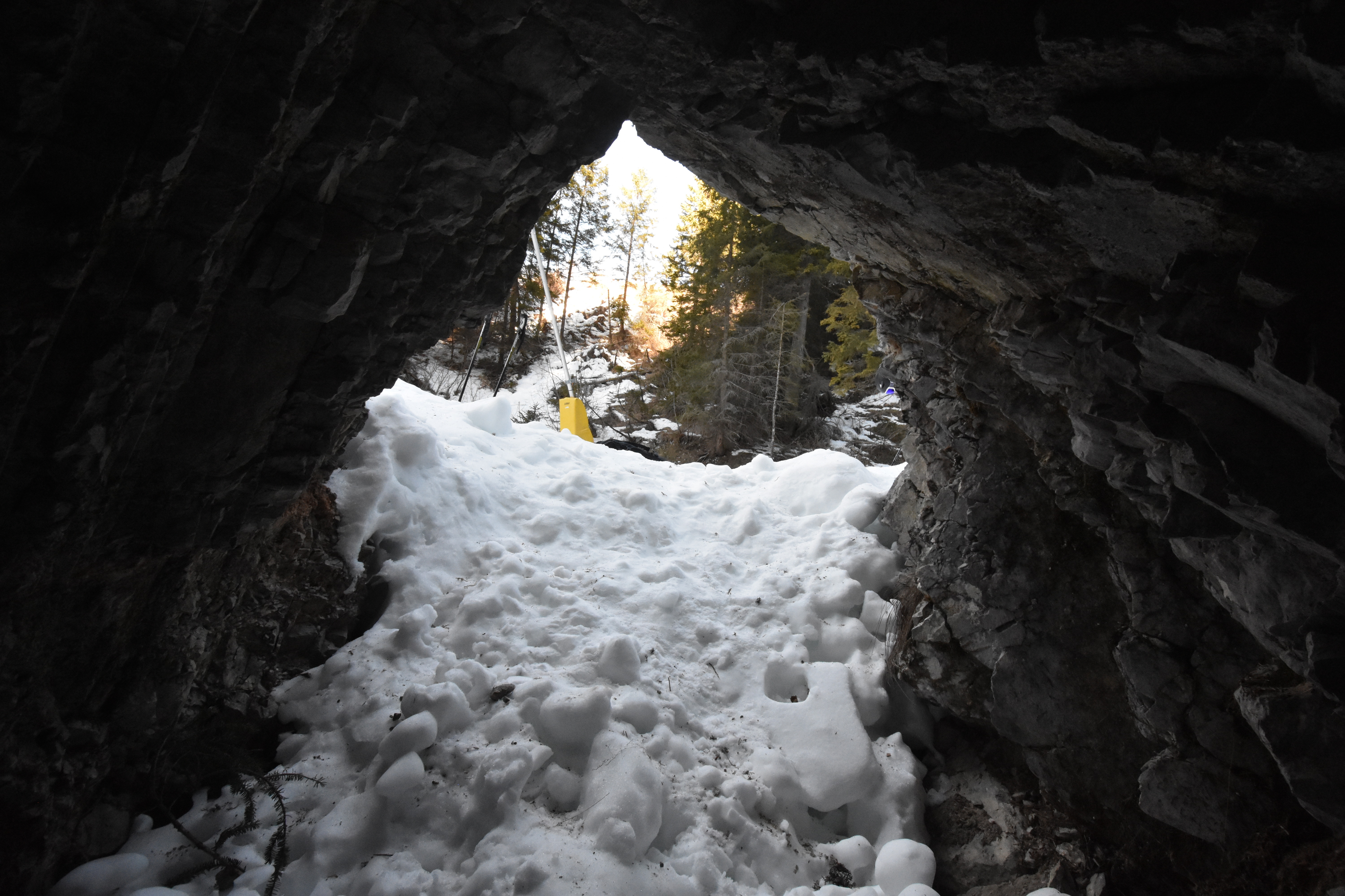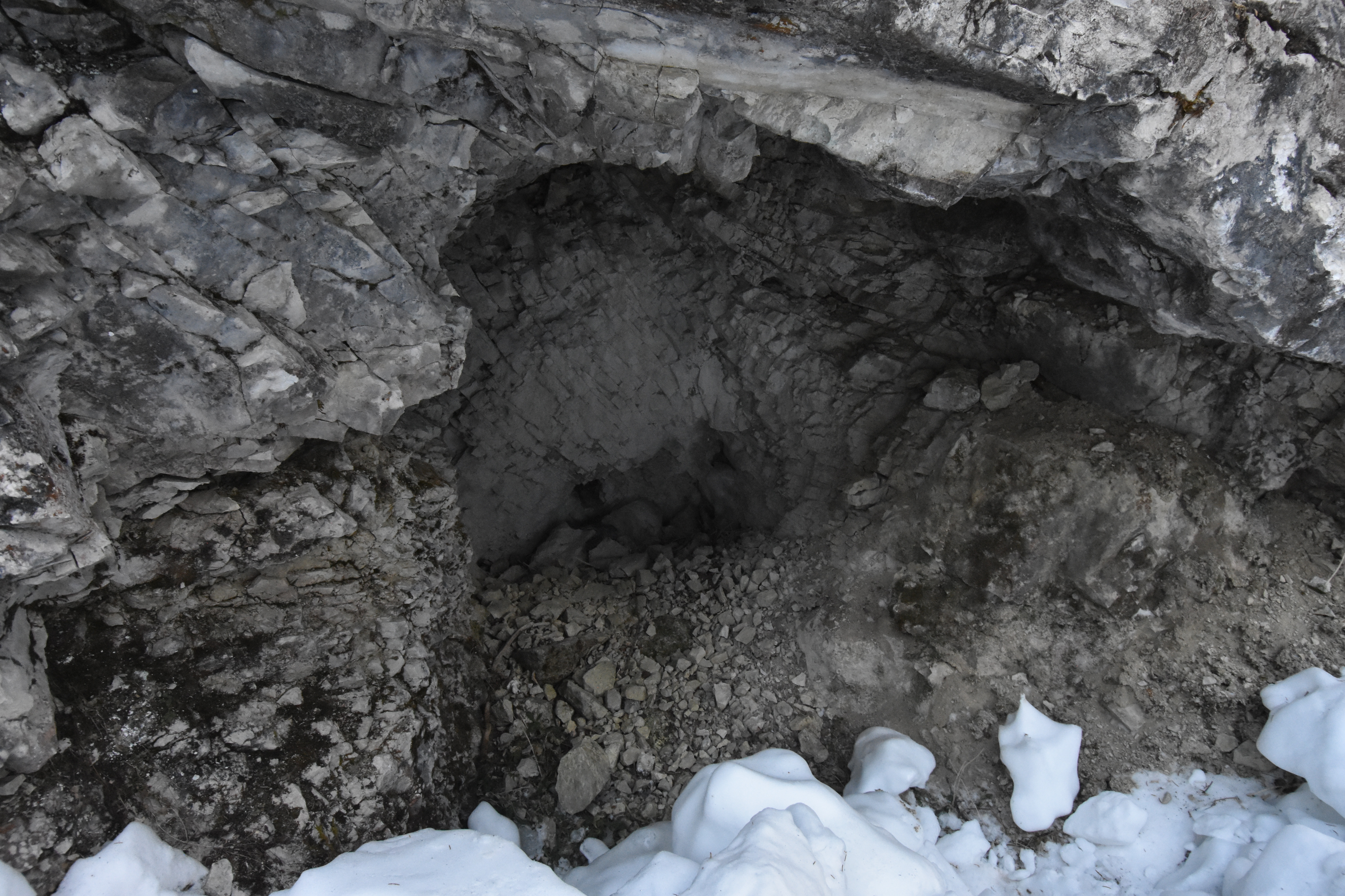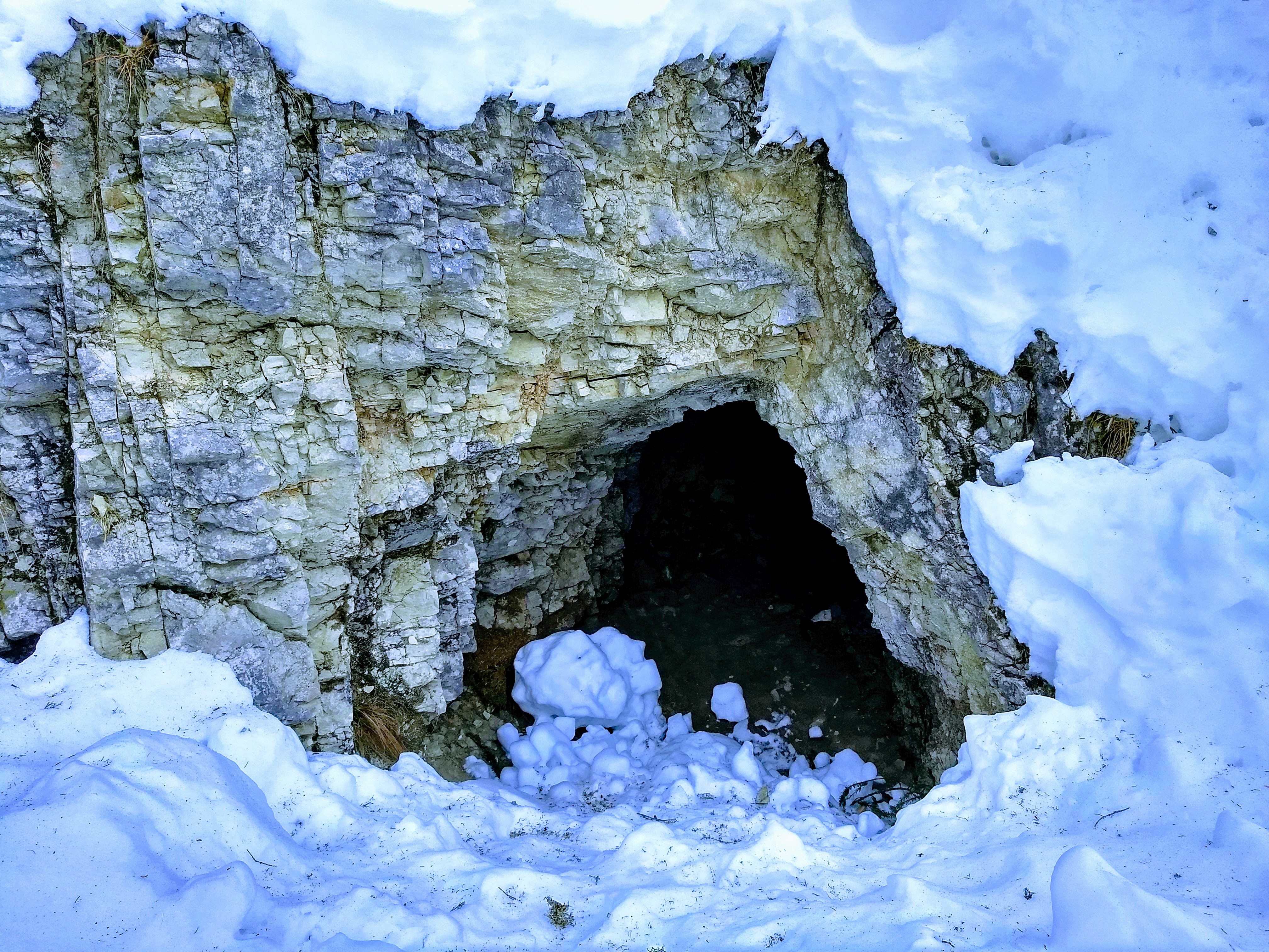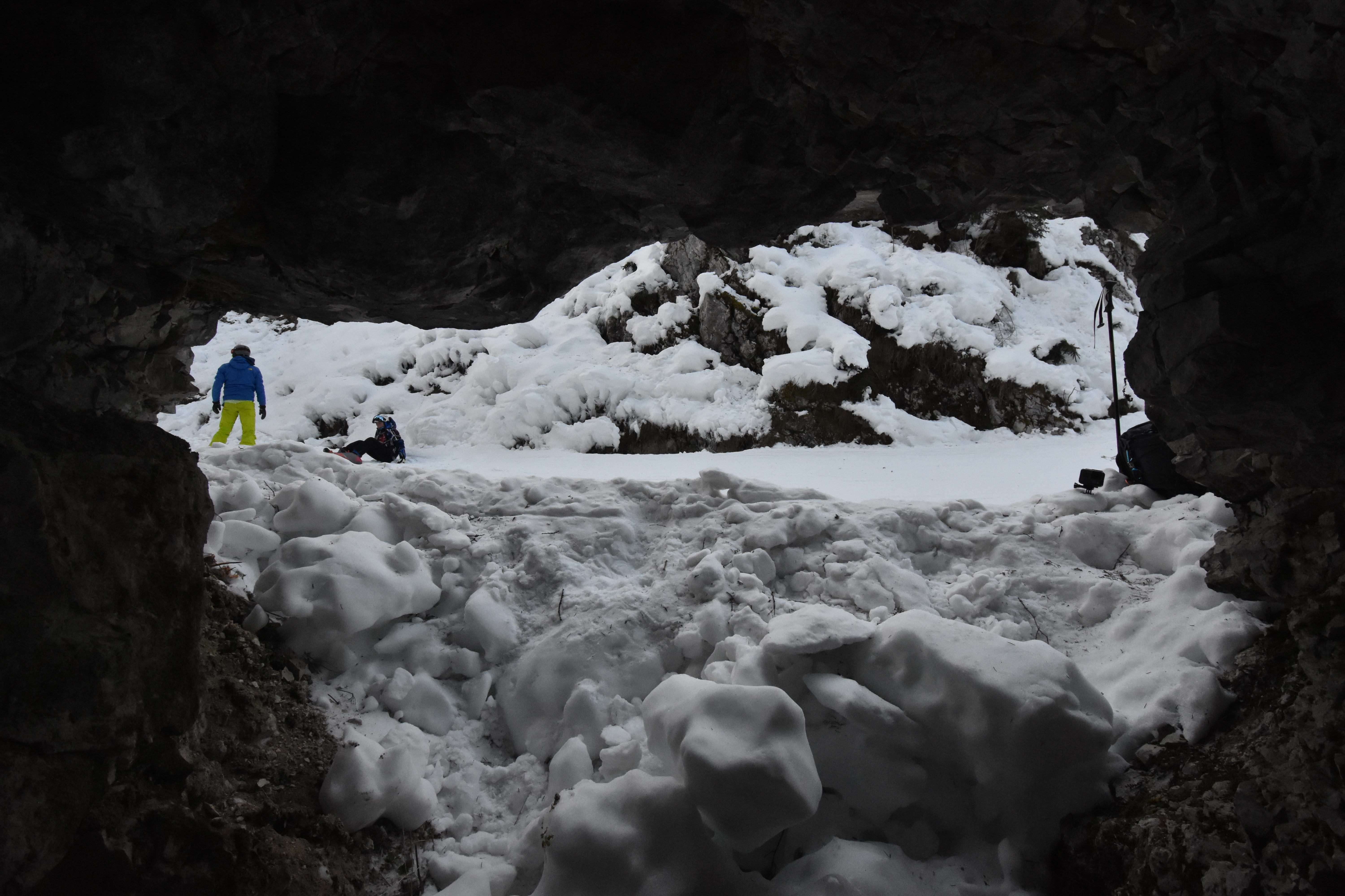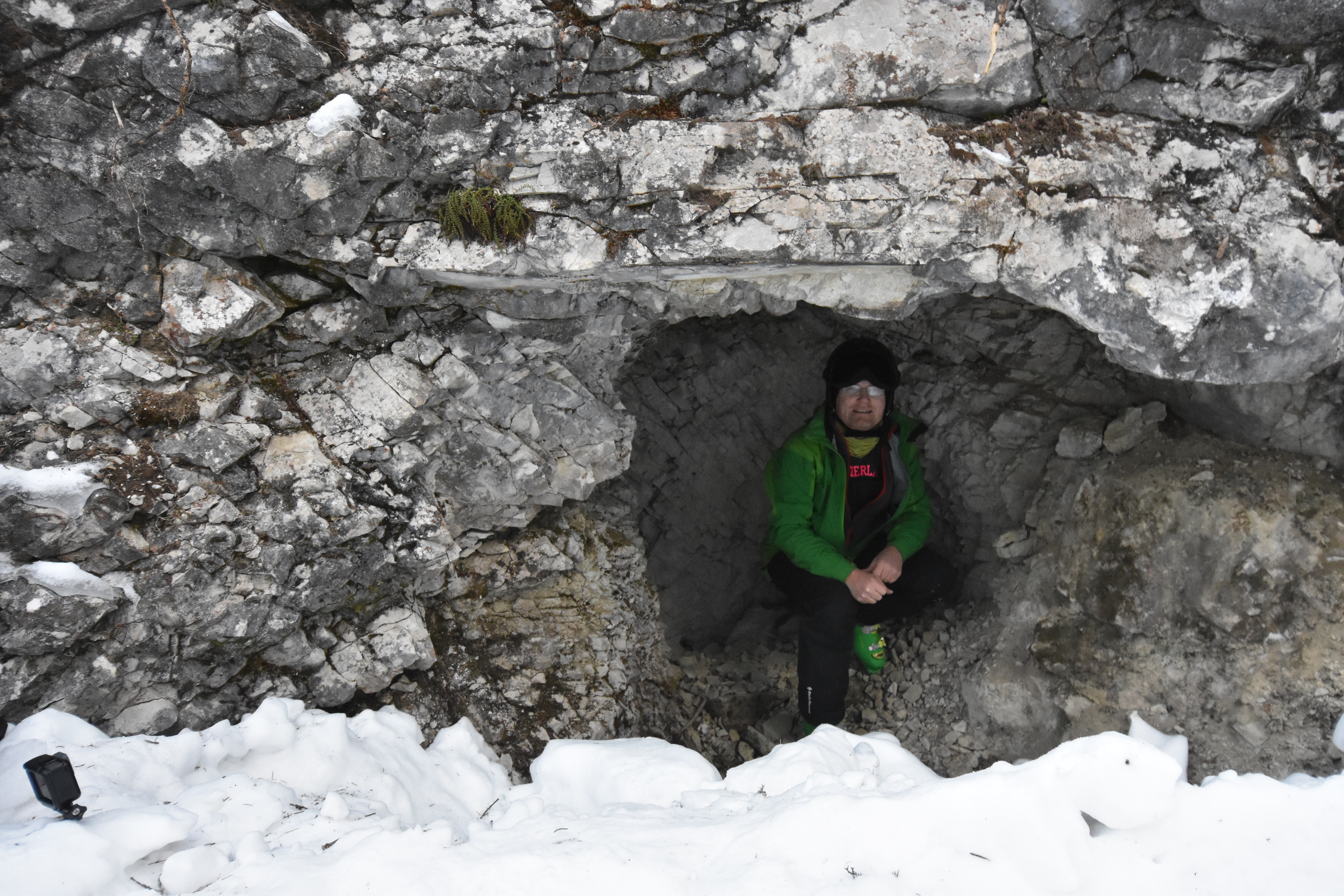 While skiing down the 'Grotte' ski slope in Madonna di Campiglio, Italy, we spotted some caves. Shitty caves... literally... apparently if you are overdue for a bathroom break it becomes an appealing alternative to sneak into a cave by the ski slope to do your business. Sigh. Otherwise nice, small caves, probably carved by the water running in the river bed that this ski slope is on.
