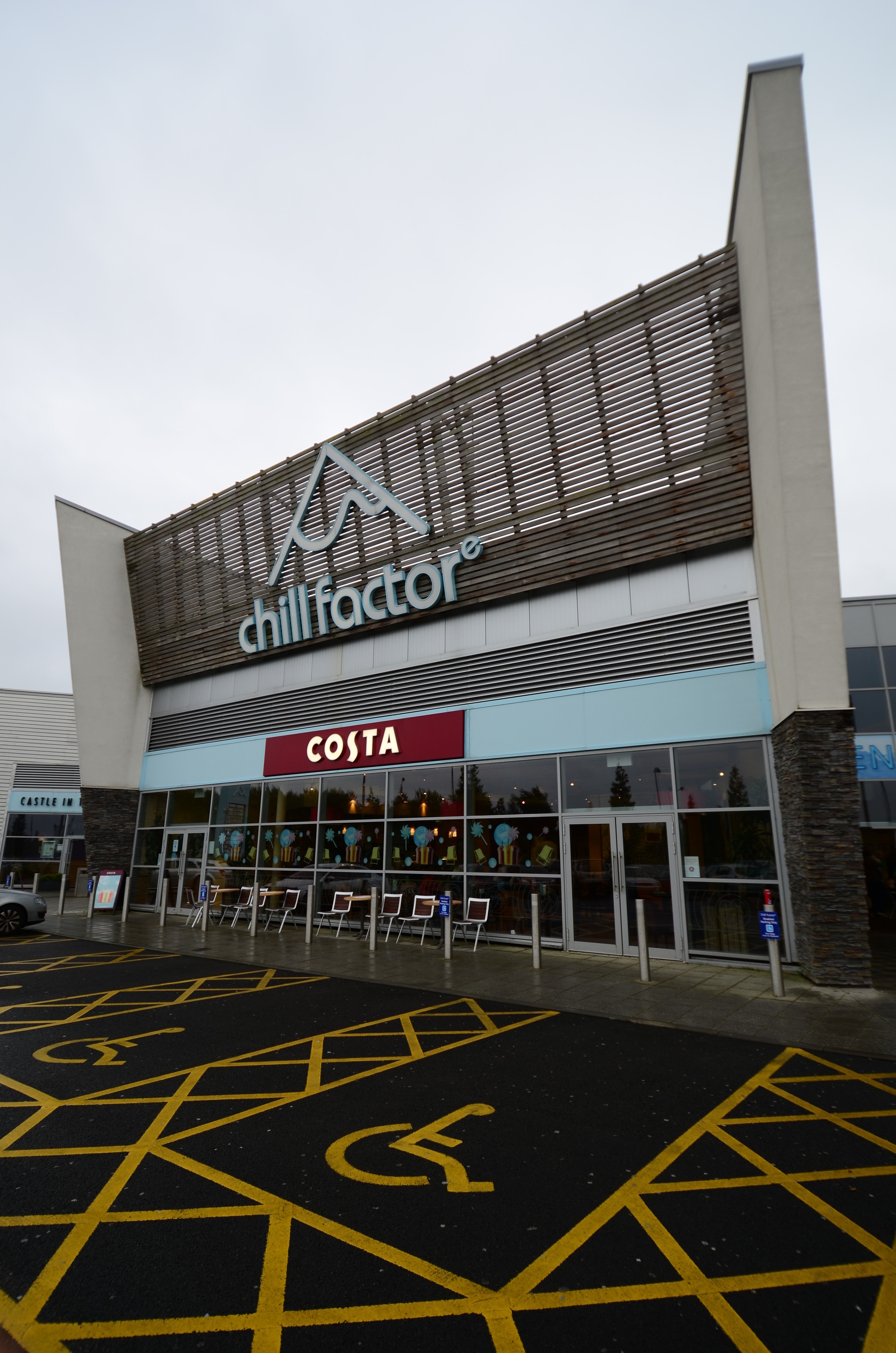 Chill Factore is at a small shopping mall in the Trafford Quays Leisure Village, six kilometers from Manchester city center. I came from the airport by taxi, and paid 20 £ for this 20 minute trip.