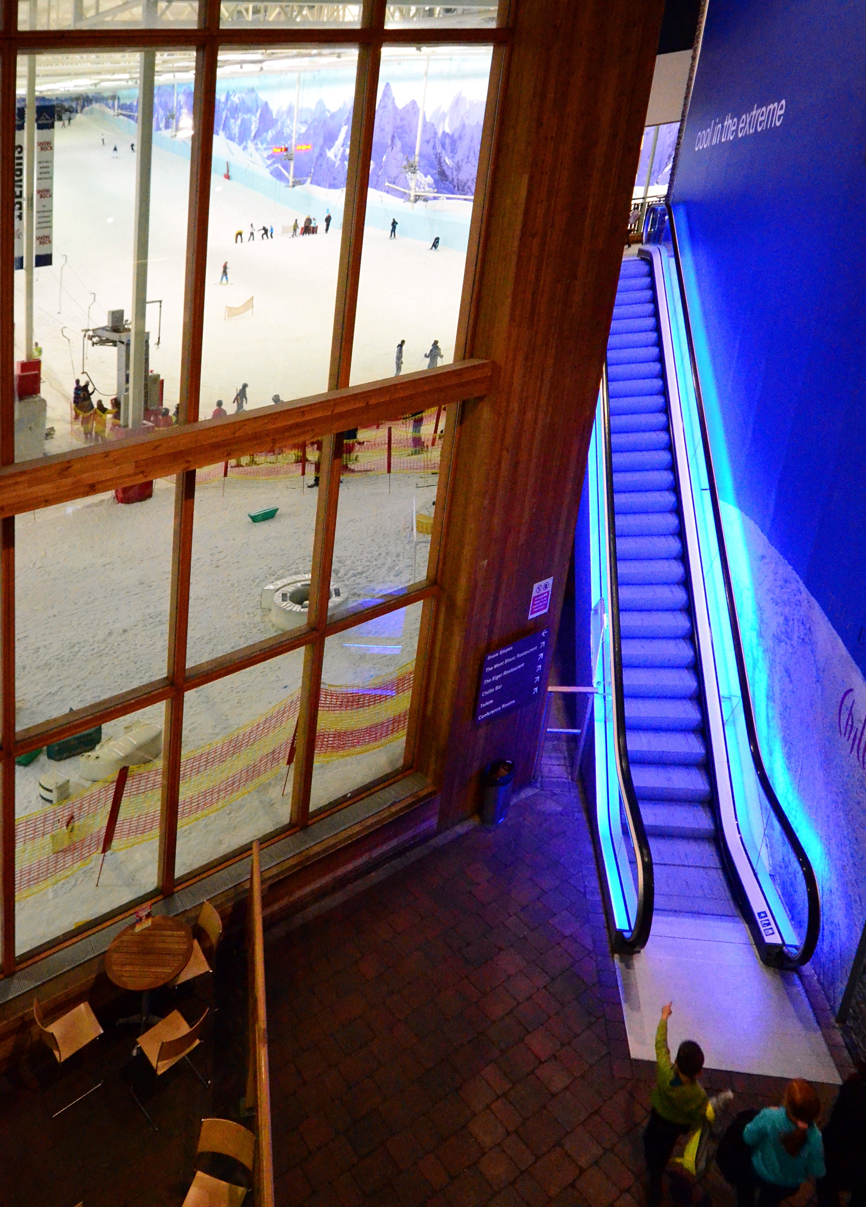 Visually, most indoor ski places are an eye sore. Along with the Dubai ski slope, Chill Factore makes an exception. The building is modern, attractive, and well maintained. As one example of this, at the entrance to the ski slope from the mall area, there is a large window, a viewing terrace, and nicely lit escalators to the after-ski and restaurant area.