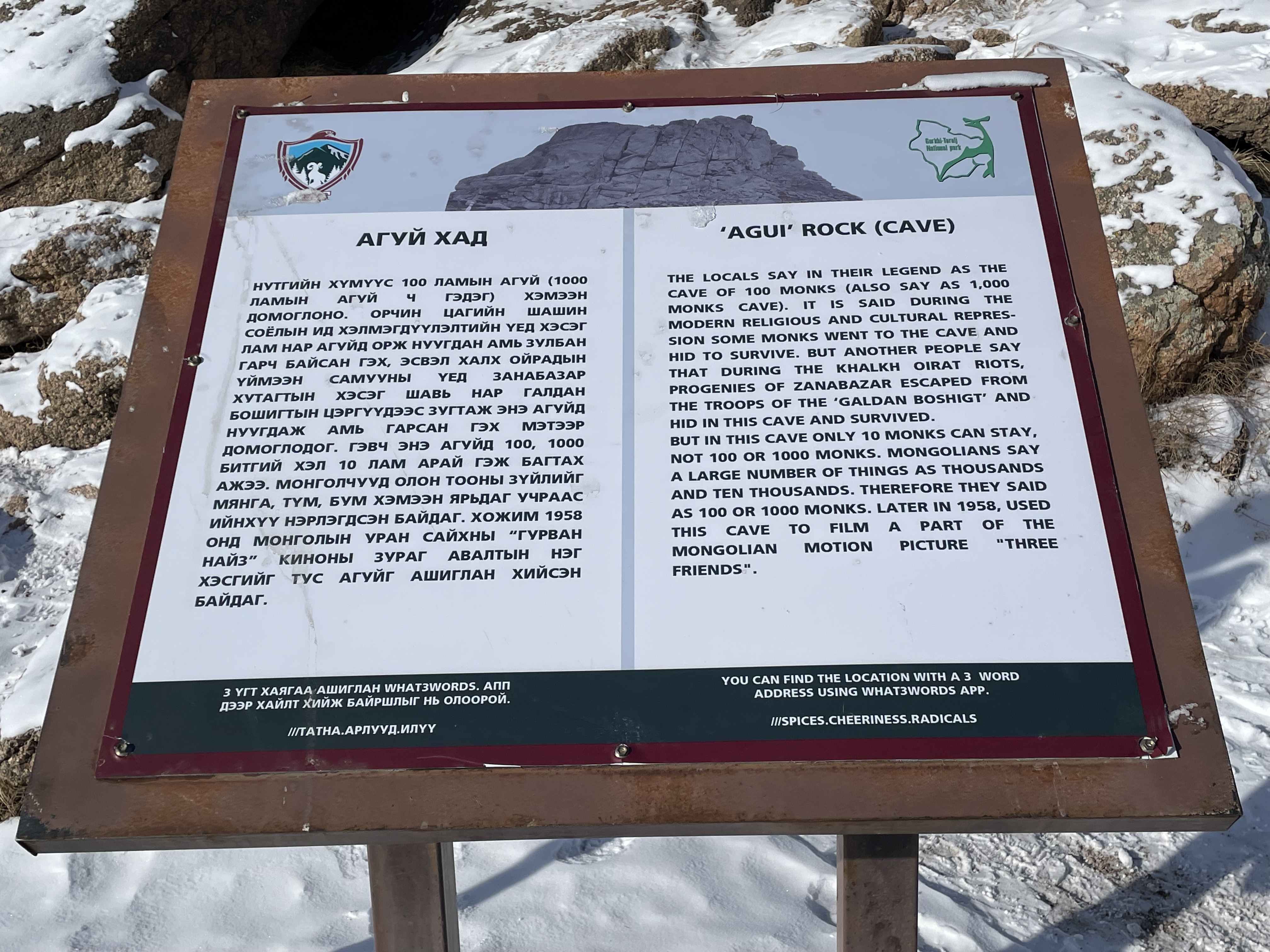 It was surprisingly difficult to find visitable caves in Mongolia. But since I was in Mongolia for the skiing, I also wanted to visit a cave... as this would be my 32nd country that I'd have been in caves at. I finally managed to find one, as our guide Nomuundalai Batdelger remembered a cave in the Terelj park. I had found many caves from Mongolia, but most of them were far away from Ulaanbaatar, and the short trip and the winter didn't really allow travel. For instance, travel to the Khoid Tsenkher cave would take some 17 hours by car to western Mongolia. By the way, I have a separate article about the caves in Mongolia for future reference if anyone wants to visit the caves that are publicly known.