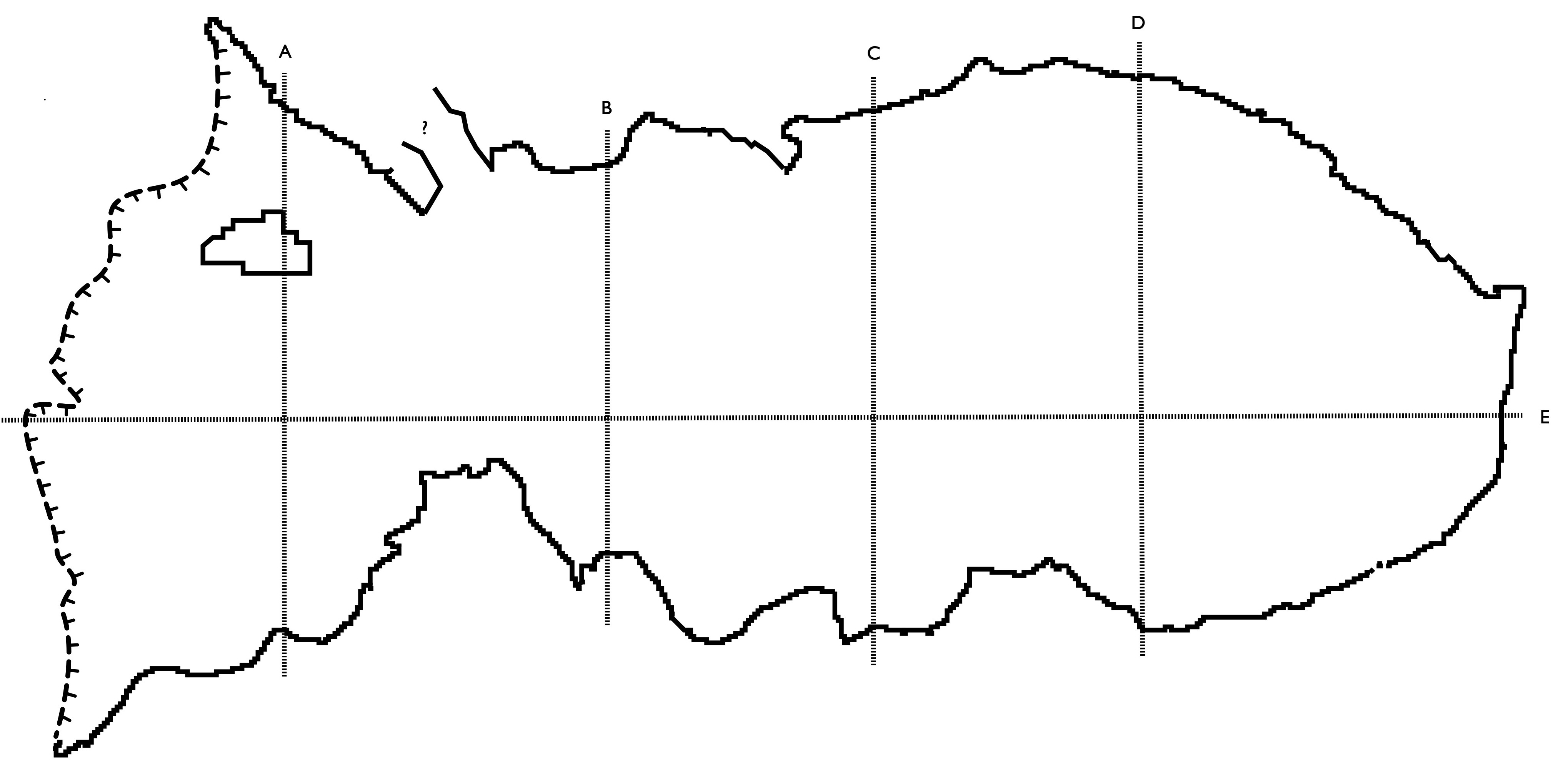 And an example vertical cut view from point A. Note how the cave is slanted to the side.