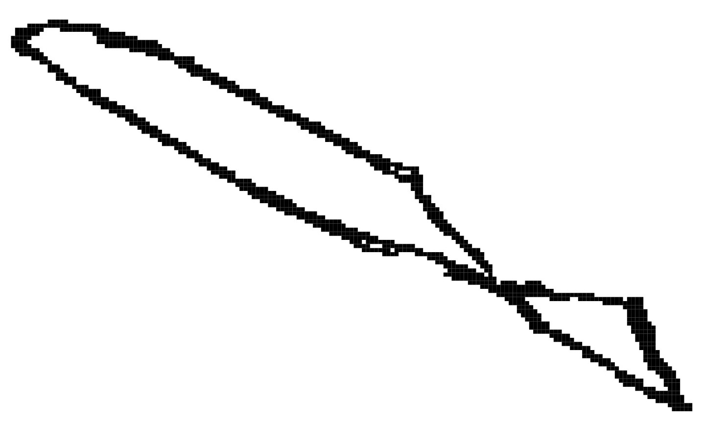 Here is the 3D scan, turned into a horizontal map and some vertical cut-outs. Here's the plan view (horizontal) map: