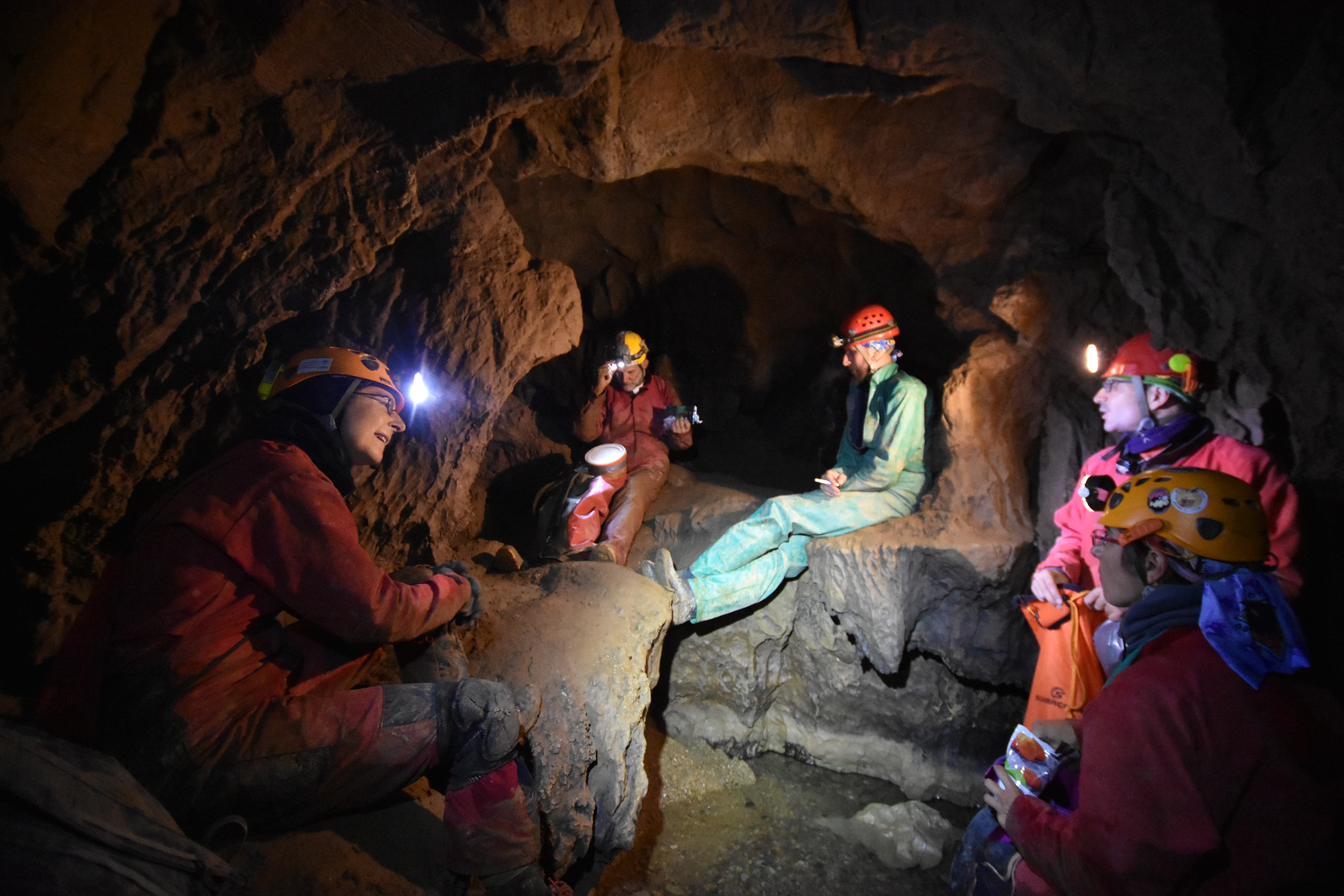 But it was a wonderful tour overall, and a great group. Very nice to have met more cavers from around Europe. Here are some pictures of the team having breaks, helping each other in the climbing sections, etc: