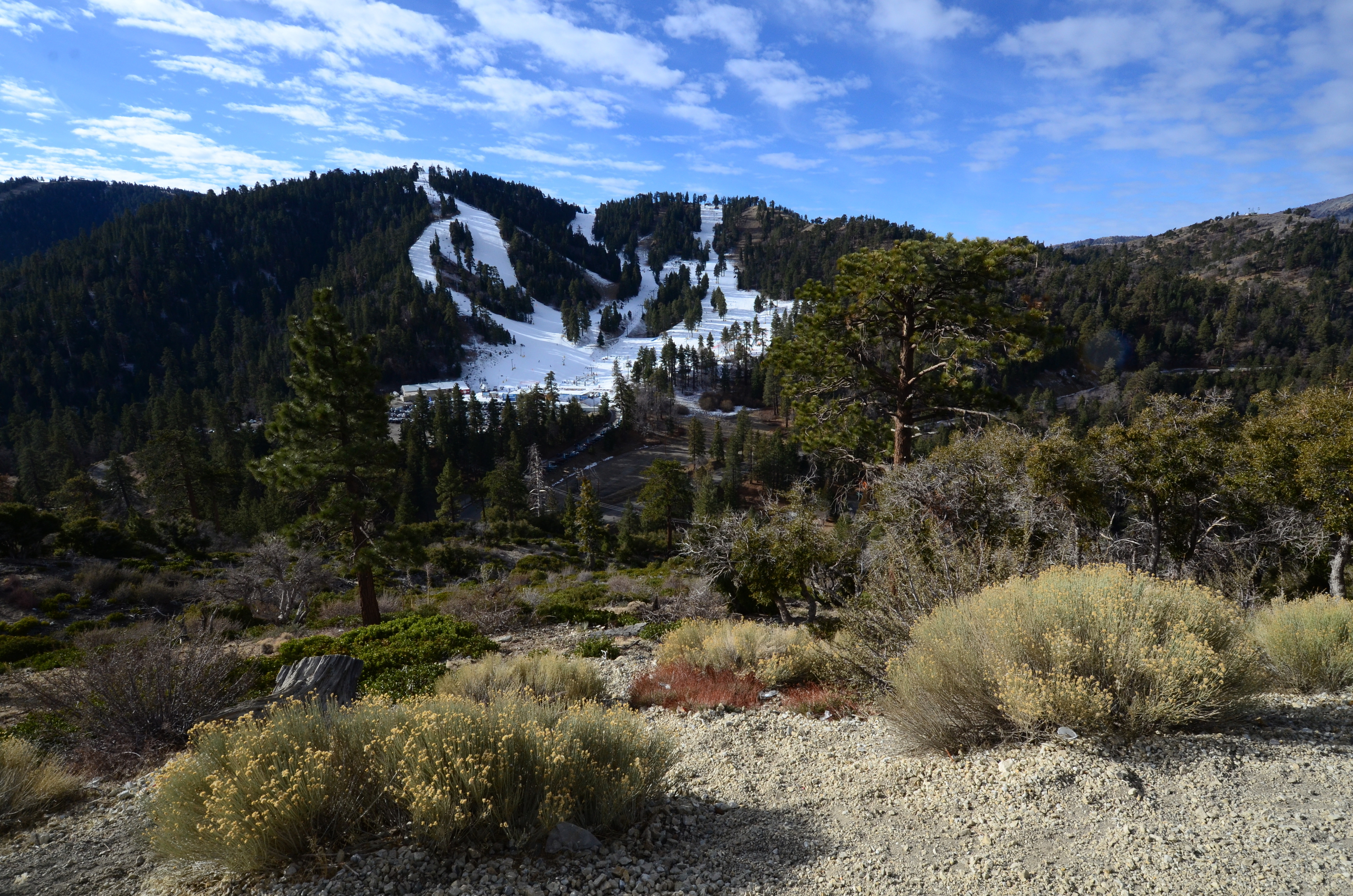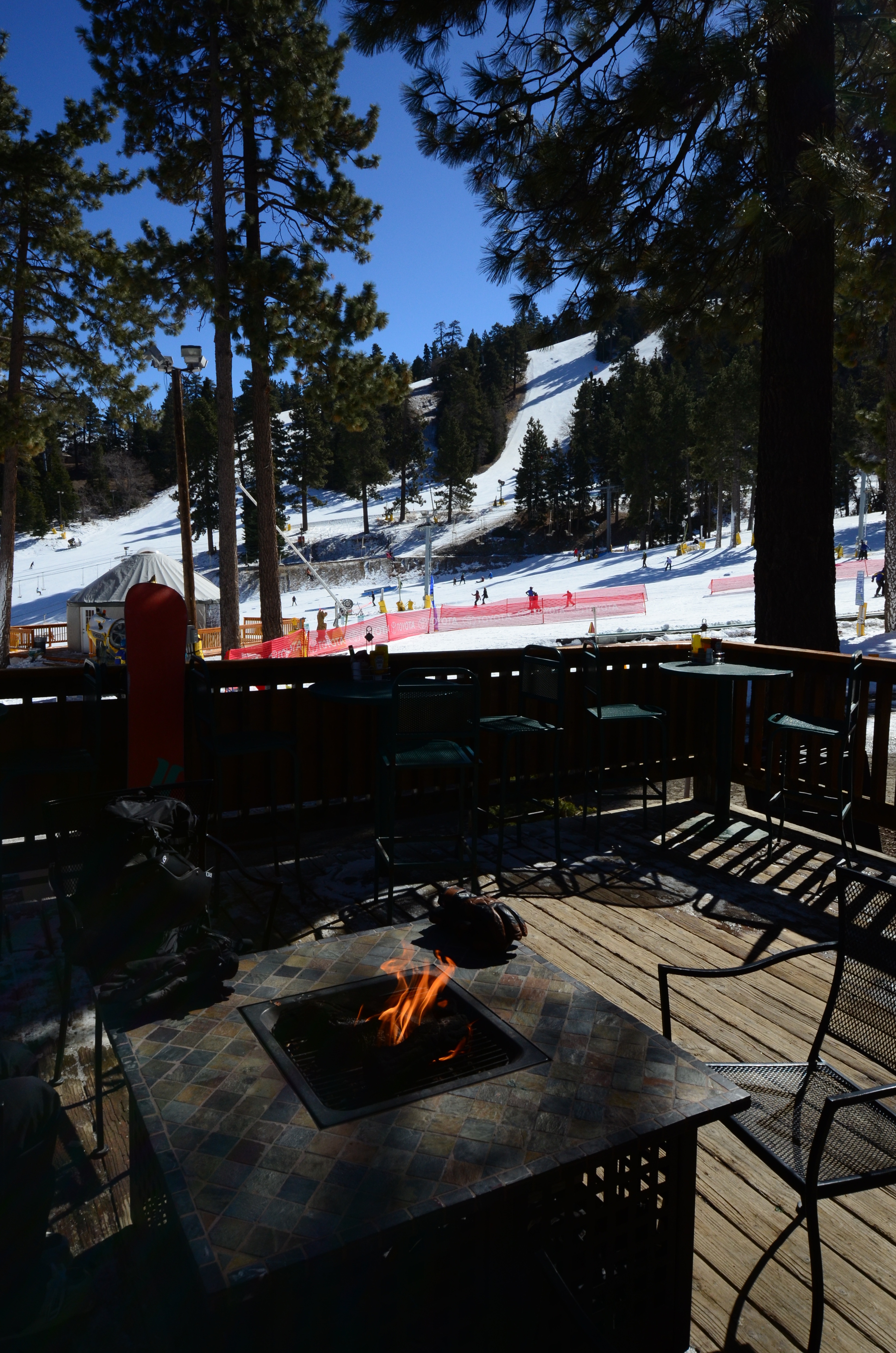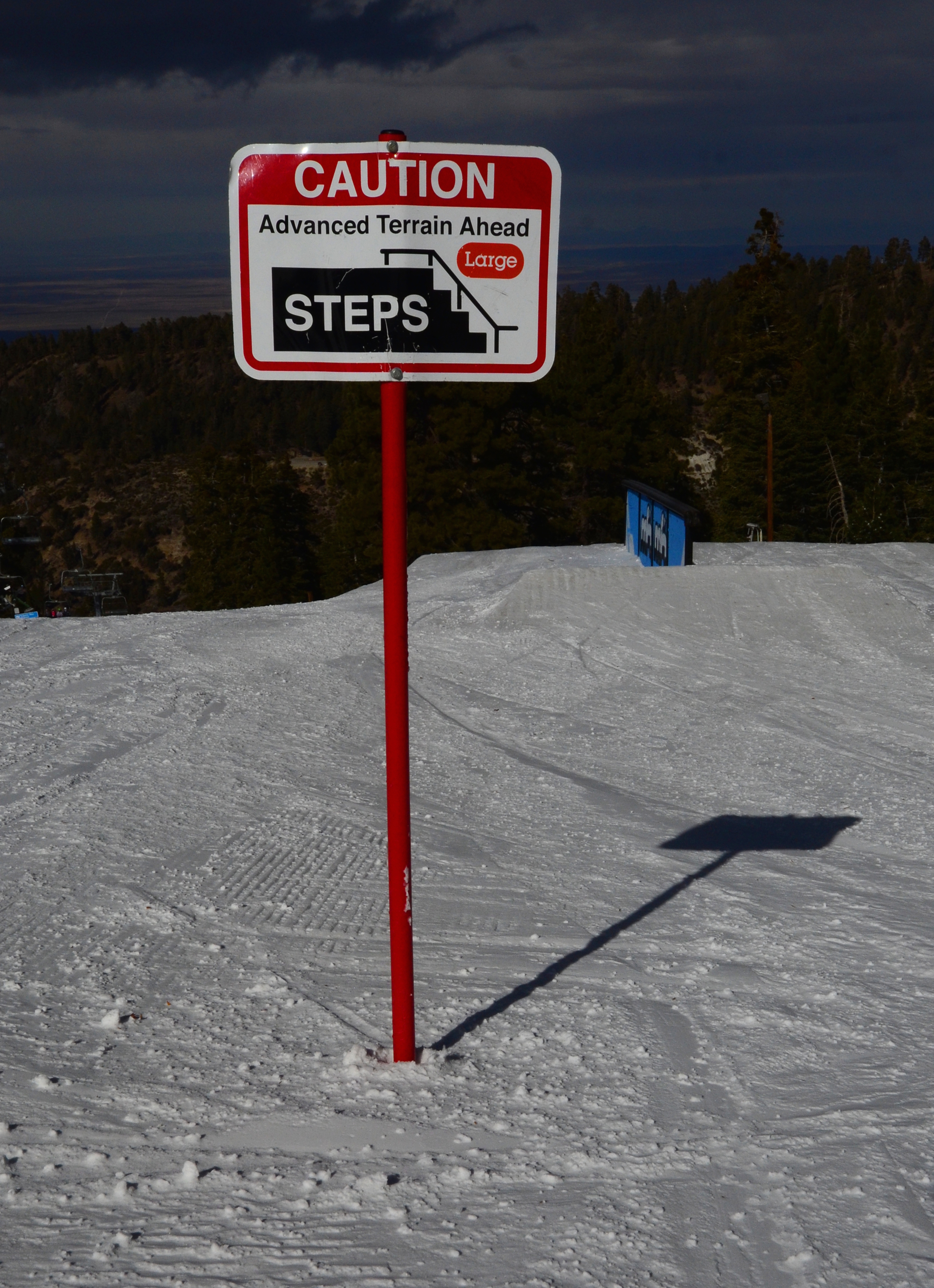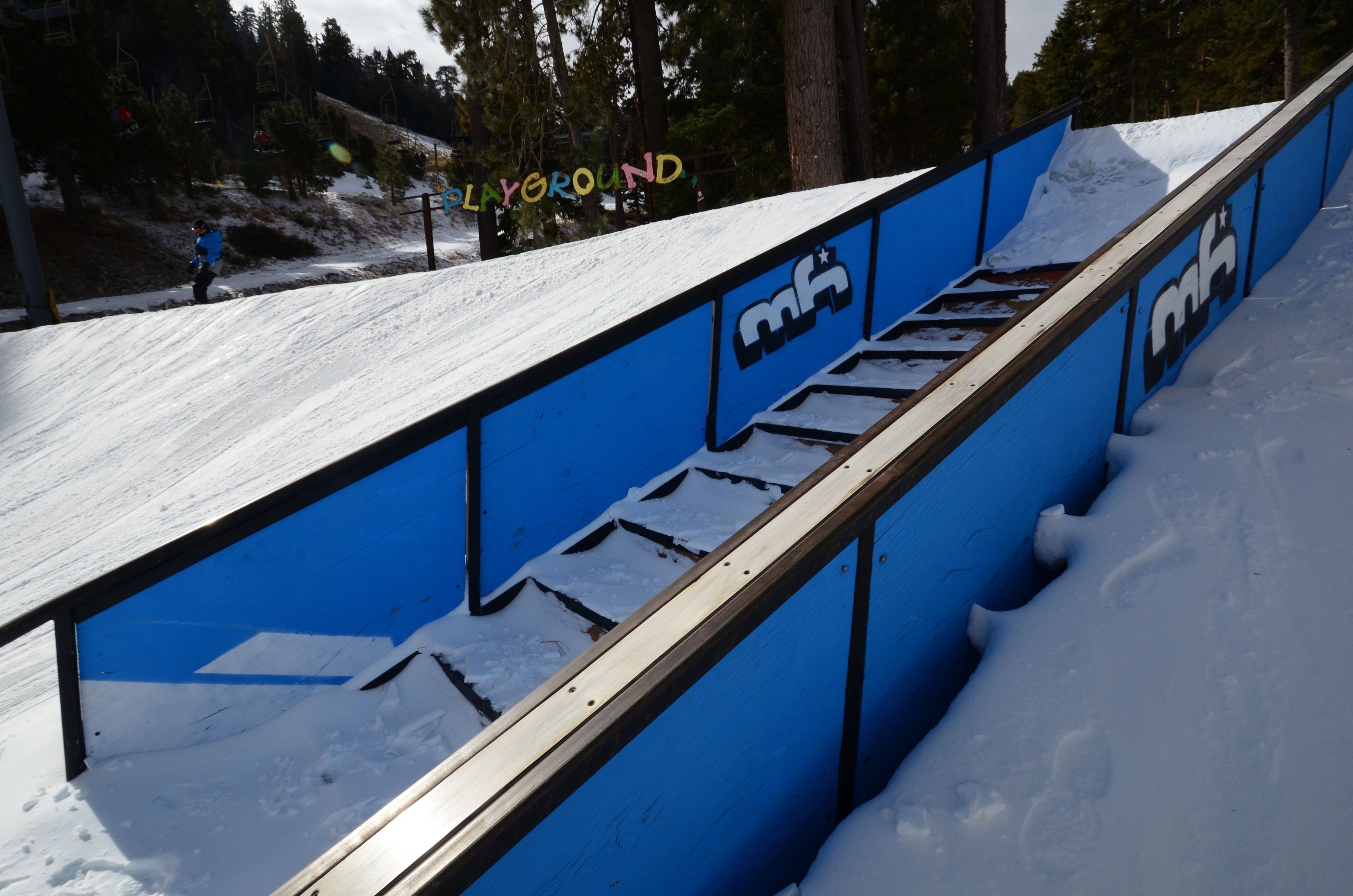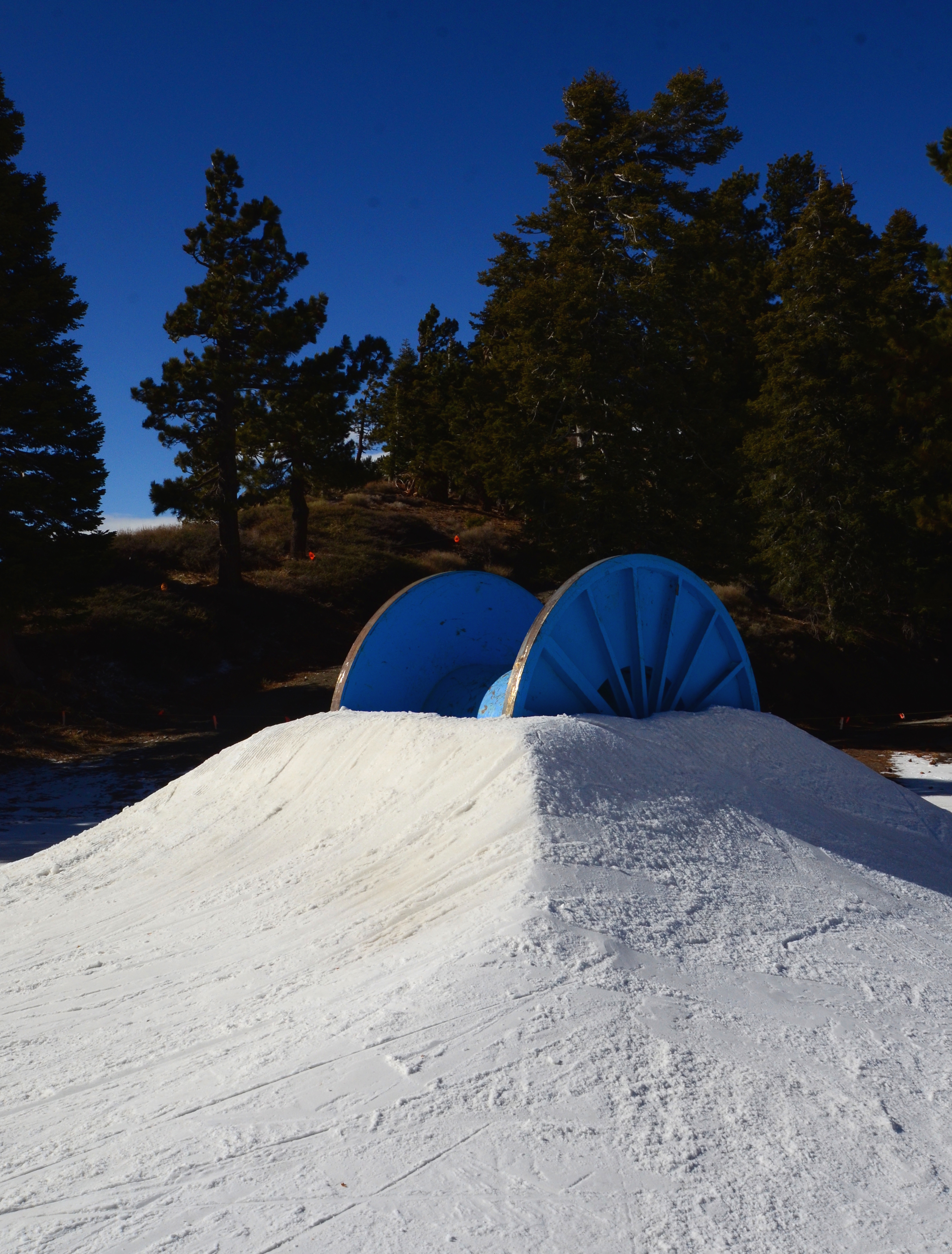 This small ski area is surprisingly interesting. The 300-meter vertical descent is nice for a ski area so close to LA, and the more difficult runs are enjoyably steep. There's also plenty of jumps, rails, boxes and other entertainment in the area. Although I fall off one box onto hard ice. For a moment feel afraid that I've broken something. But I didn't.