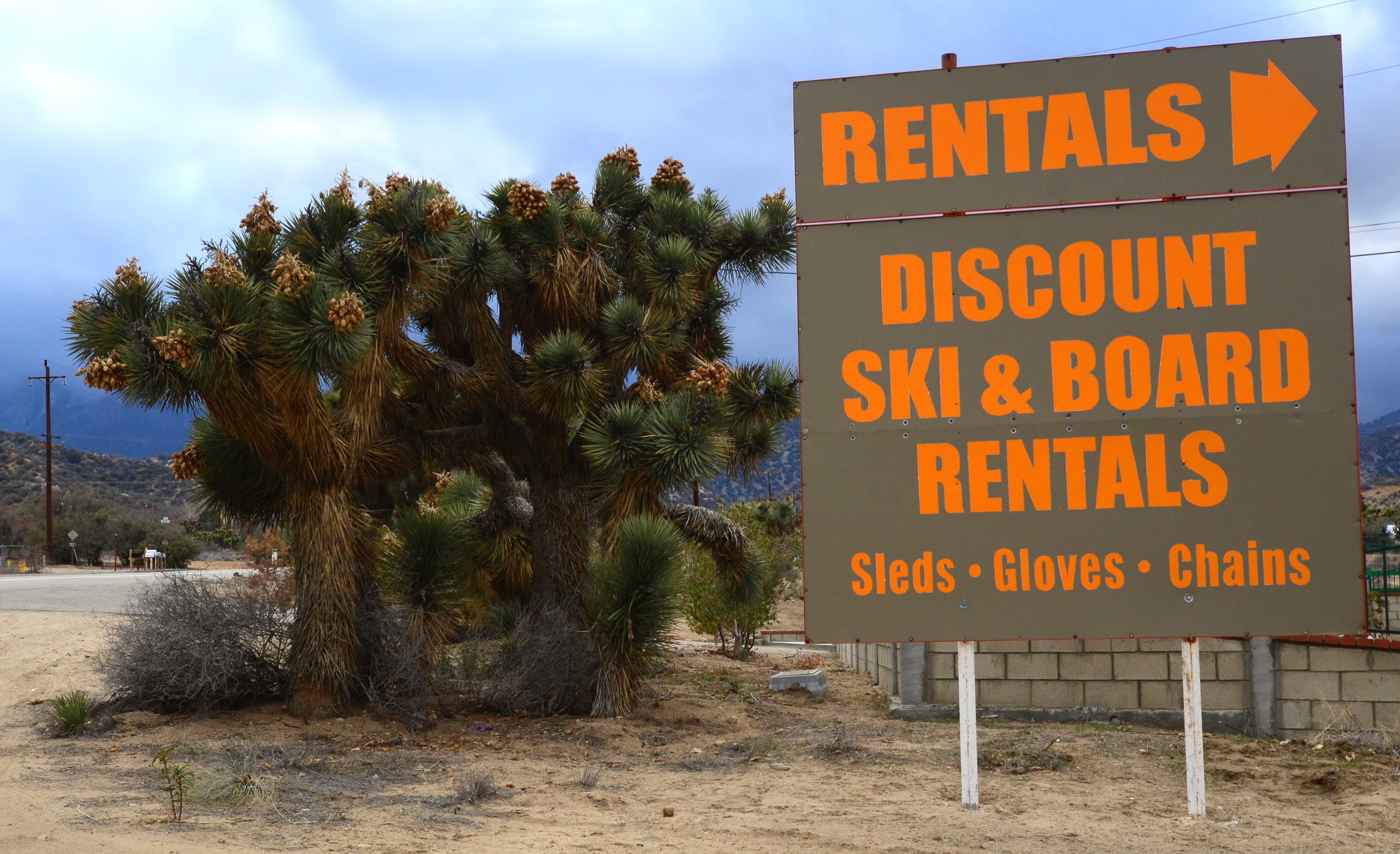 No wonder there is a discount: no snow anywhere and there is cactus next to the rental place. But I think I can find snow. And I need the rental skis, because airlines keep losing my skibag.