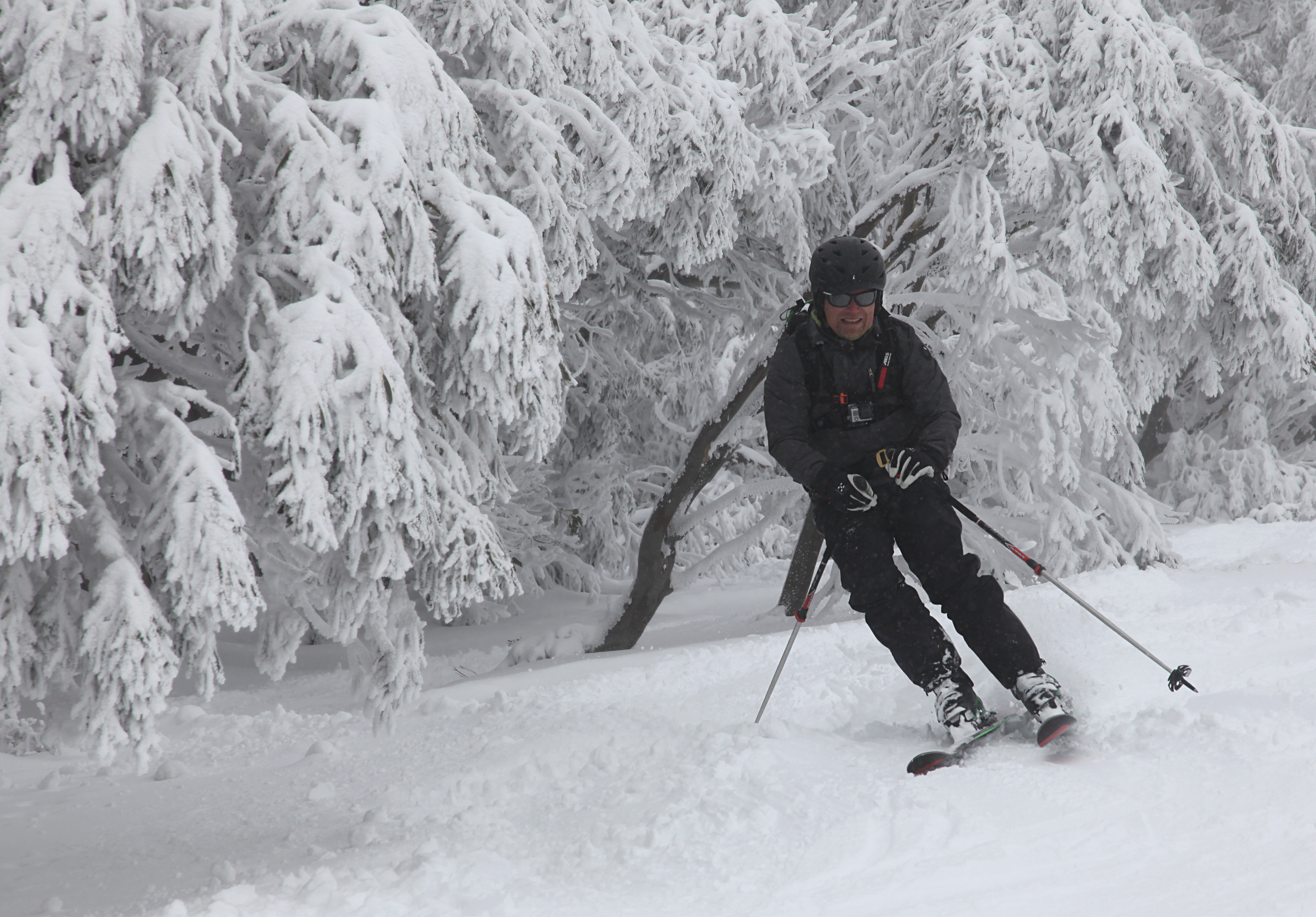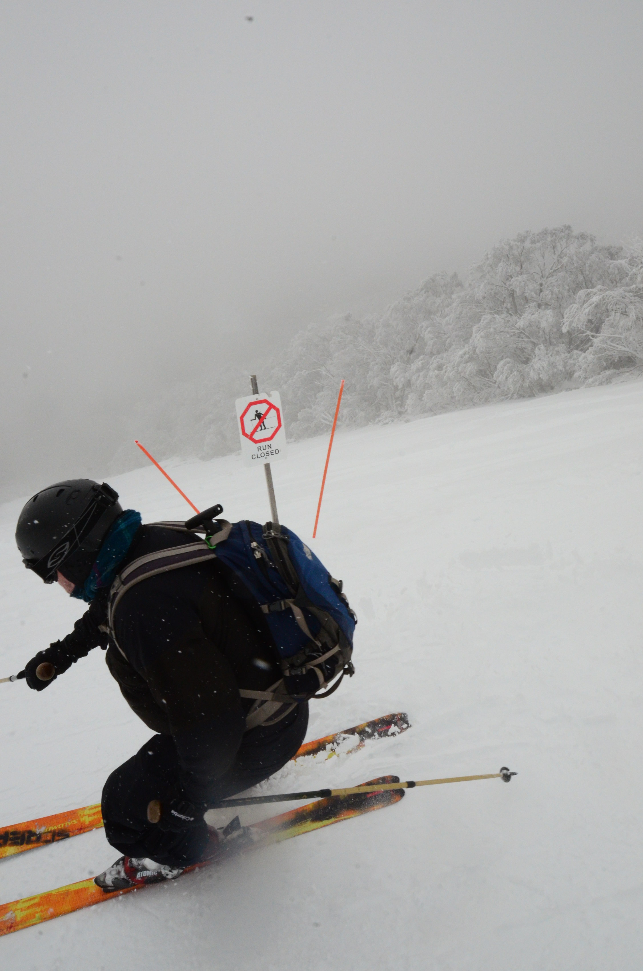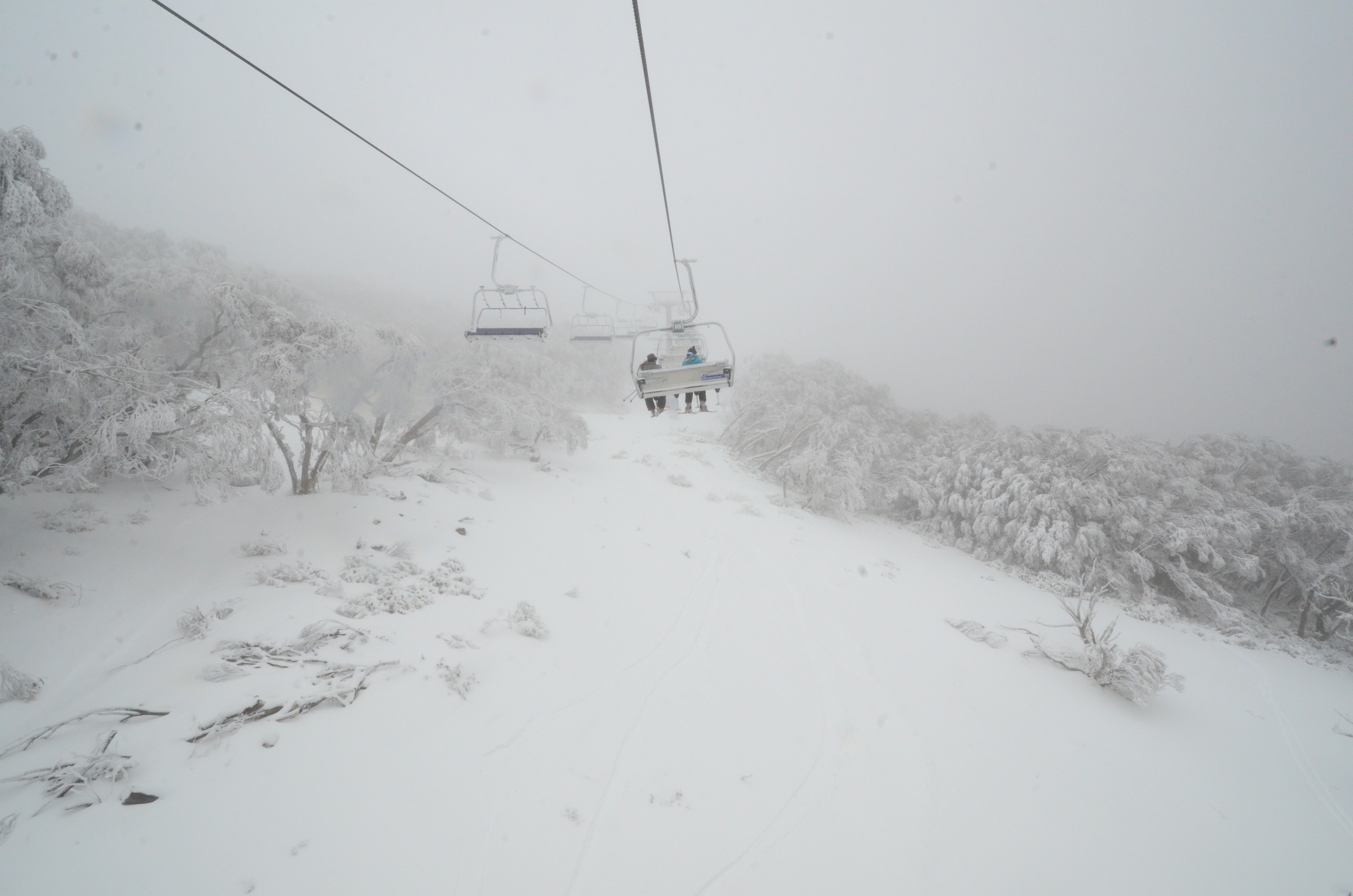 Mt. Buller is a small ski hill at an exciting location in the plush forests of Victoria, on the top of the 1805 meter Mount Buller. The weather was foggy, but after a large snowfall this just made the mountain feel even more magical. Everything was covered by snow, and while previously closed ski runs where still all closed, it did not stop us from exploring them.