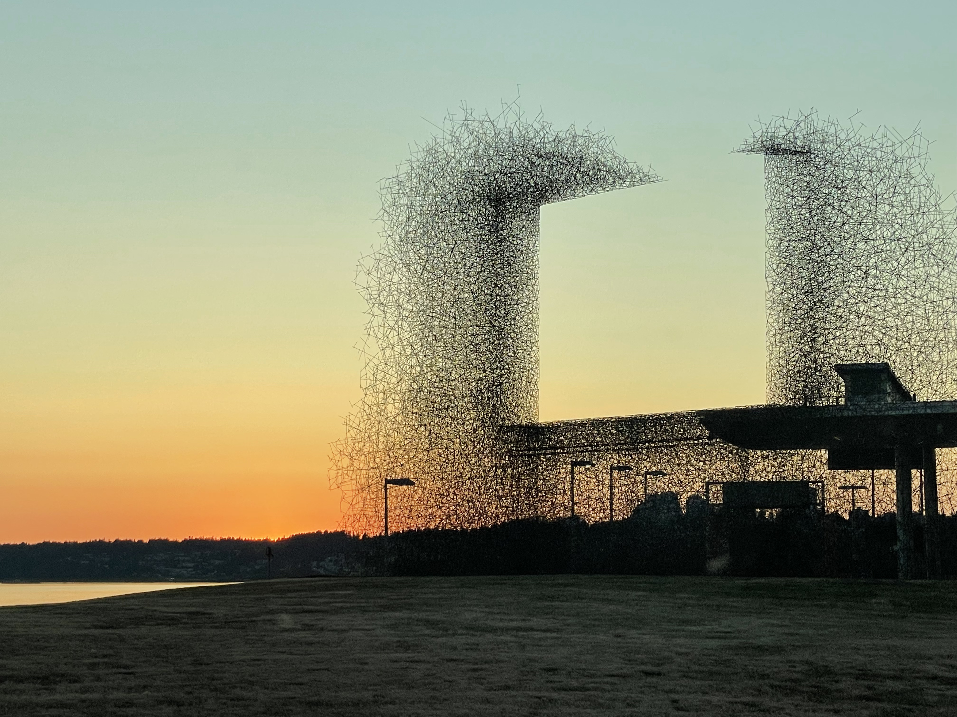 Weirdly enough, with all the effort of getting from Seattle to Vancouver, I rented a car and immediately drove across the border: The goal was to get to a cave and ski hill visit on the US side. Surprisingly, it was super smooth to cross the border again. Nice artwork also on the US side, in sunset light: