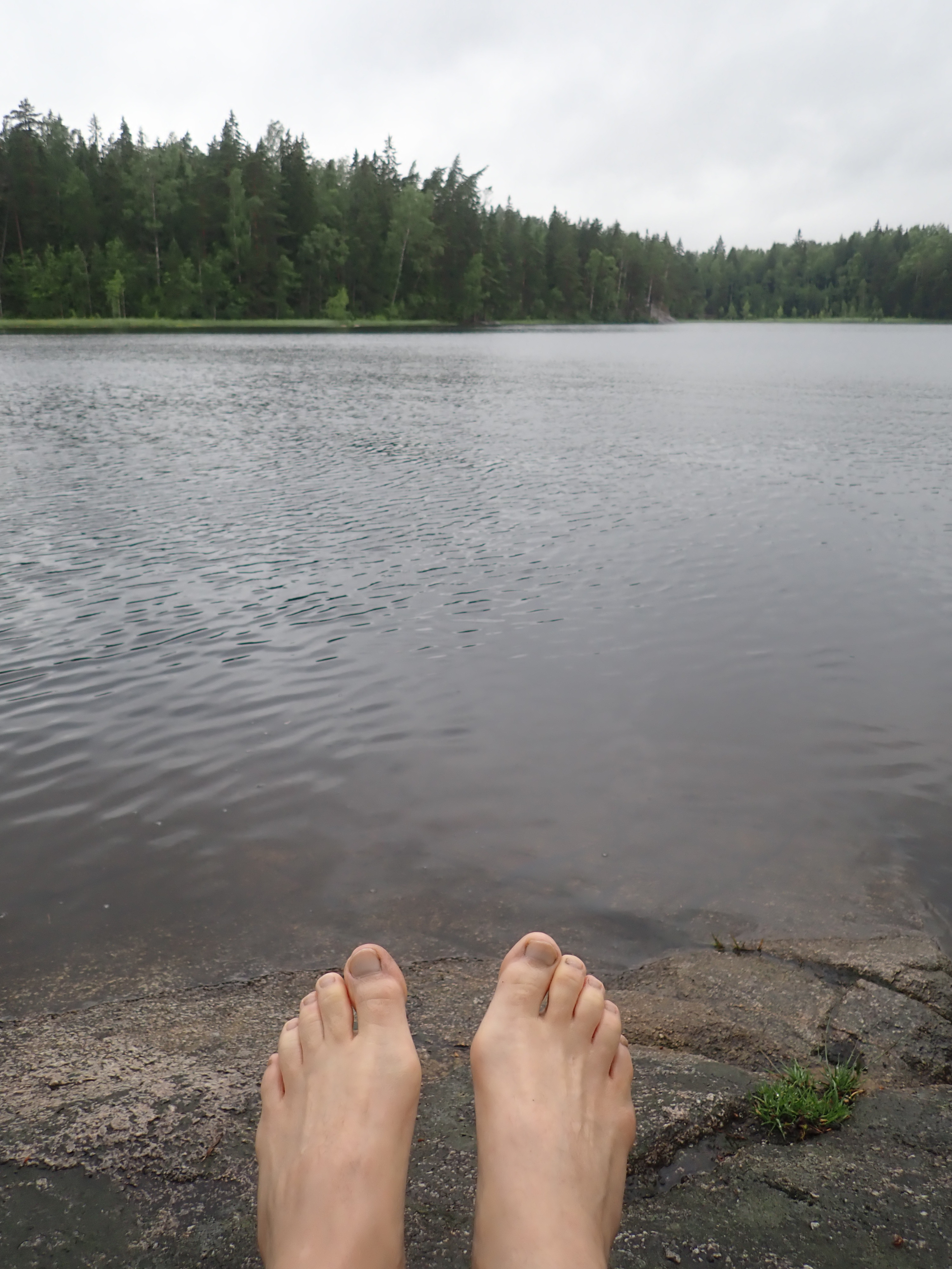 Another swim! In heavy rain, but hey, not too bad. The water is warm. In Myllyjärvi, north of lake Bodom and south of lake Sorvalampi.