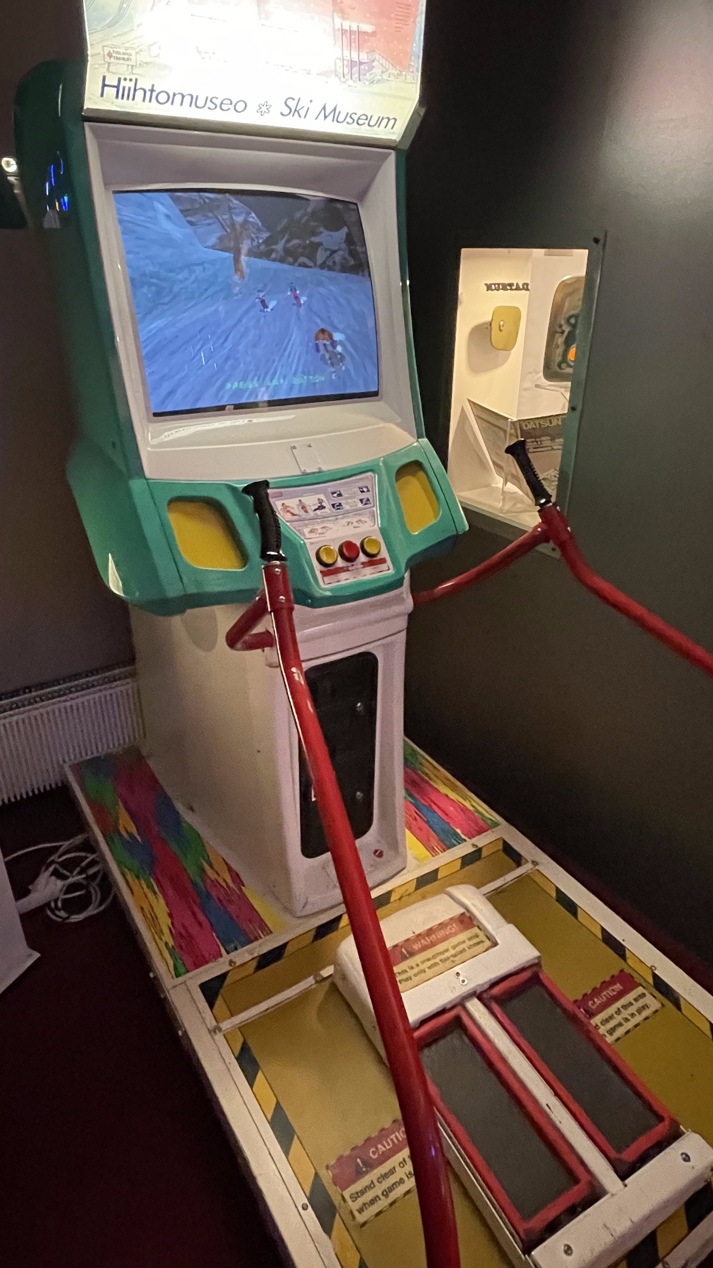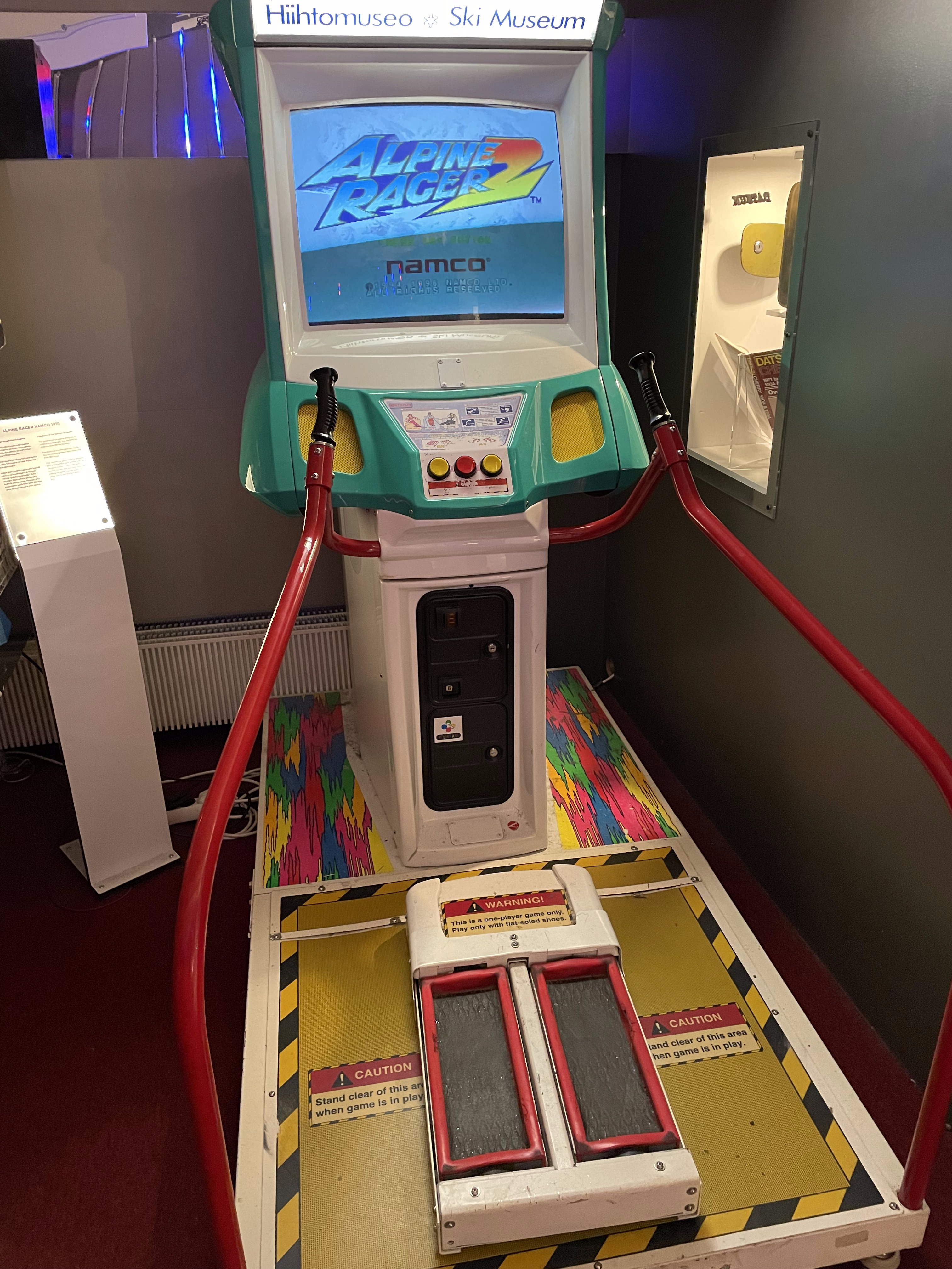 I visited Tampere's game museum-- maybe the best museum of this kind that I've seen anywhere. Many. interesting things, displayed and playable in the setting of the time. But for me the jewel of the museum was Namco's Alpine Racer arcade game. I wish I had one at home...