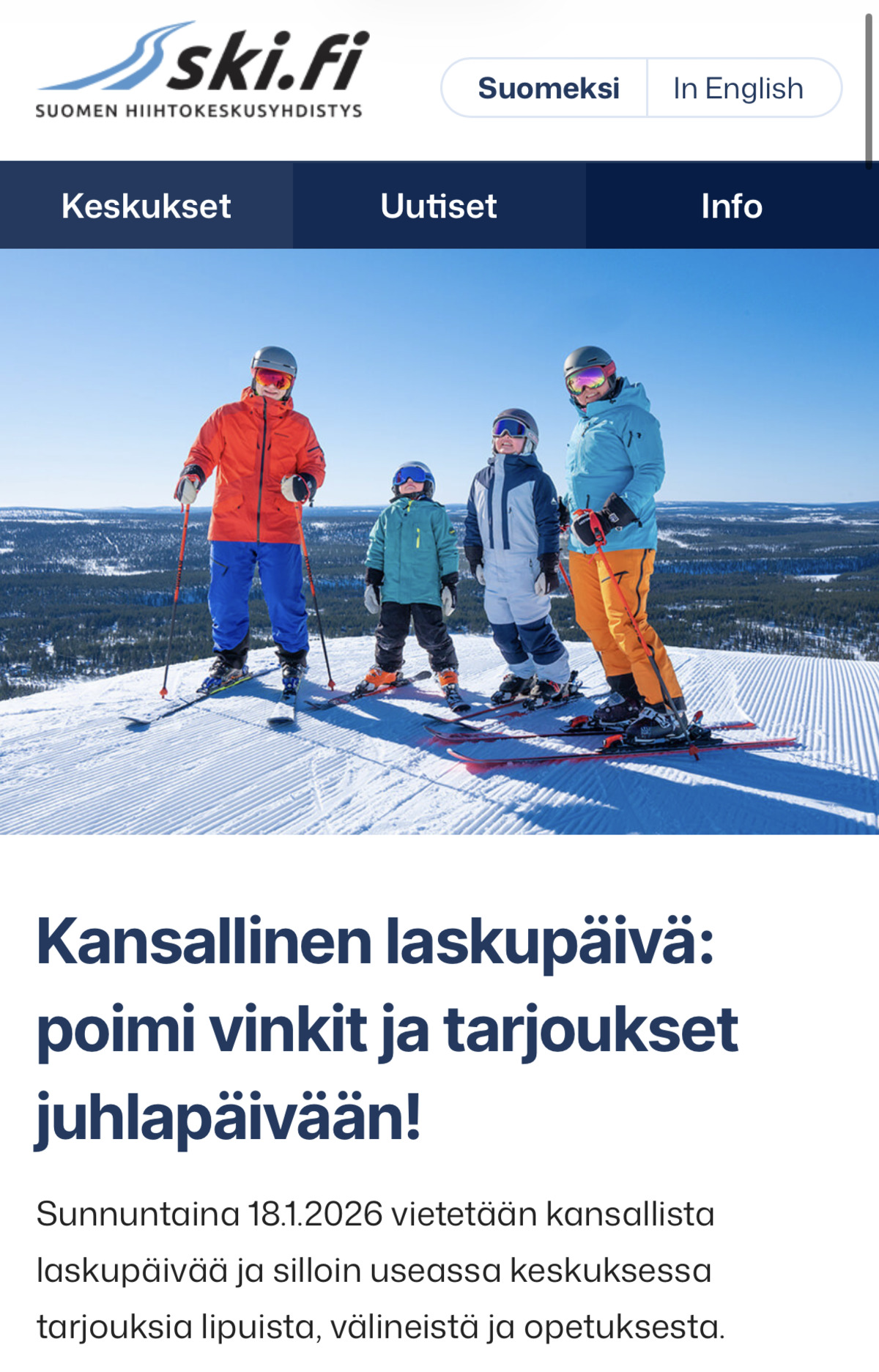 Very nice, from the long slopes and snowy forest runs of Ellivuori to tiny club hills, Ruosniemi's 30 meter vertical and the golf club’s 32 meter Salomonkallio being the smallest. Still a lot of energy and lots of kids having fun. Enjoyed much, like the other kids.