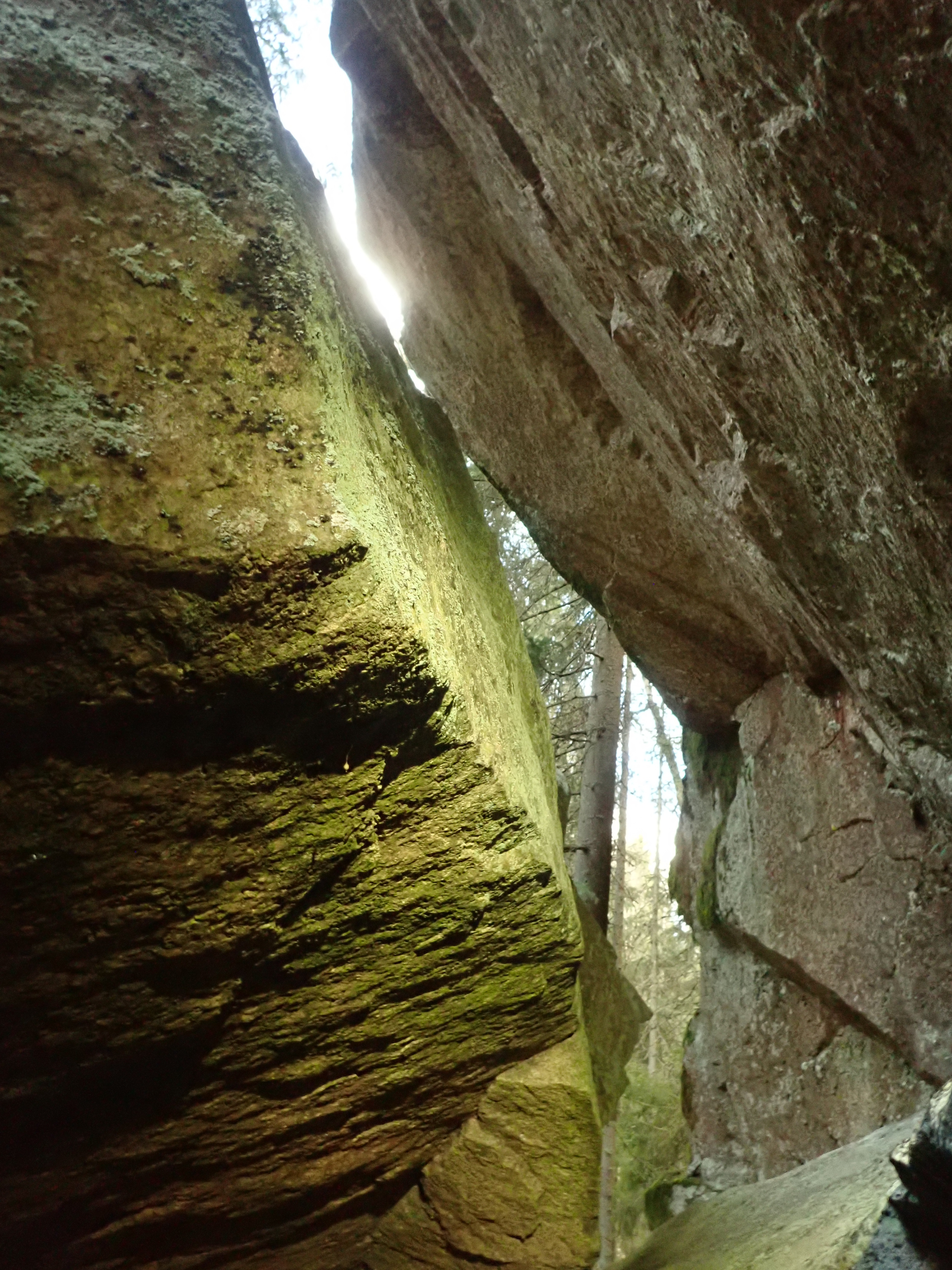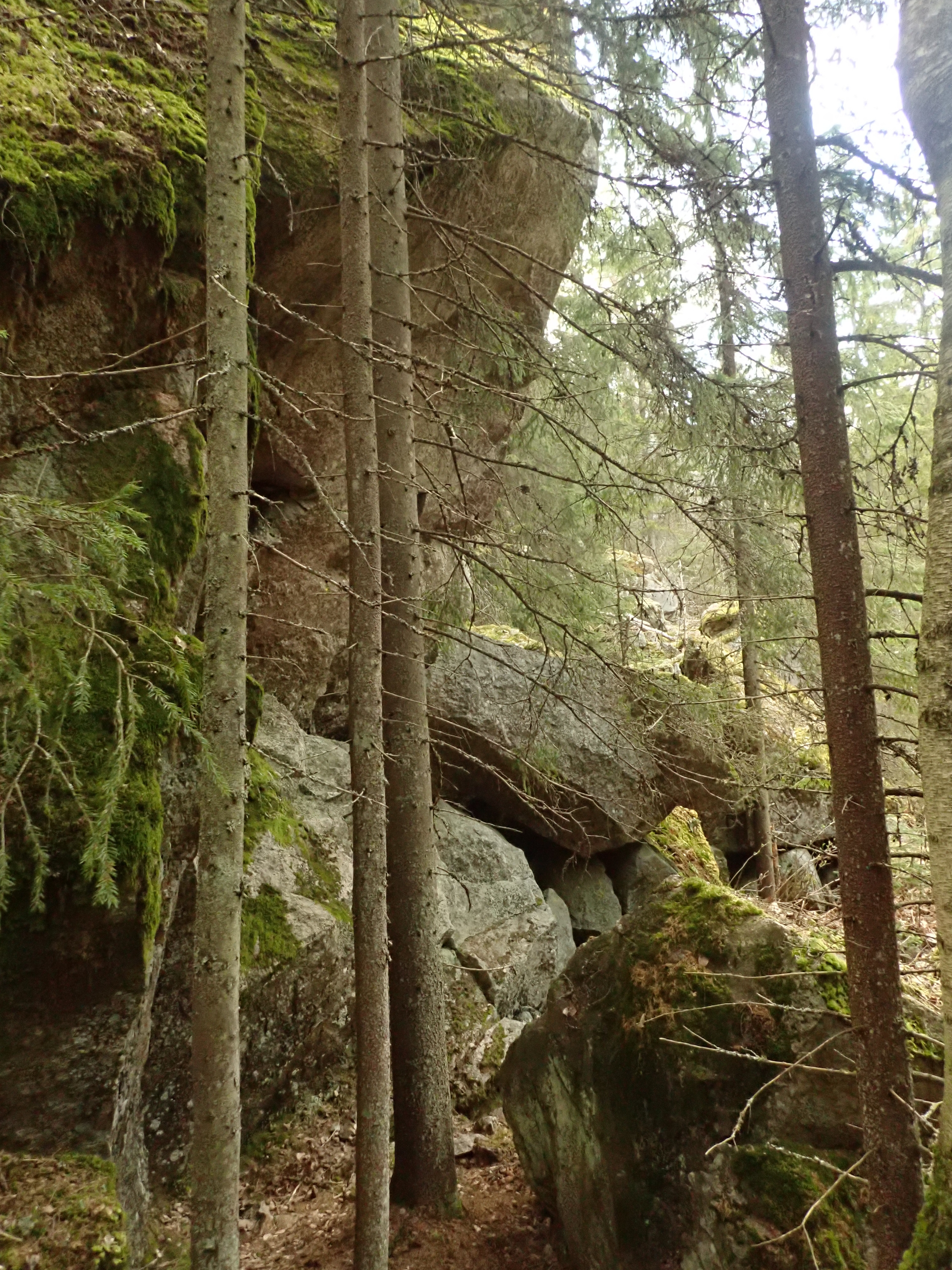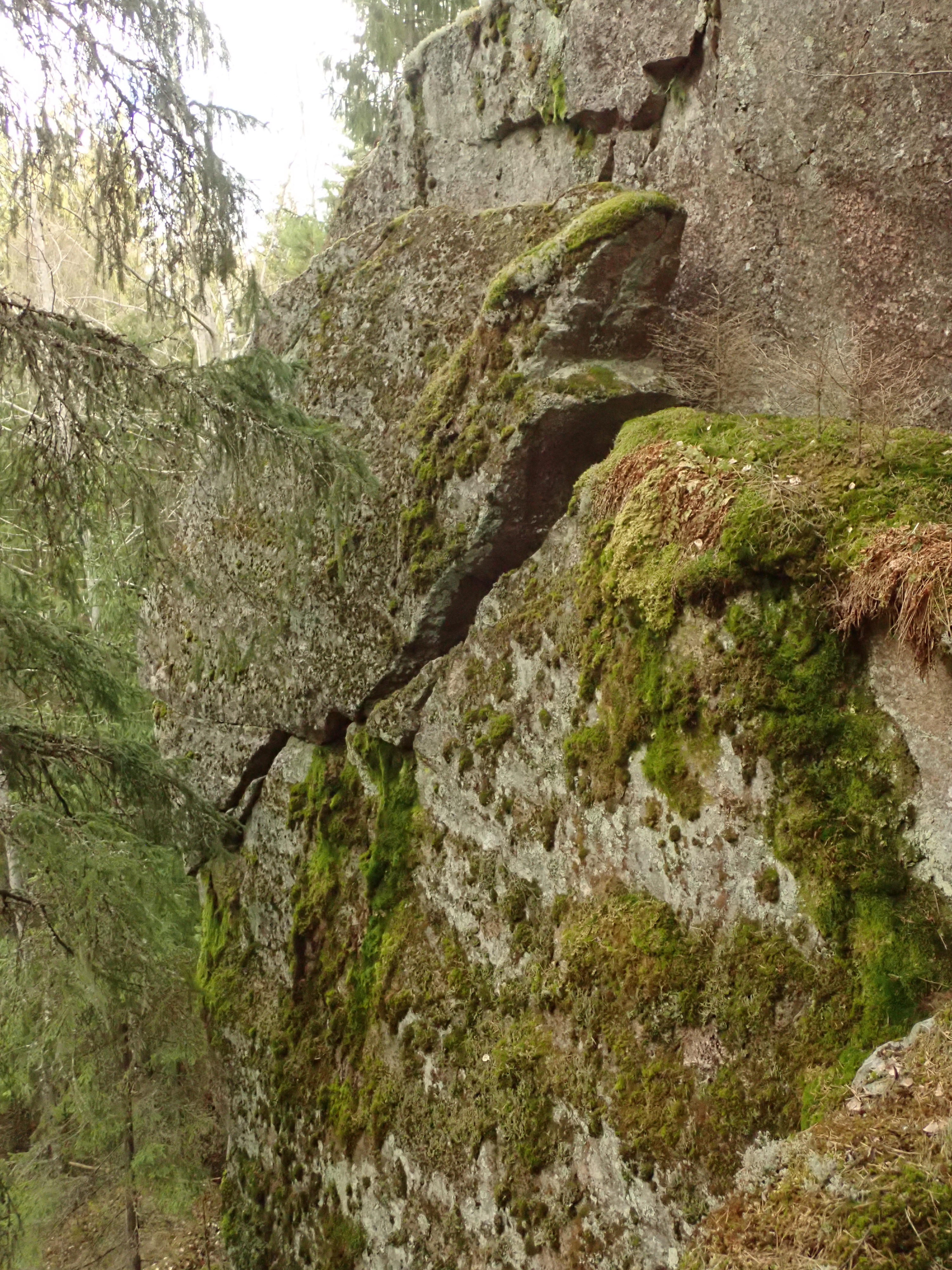 Research pays off! I wanted to explore more boulder caves, but where to find boulders? I kept looking for data, and it turns out the geologic research institute had made a listing of the most valuable boulder fields in Finland. One of them was nearby, in Nuuksio, so I headed out to investigate on Sunday. No caves had been listed at that spot, but the report already made some promises about cave-like holes between the rocks. And a 50 meters wide and 10 meters deep field! I was hooked. Although it turned out the location was listed after all in the book of cave in Finland (albeit with a different name).