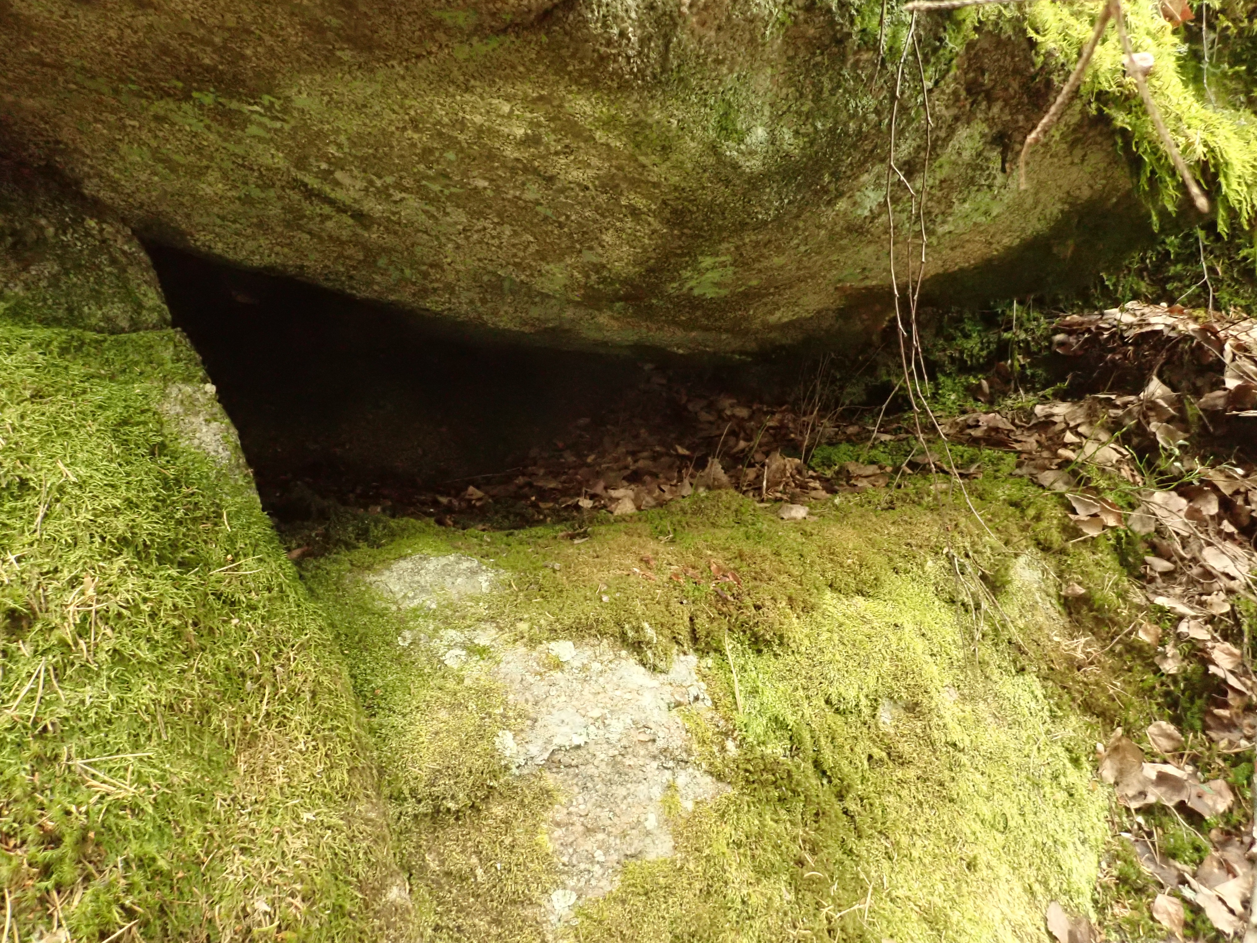 I also explored the main cave underneath the cliff. This is a roof cave, under a high, 10 meter-wide roof that extends on its furthest part 2.5 meters out of the cliff base. Under the roof there are some boulders, and under them is a second layer of cave, the main one being 2.6x1.5m.