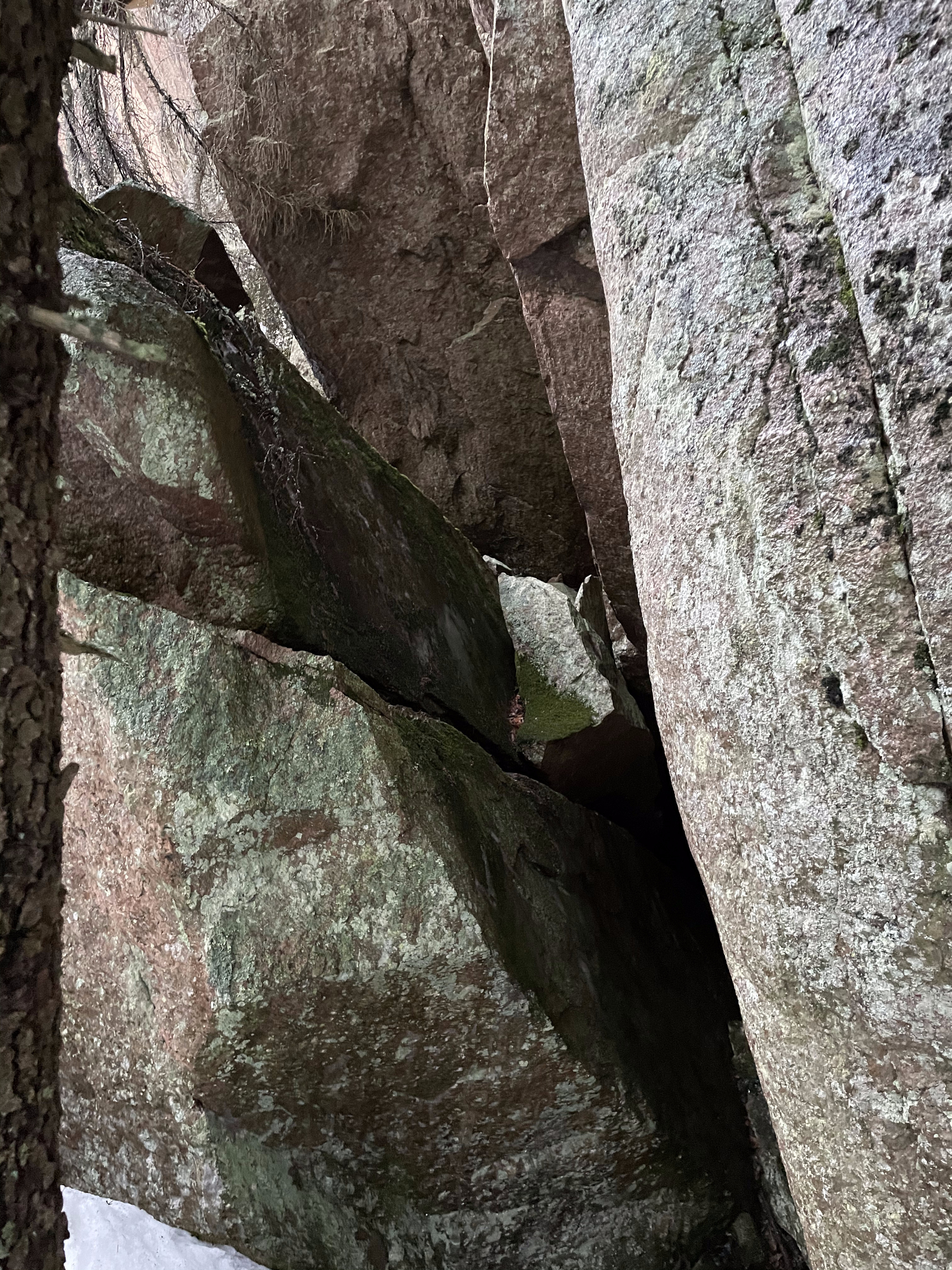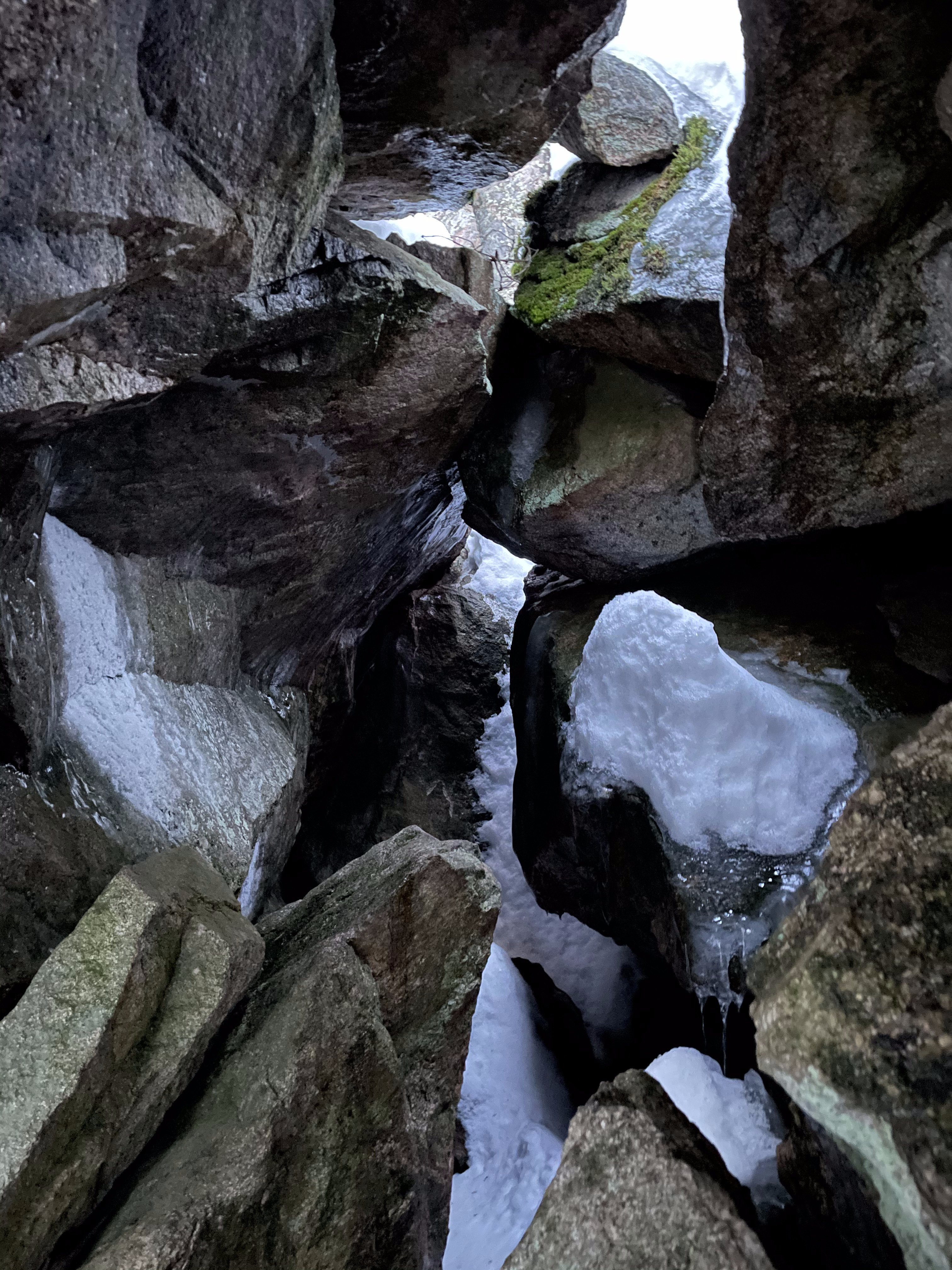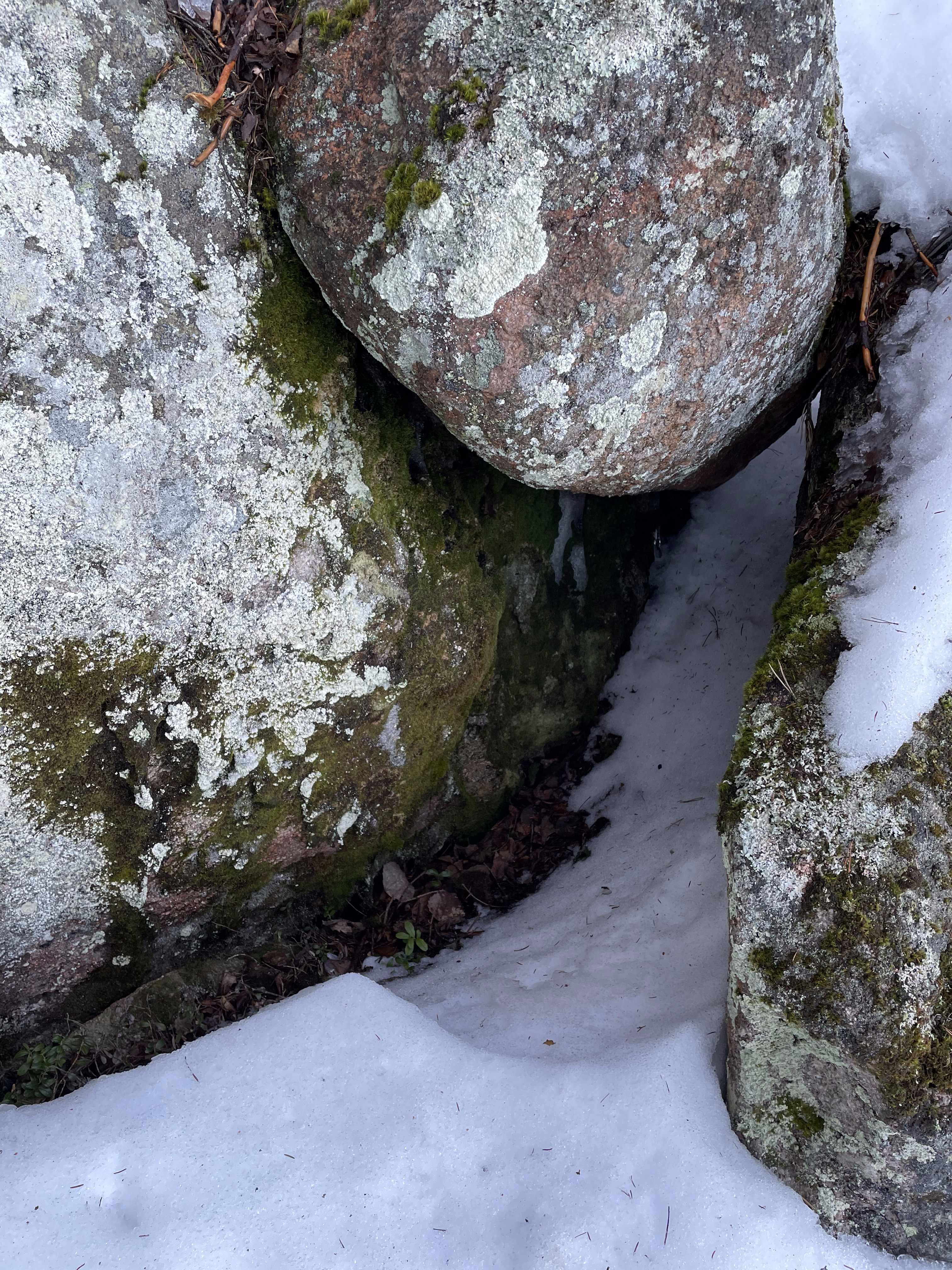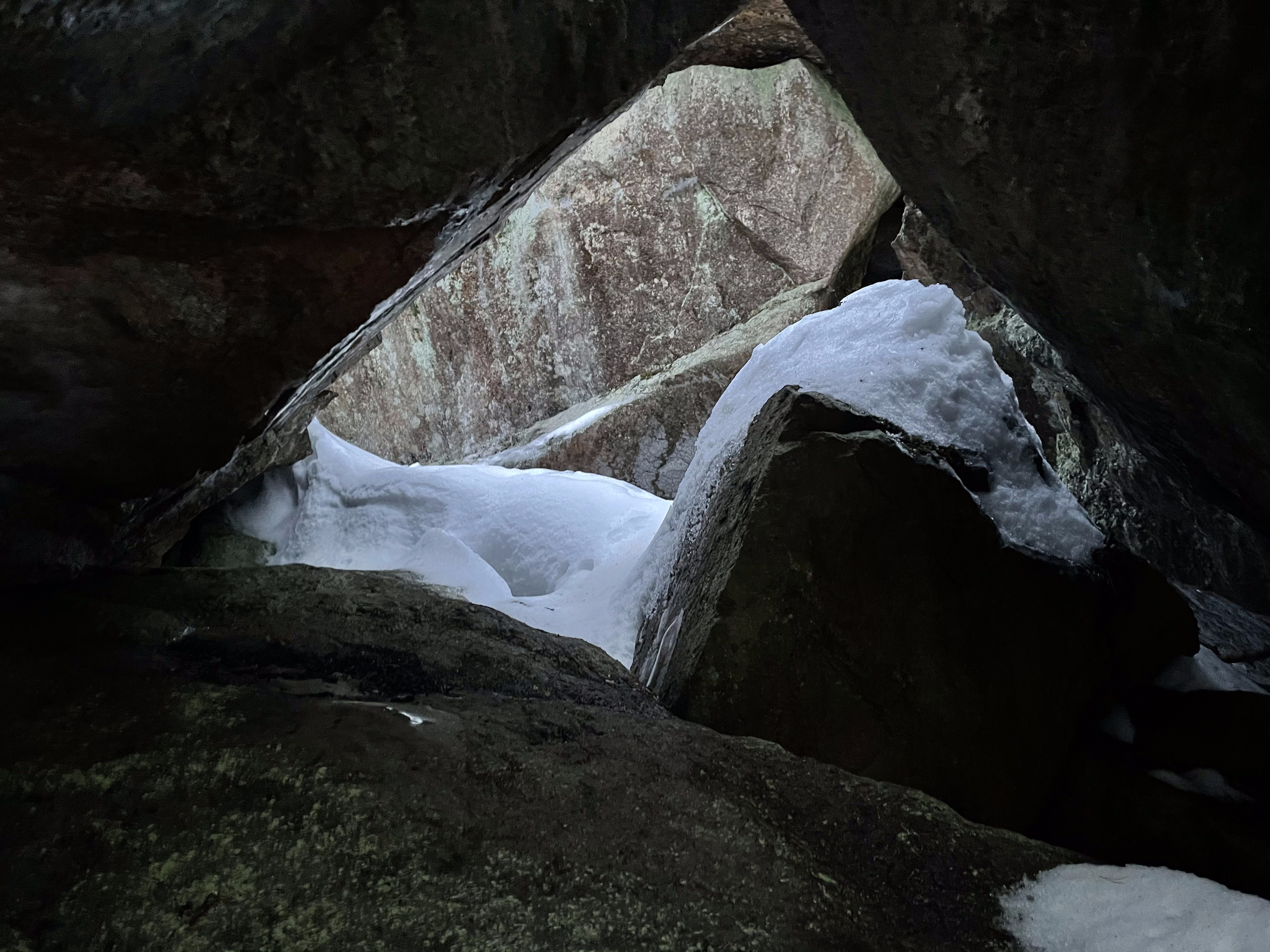 Unfortunately, the snow was very deep, I kept sinking in between rocks, and the darkness was arriving. I need to investigate these new caves later in the spring or summer, with better ability to see what's between the rocks without all that snow.