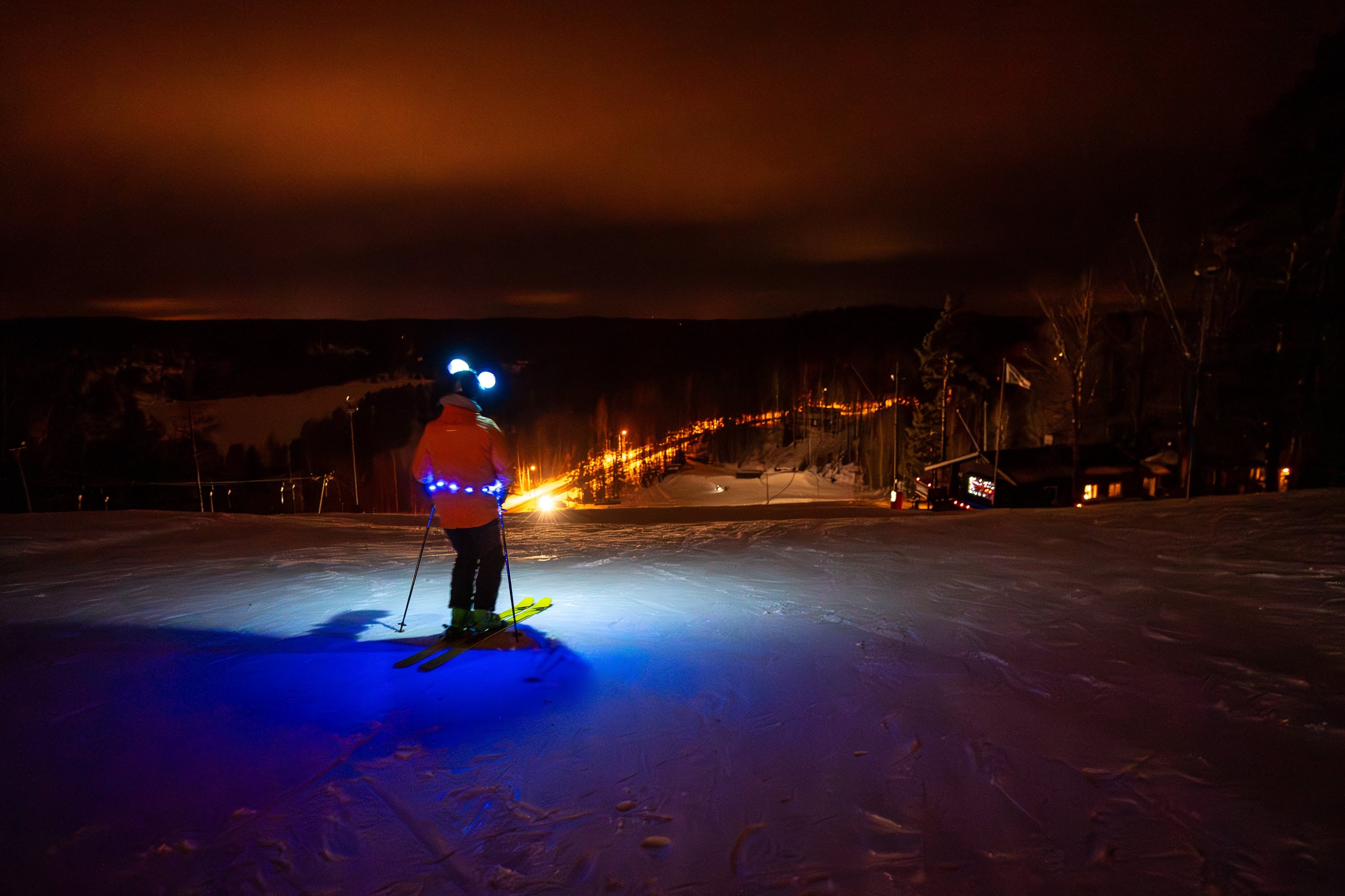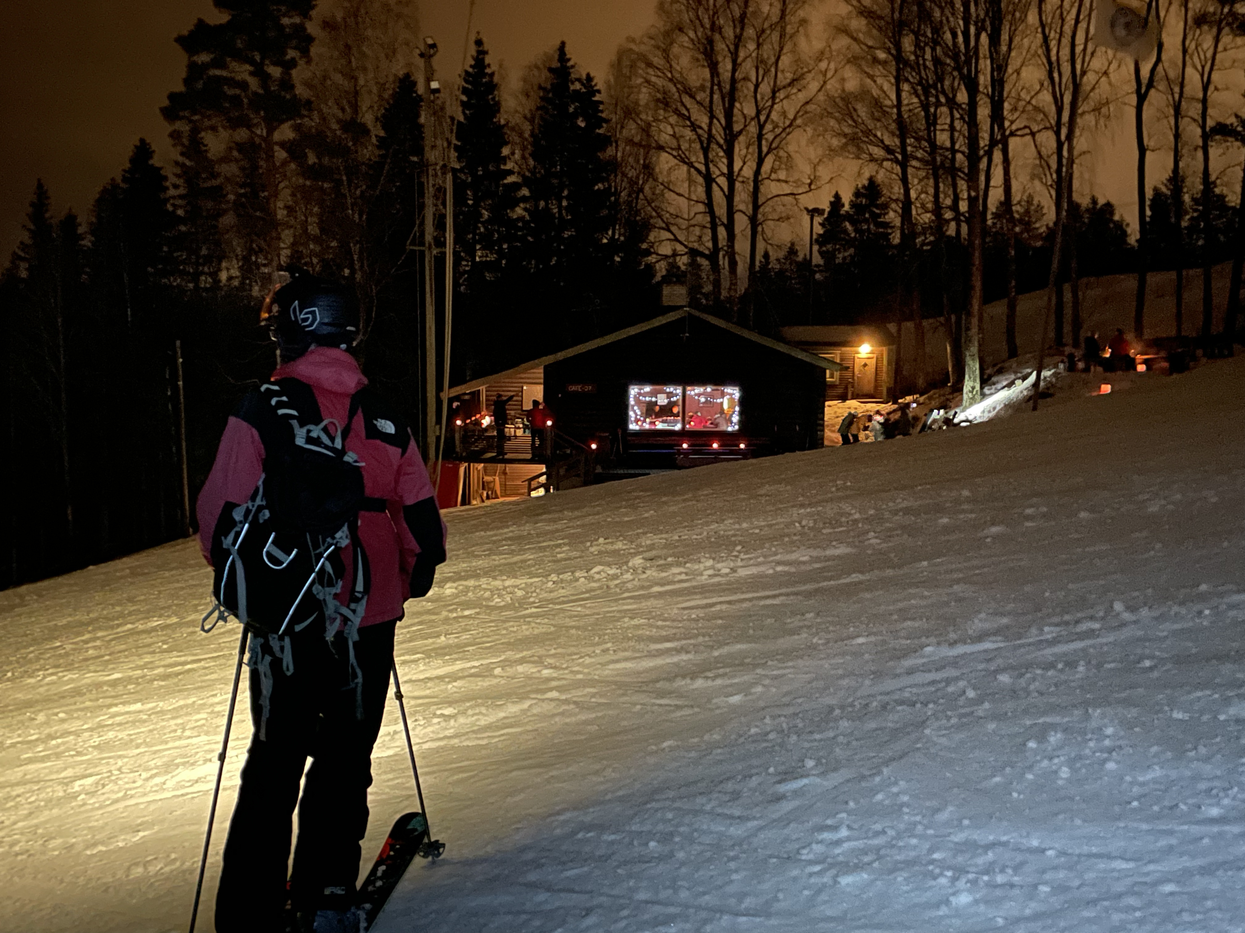 It was wonderful, people (not me) skiing moguls with just their headlight, the scenery around the mountain was still lit a bit by street lights and the receding sunset, everything looked much prettier in the night.