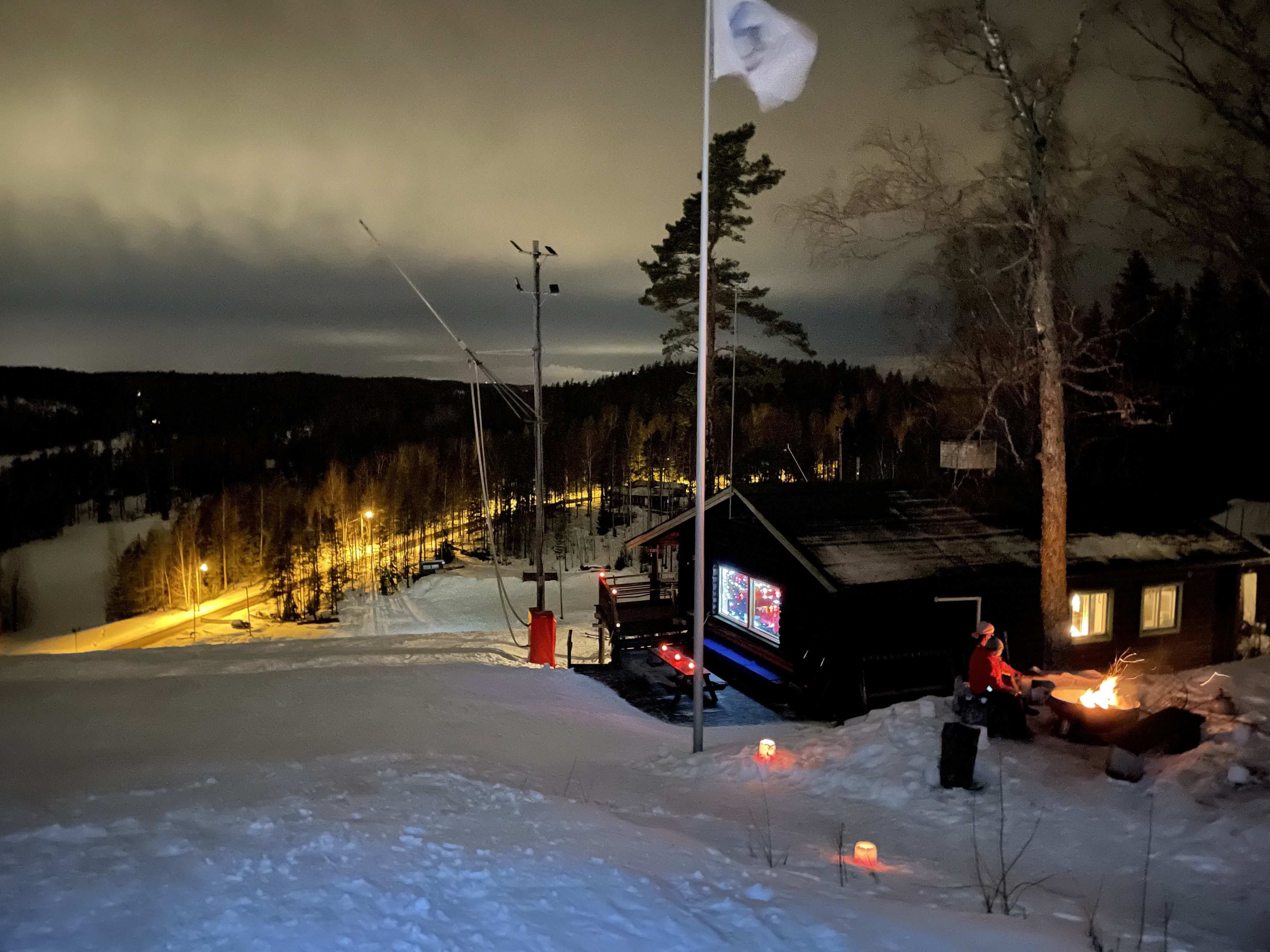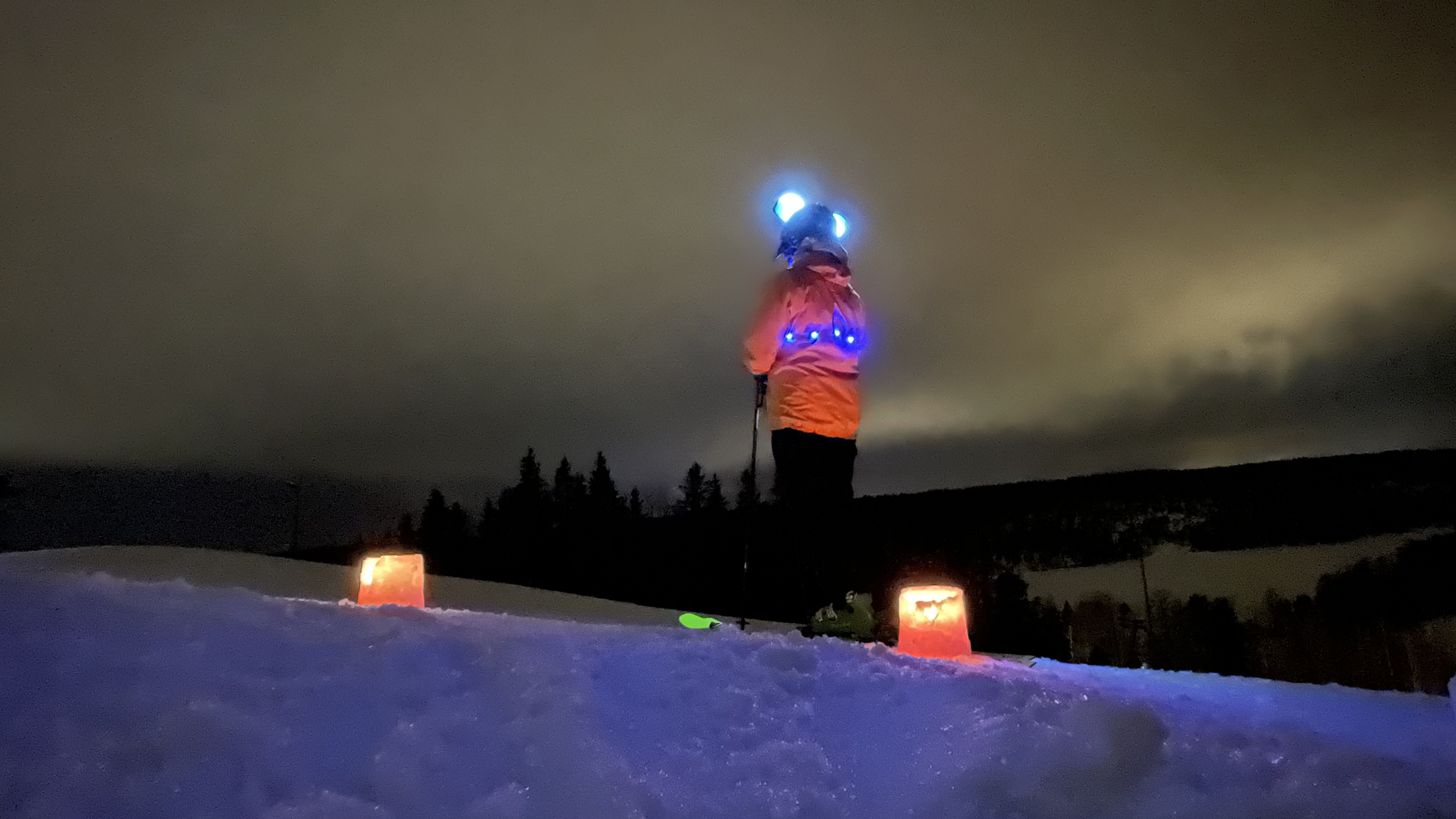 Lux Nuuksio is an event in the wintery Nuuksio, in a popular national park north of the capital region of Finland. The scenery is lit with candles, fires, lanterns, and ... skier's headlamps. And in my case, skier's Christmas lights and the big, shining Mickey Mouse ears.