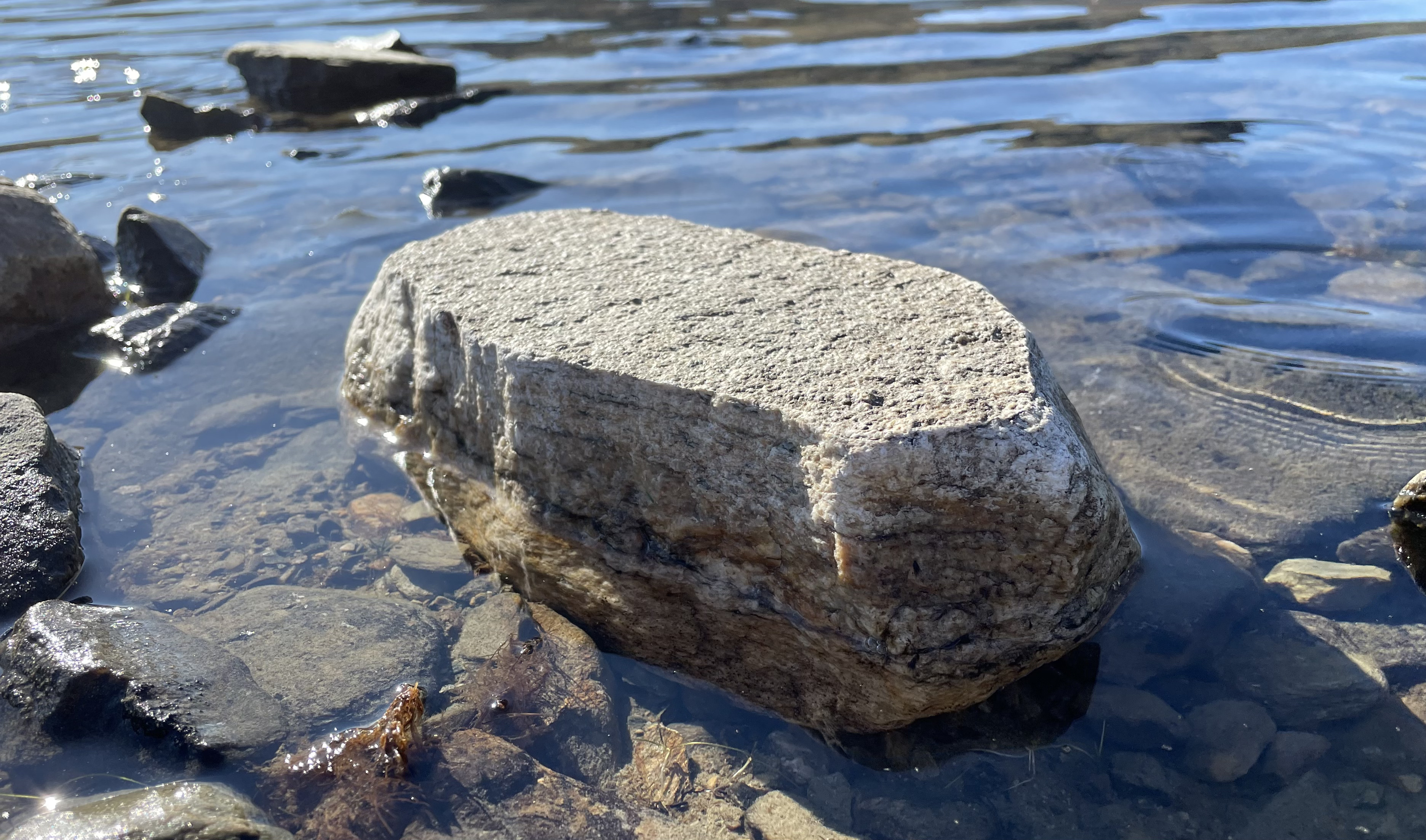 One interesting feature of the lake is that it drops a lot -- and without any visible outflow river. This lake's size varies between two kilometers long to almost drying up entirely during the year. When we were there it was maybe a bit under a kilometer long. Still, it dropped maybe 7cm every day, e.g., the rock below was right on water level just 12 hours prior to taking this photo: