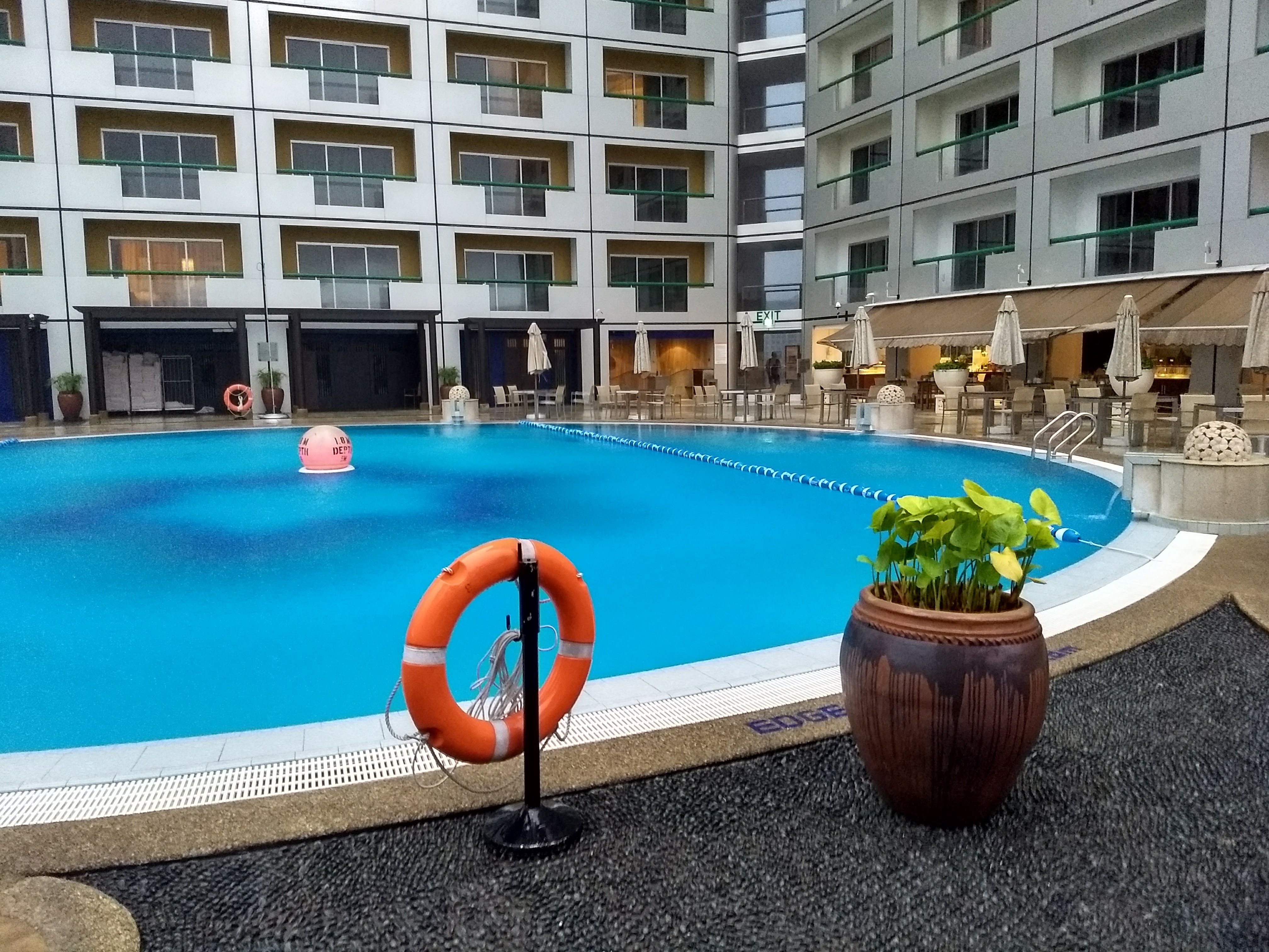 No swim for you Sir... because thunderstorm. Ok, but at least I got wet from the rain as I walked to the pool at the Swissotel & Fairmont Singapore.
