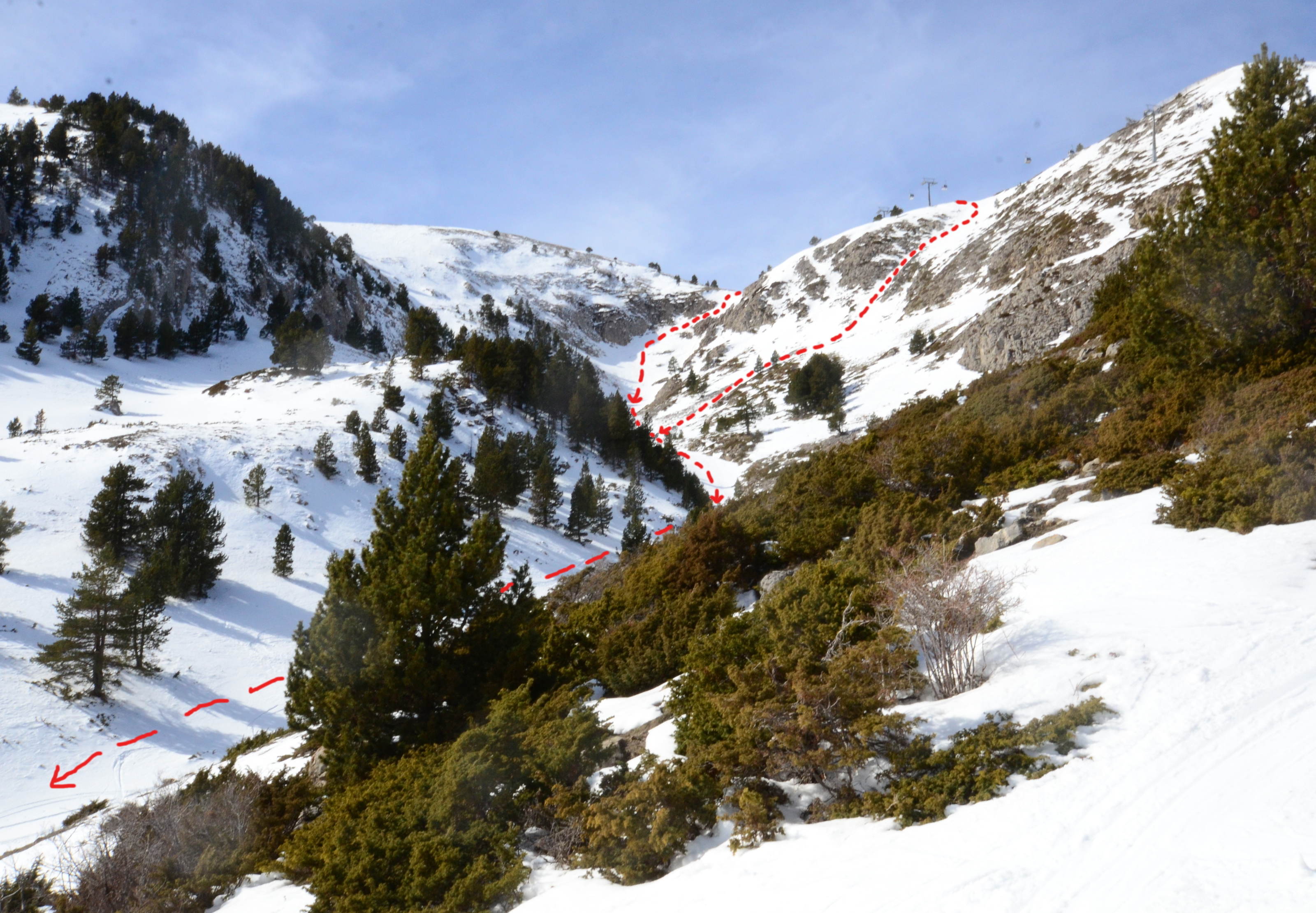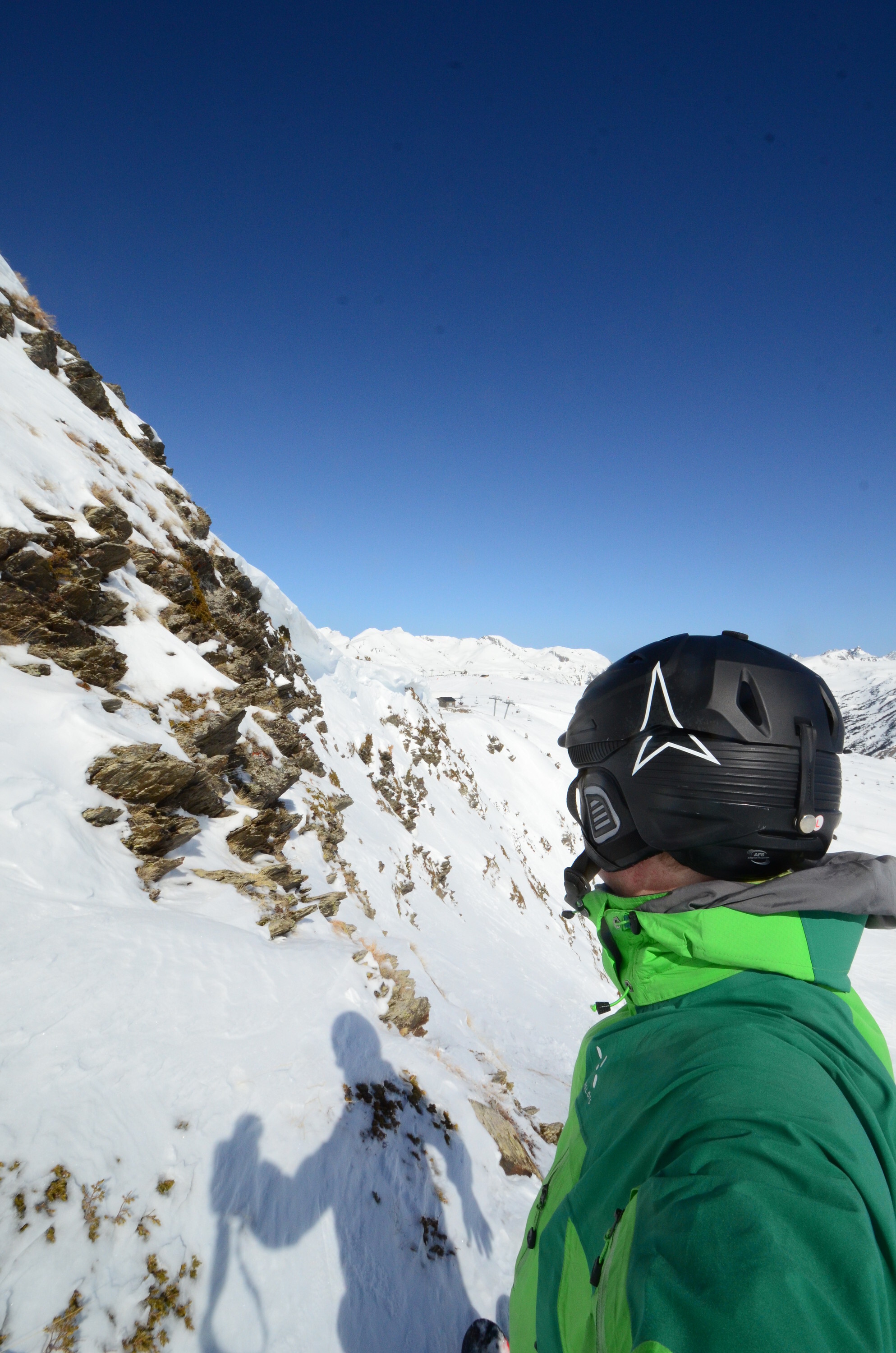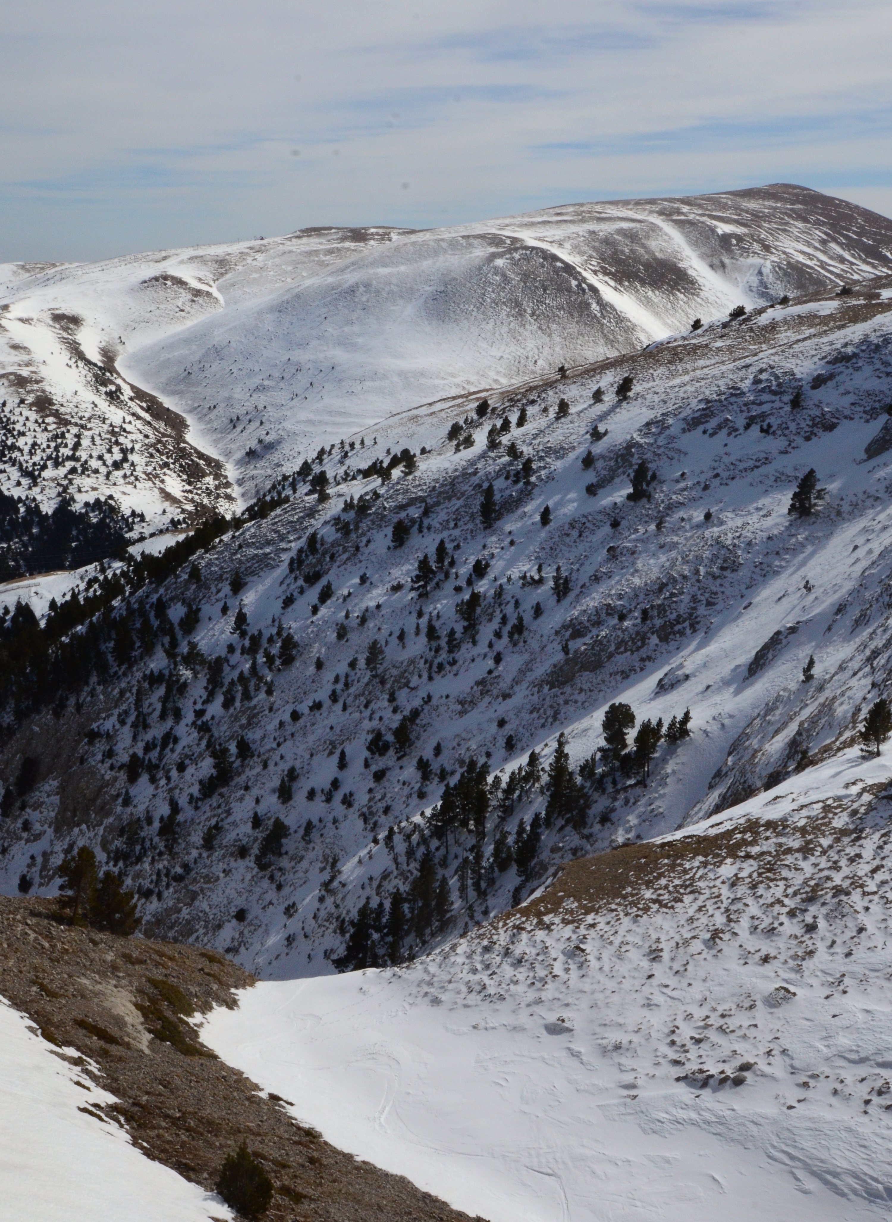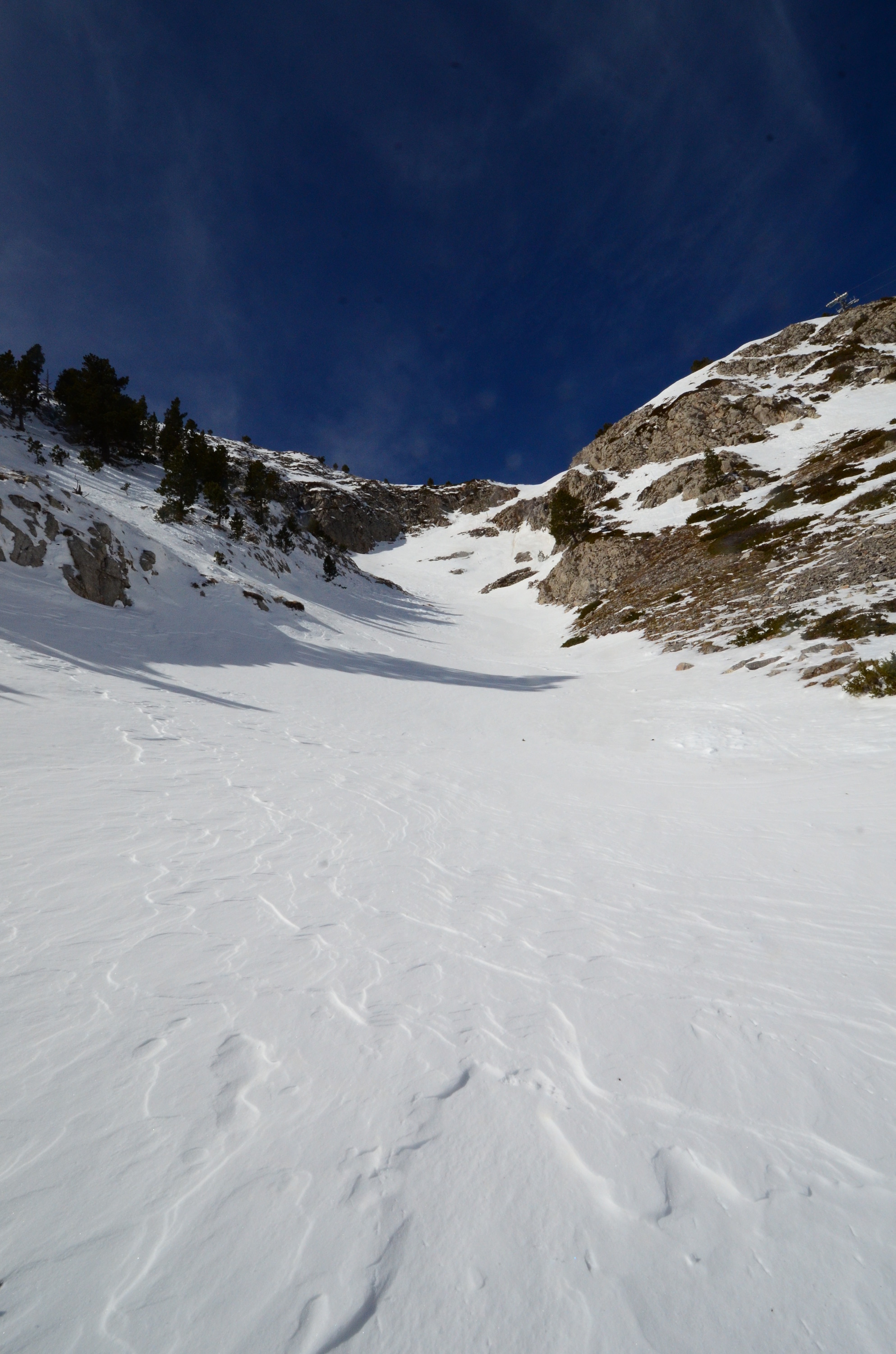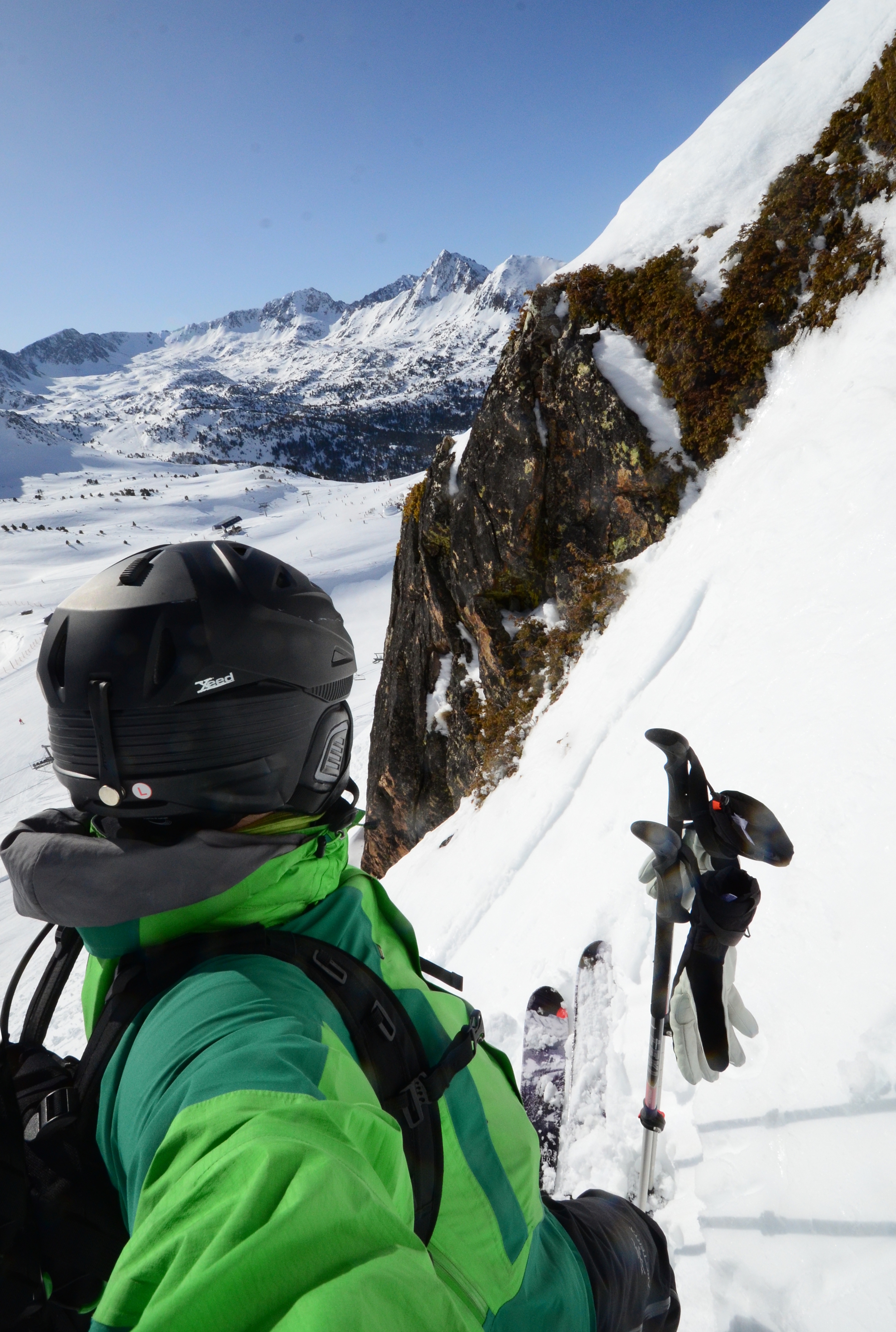 Who would have thought there is incredible off-piste skiing in Spain? Let alone at La Molina, a beginner's ski area that we thought we had already scouted last year. It turns that that the second lift takes you to some interesting terrain. Including some hairy routes where falling is not a good idea.