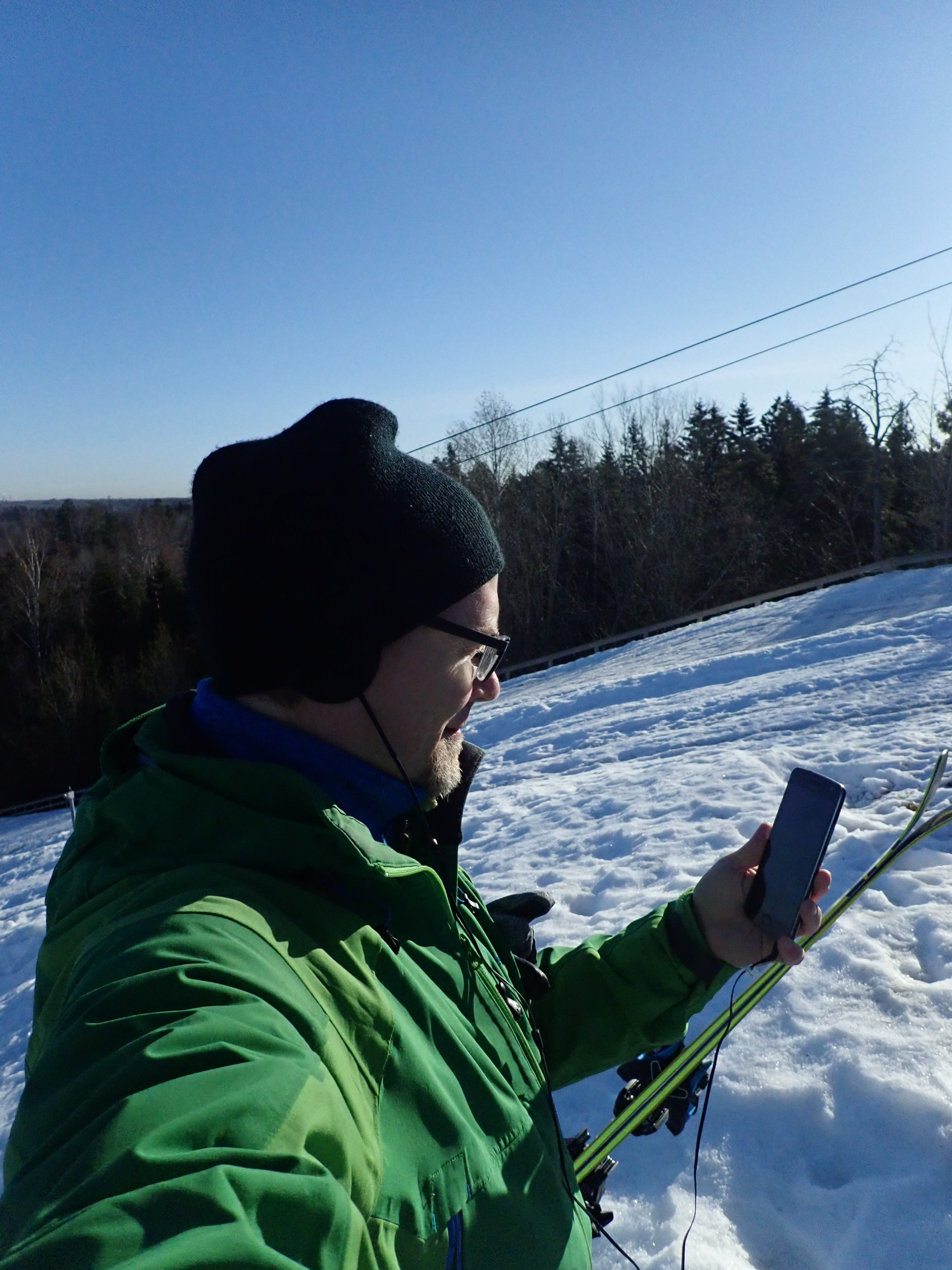 My ski run in Kauniainen wasn't the last run, after all! I had a conference call this morning so it made perfect sense to join in with video, from the ski slope. Multi-tasking! At least until the battery run out...
