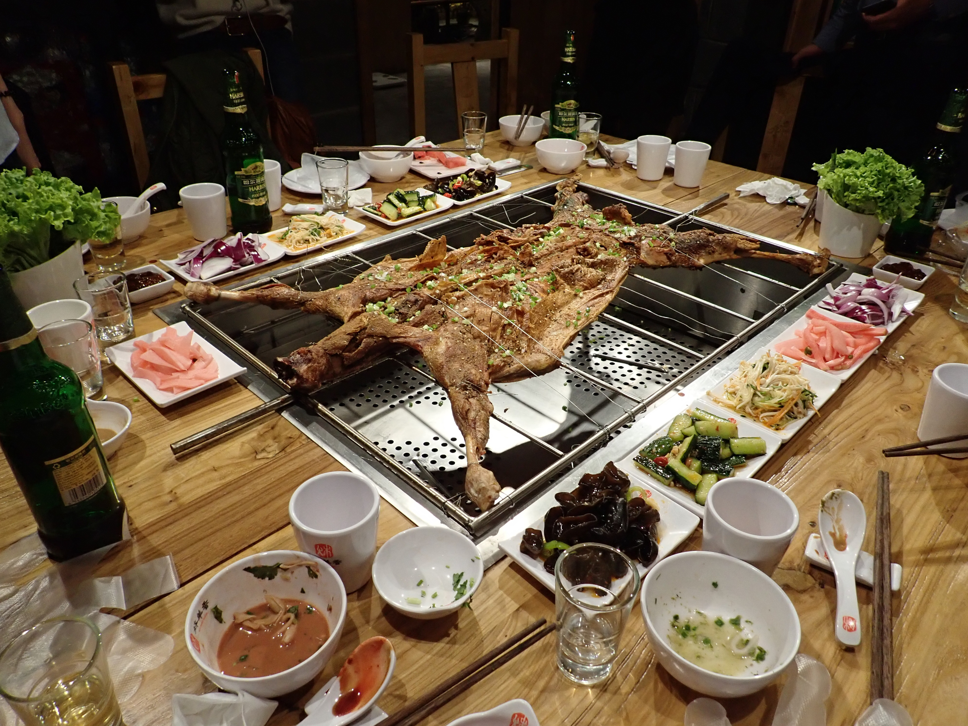 We visited the cave bookstore on a morning after a big, big meal and many refreshments. Here's one of the two whole lambs that we ate: