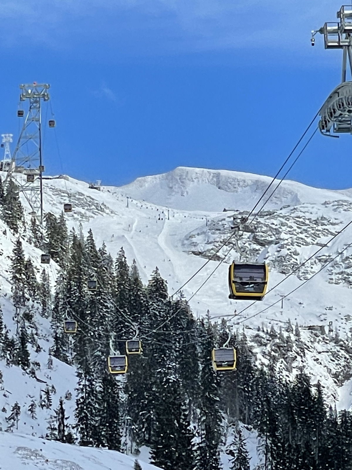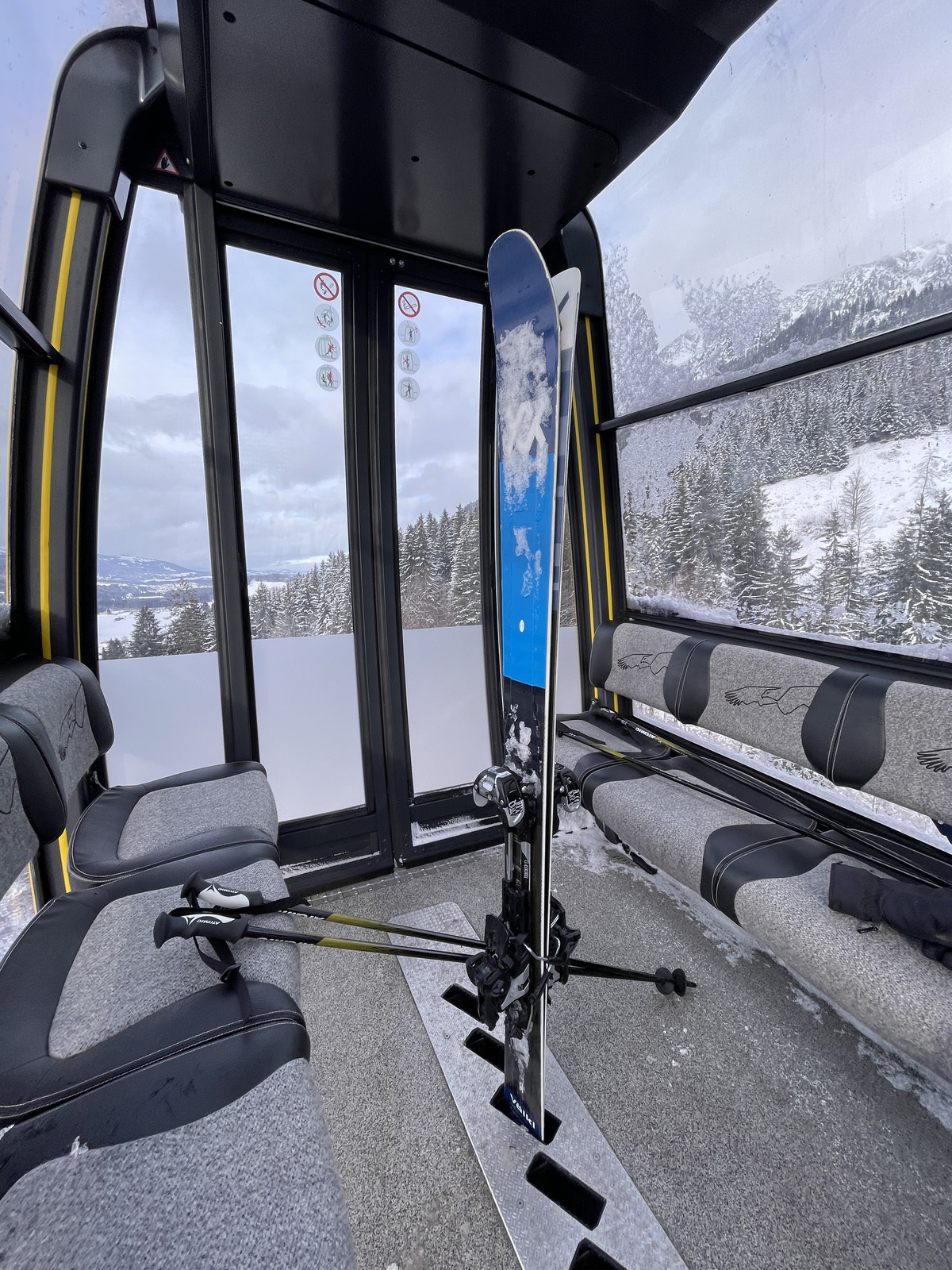 I really liked the small cabin ski lifts, with this invention in the middle to put our skis in, so easy and so practical! Why don't more ski lifts work this way: