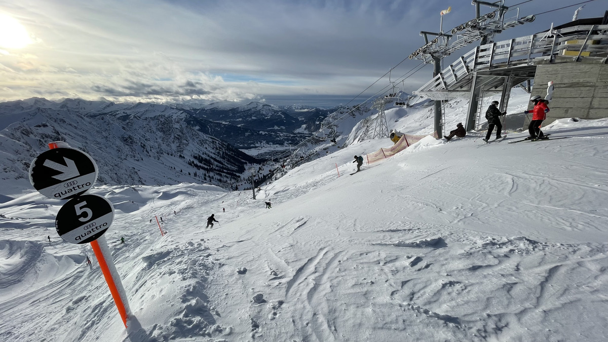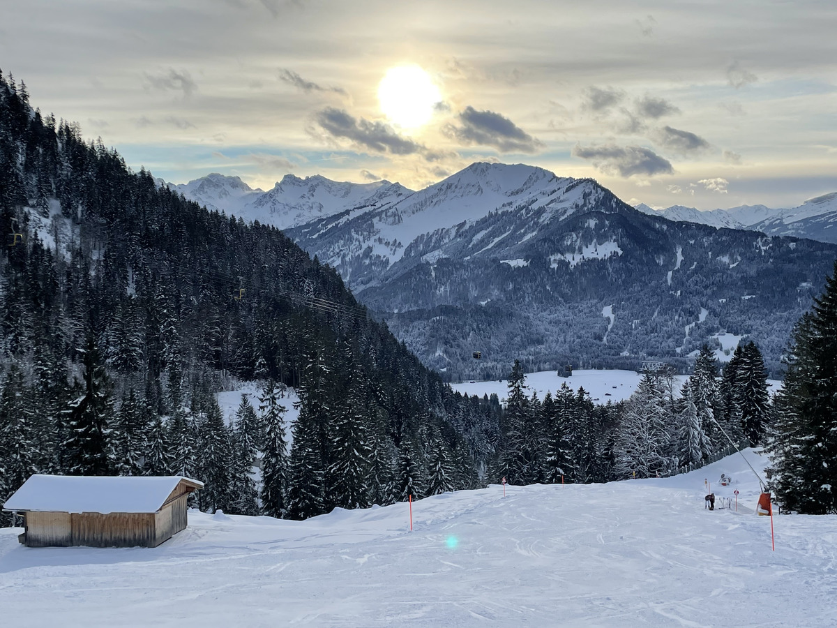 When we were spending the few days after the 2022 New Year's in Oberstdorf, we mostly skied in Austria near the border. But of course we also tried the local slopes! Oberstdorf's Nebelhorn was the obvious choice in town. Modern ski lifts and, lots of vertical, and very long slopes for Germany attracted us! The skiing was good, and so were the views!