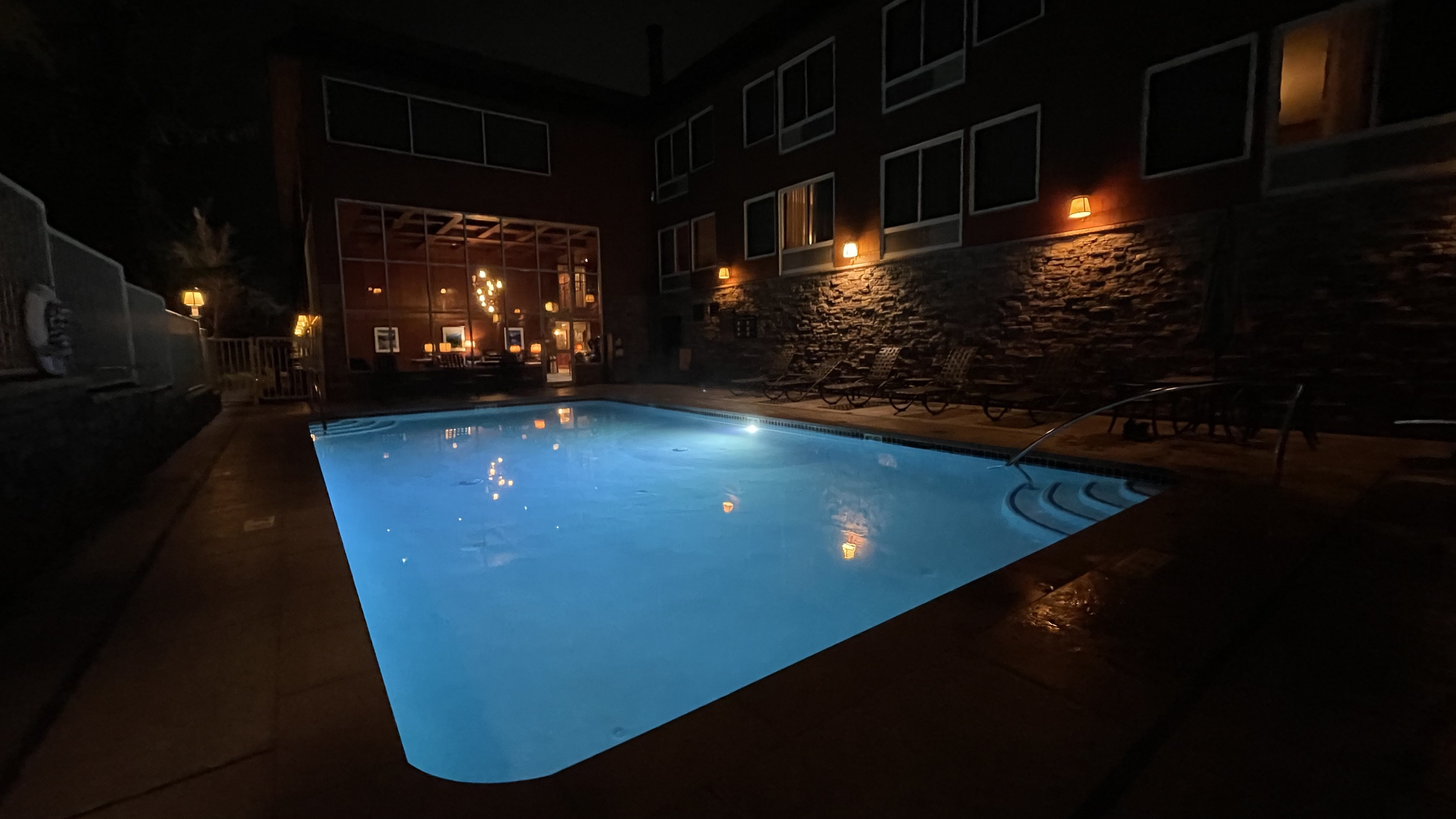 While skiing in the olympics:-) I stayed of course at the Olympic Lodge (of Port Angeles, Washington). They had a pool... which I had to try of course. The main pool was ok but not super warm in the winter (heated, still, of course). But the jacuzzi was very warm!