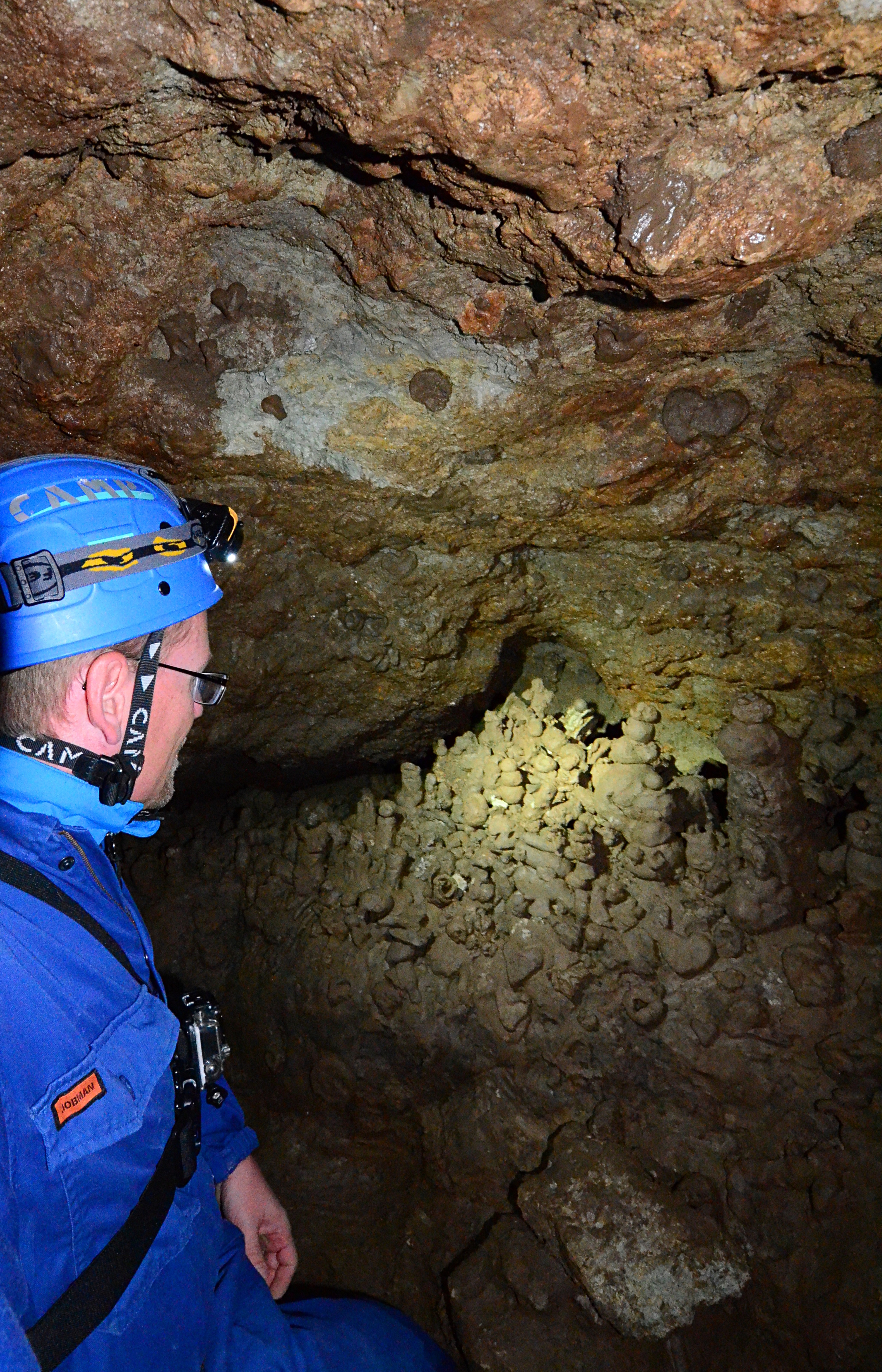 Today, the stairs lead to those large spaces, and the tourists can walk through the cave along paved pathways. The cave gets over 100 000 visitors every year. But there is another, a more interesting way to enter the cave - even for us who are interested in trying out caving but have no experience to do it on our own. An adventure group takes ten wannabe explorers into the cave along with two guides.