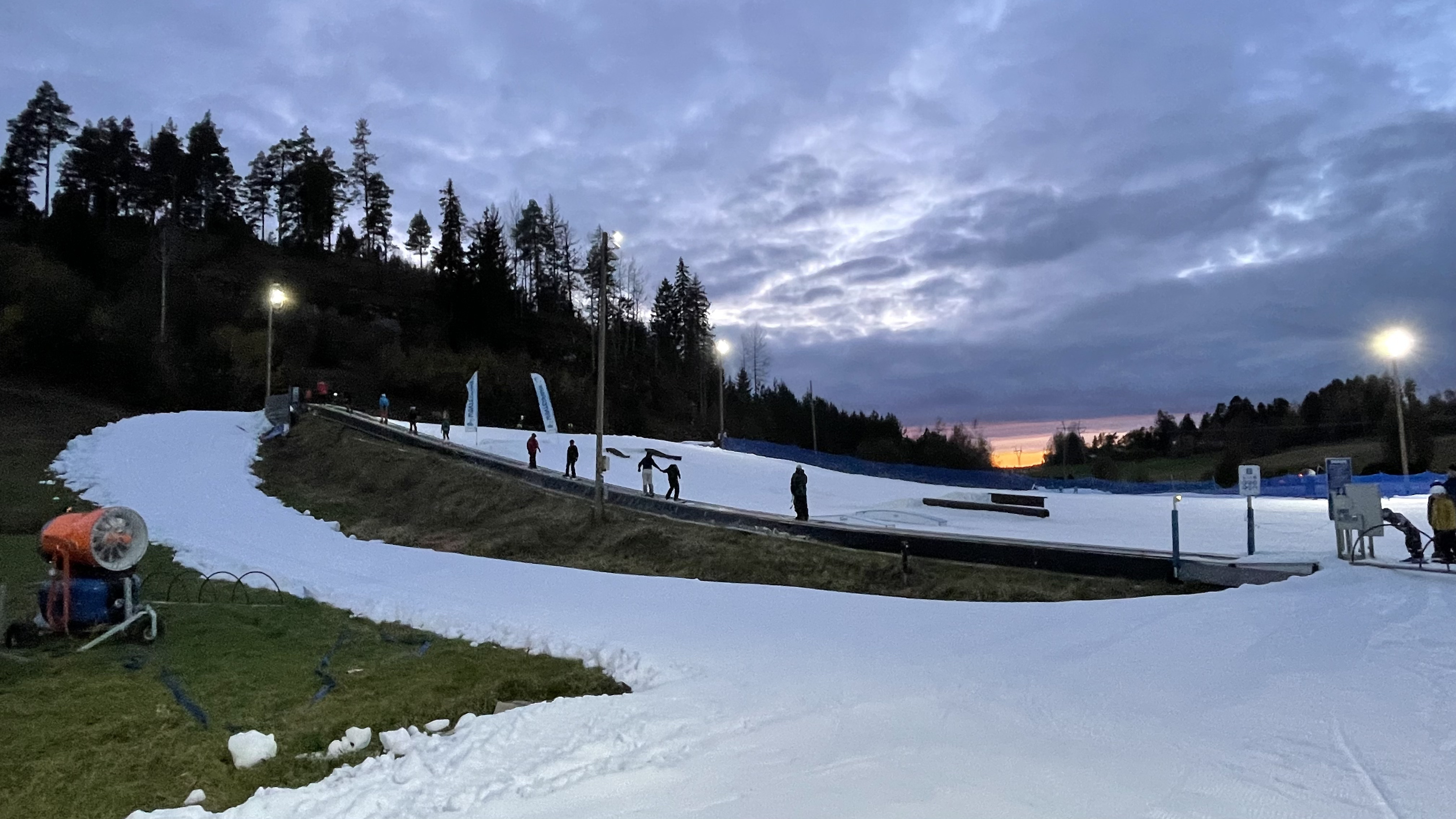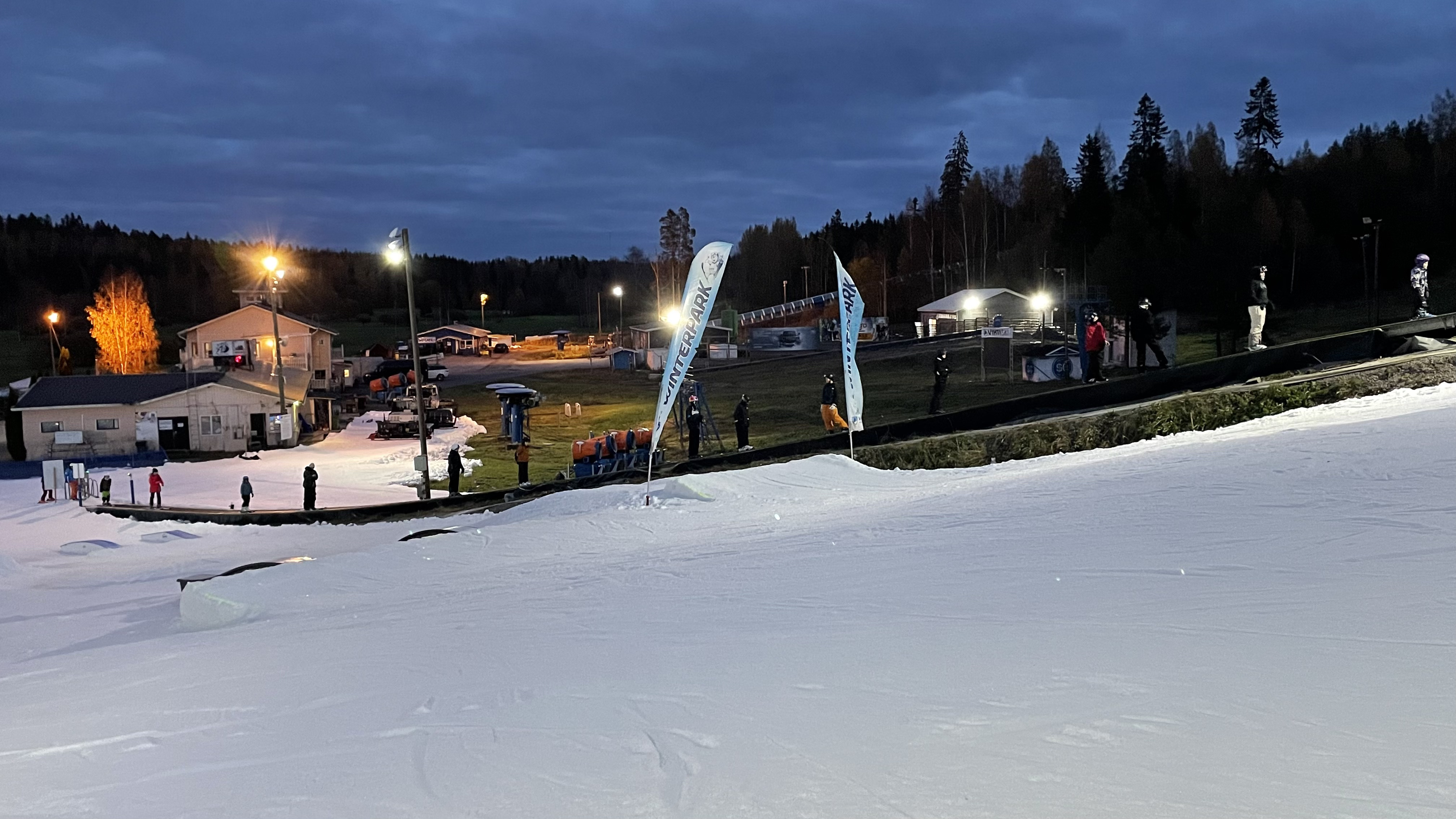 Wow, I missed the opening the day by one day, but no matter. The slopes at Vista are running at full speed! Or slope, rather. There's just the children's training slope. And full speed is not exactly Ludicrous Speed, it felt a bit like standing on a carpet and waiting for it to move. For sure it was worth to pay 39€ for the lift ticket to ski on this for an hour? Still, wonderful. Everyone seemed to be having a lot of good time. I did too! Kudos to Vihti, Hyvinkää, and Talma opening their slopes so early this year!