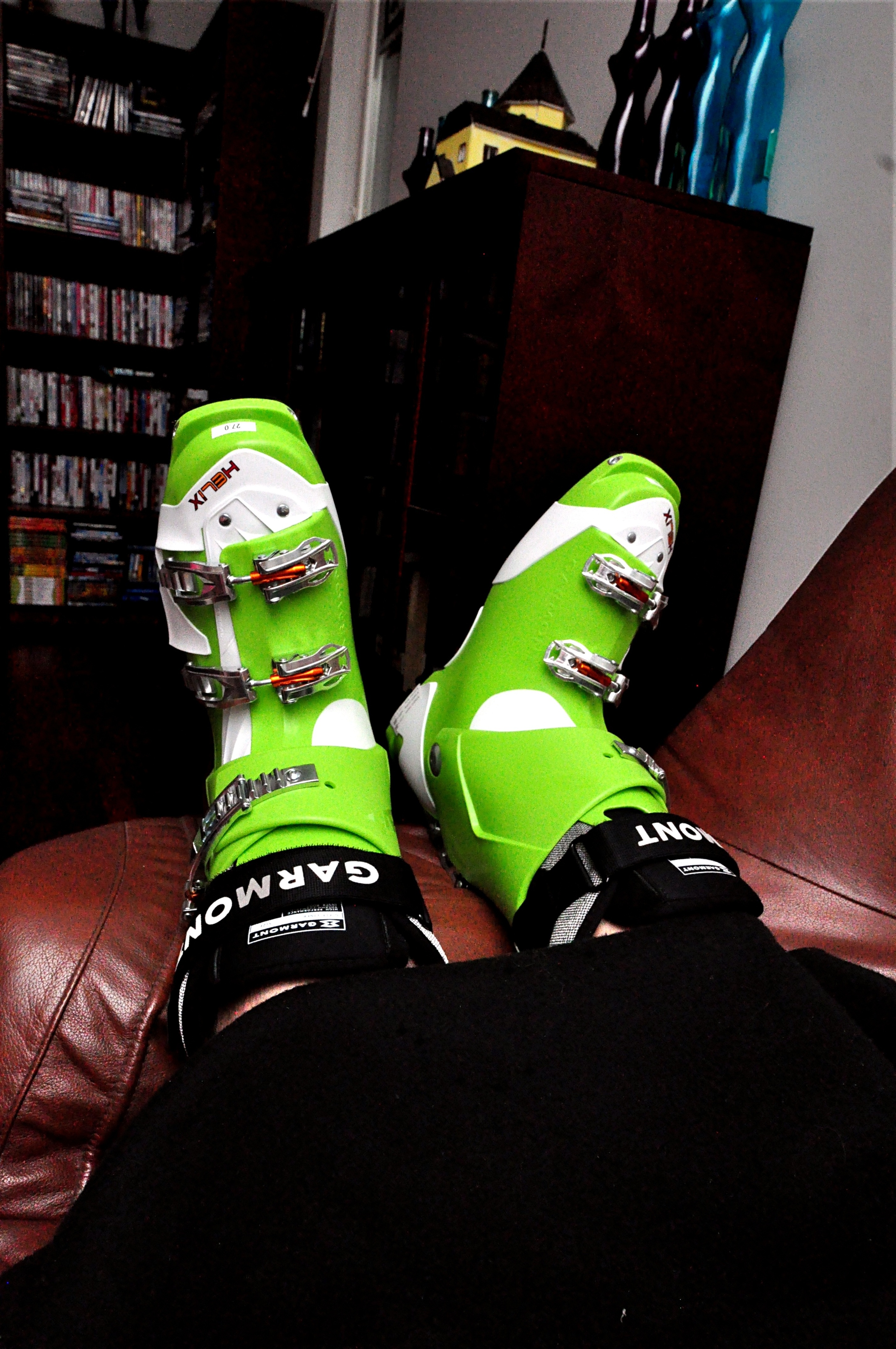 Resting on the sofa and getting used to the new boots