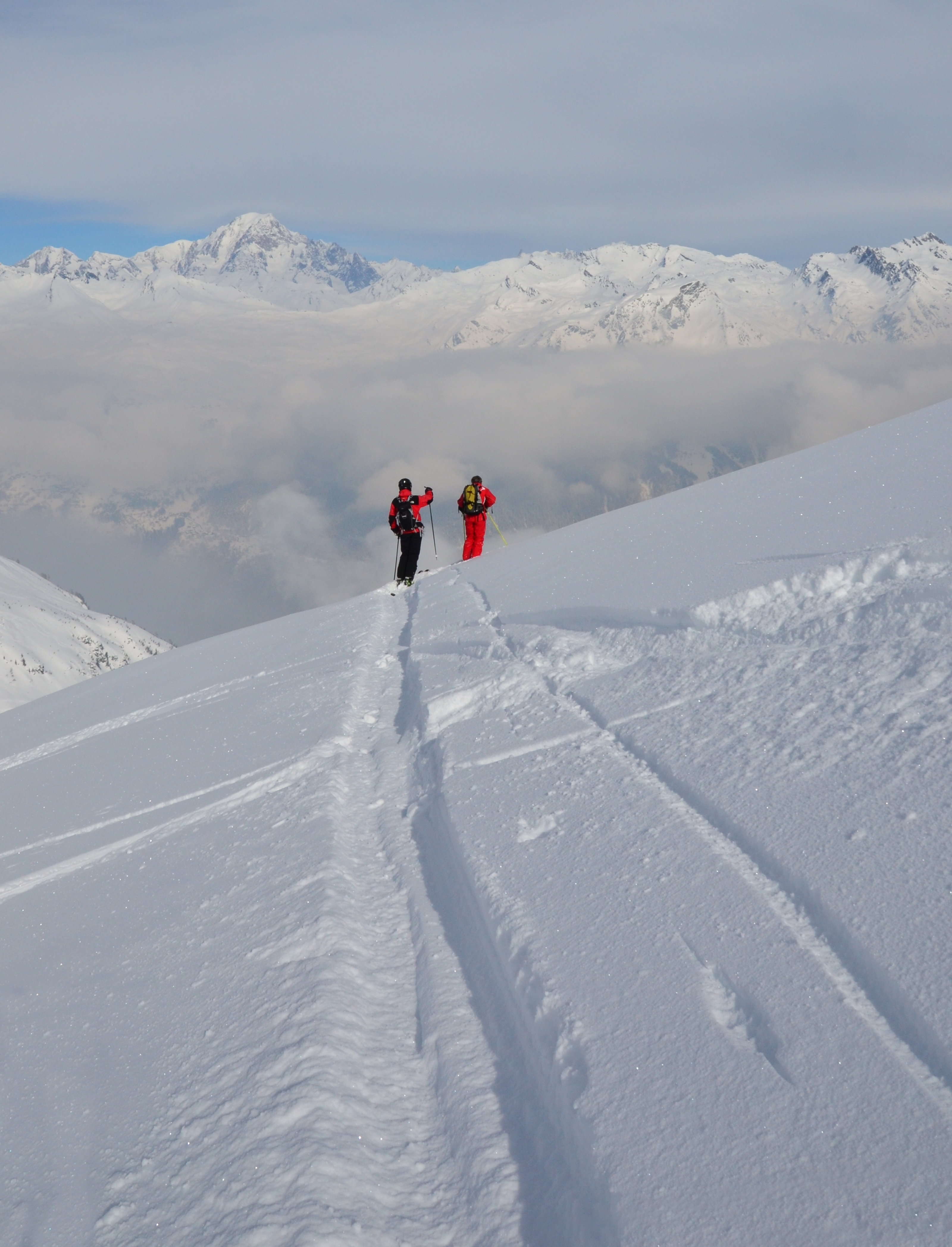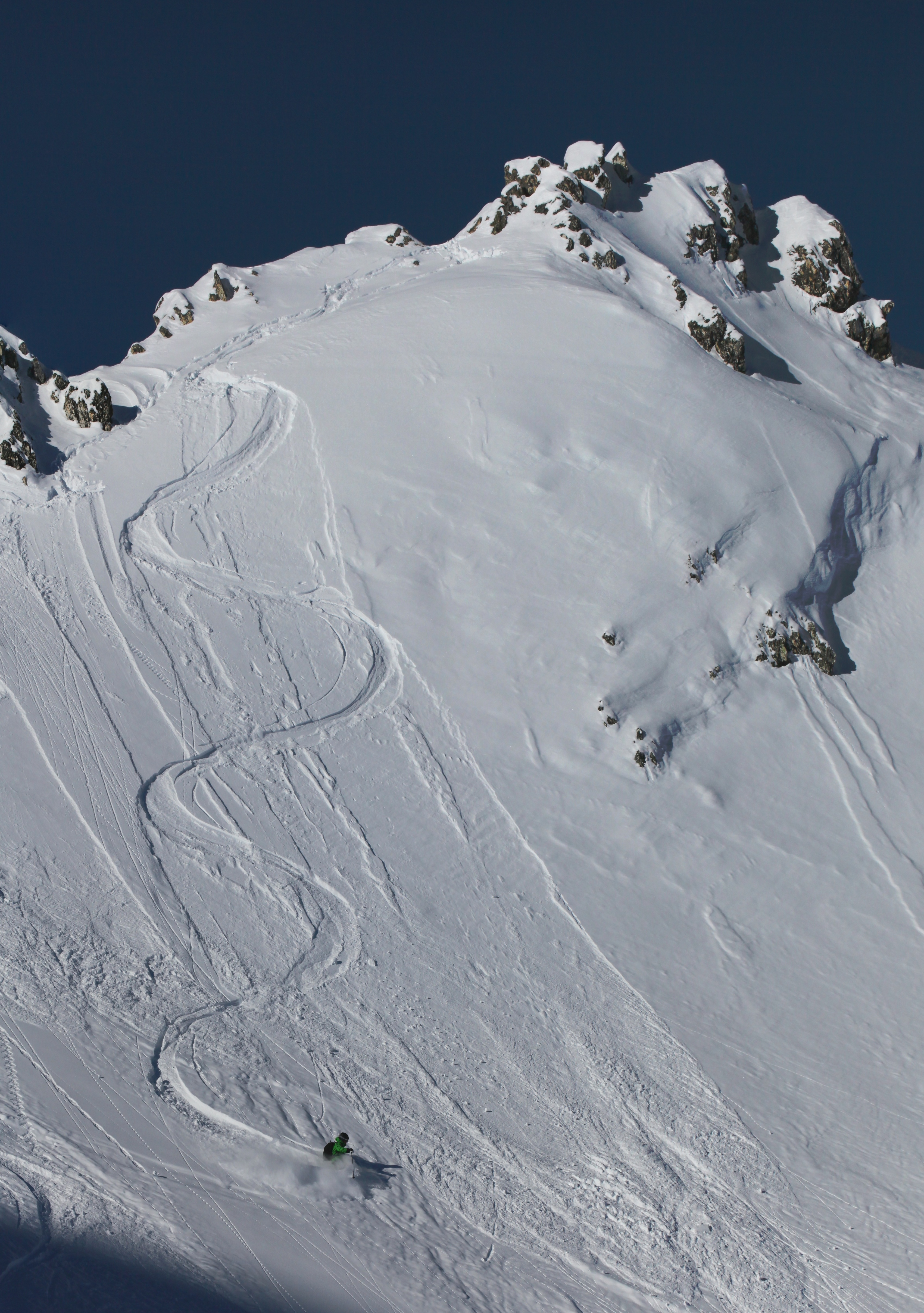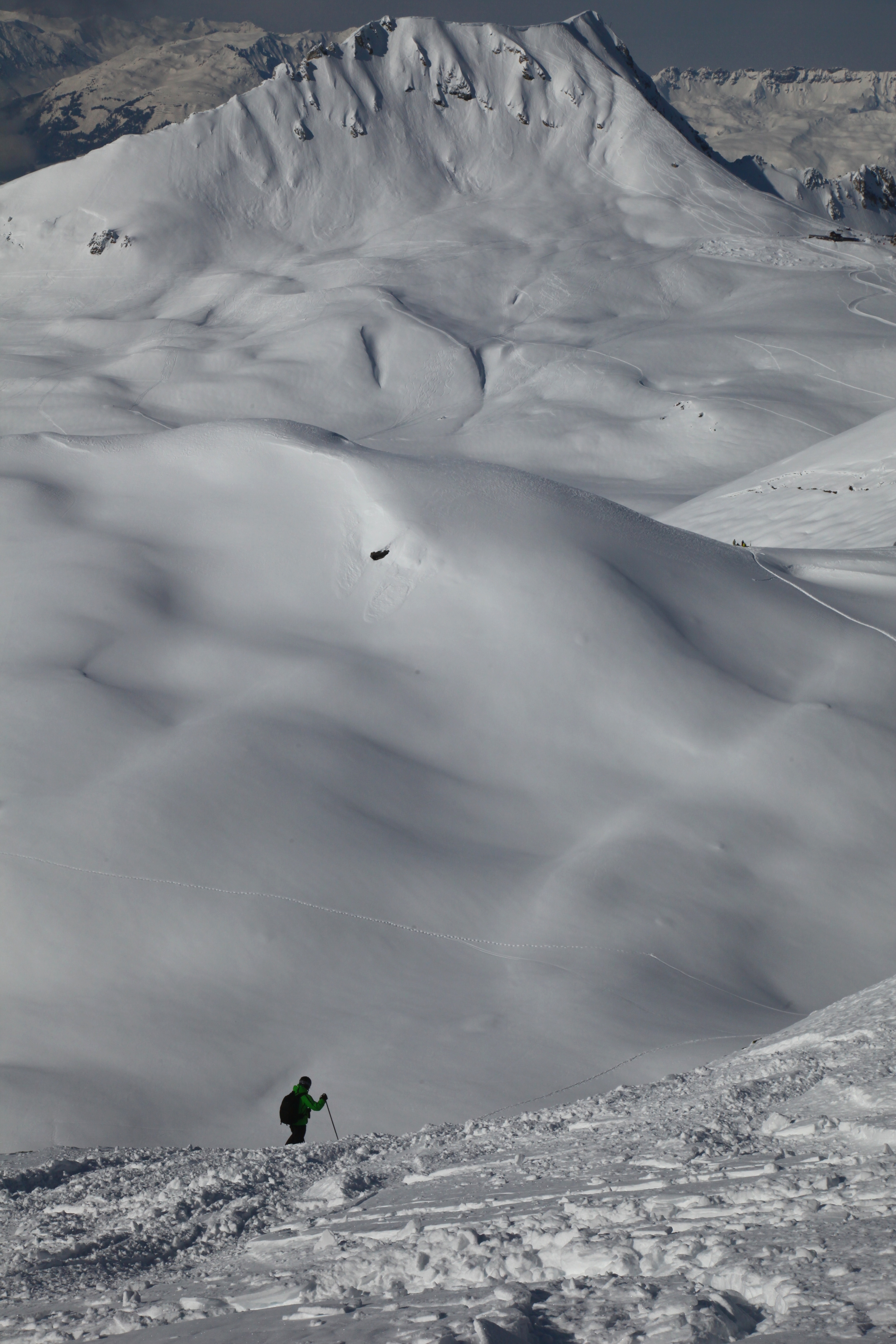 Les Arcs is certainly worth visiting for any type of skier. For the skiers that want to stay on piste, there is plenty of variation and the area in general feels more accessible and compact than, say, Les 3 Vallees. Most of the area is for actual skiing, not for long traverses to get one place to another. For the off-piste skier, there are a large number of easily accessible routes, and the number of skiers taking the advantage of these routes is small. So plenty of snow left! Recommended. But remember to do this only if you have the equipment, expertise, and guides necessary to do it safely.