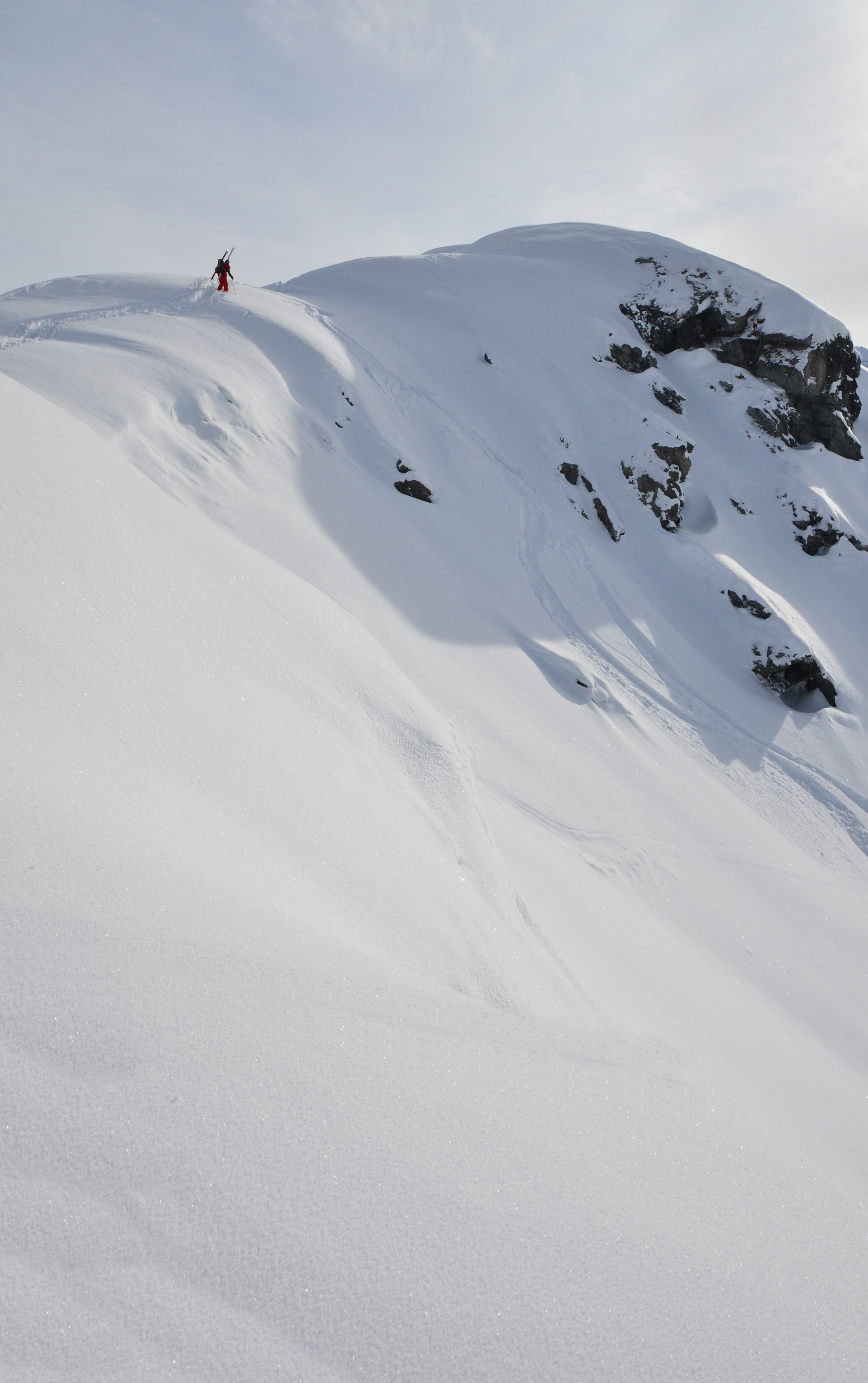 Nevertheless, this small ridge was my best run on this trip. I wish I would have had time to do a couple more climbs. The ridge had space for dozens of attempts on fresh section of snow. In addition, I had chosen the least steep route on my first attempt, and the other ones would have been more interesting. And with some training, I could have skied at a higher speed, making the runs look better. As it was, we had an airplane to catch and had to leave.