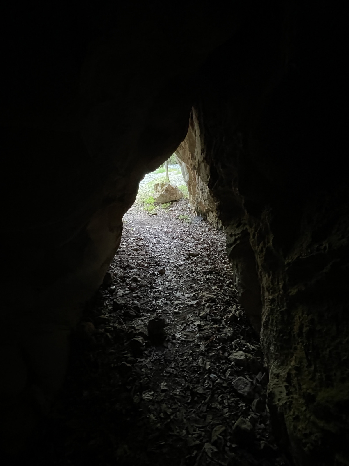 The cave is also a bit higher, maybe 2 meters from the ground, so you have to climb the easy rock underneath it to reach the actual cave.