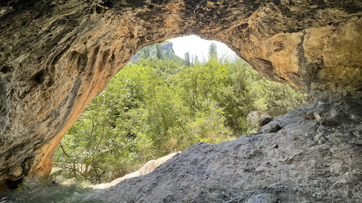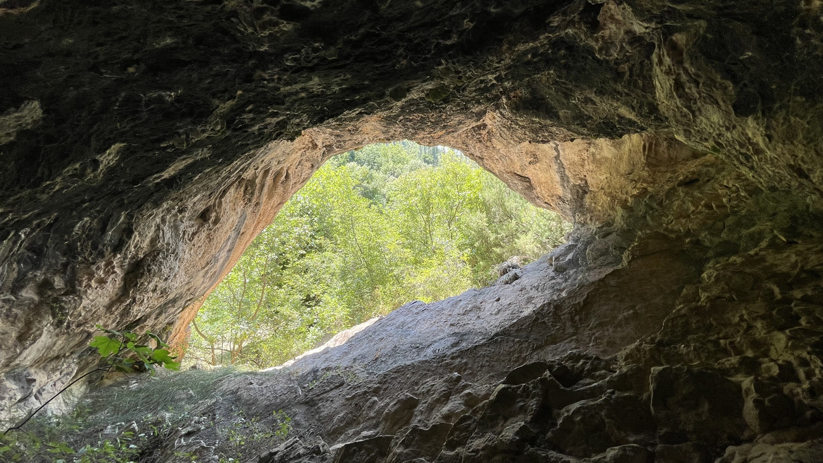 It is a very nicely shaped, oval-formed cave, 8.5 meters into the cliff.