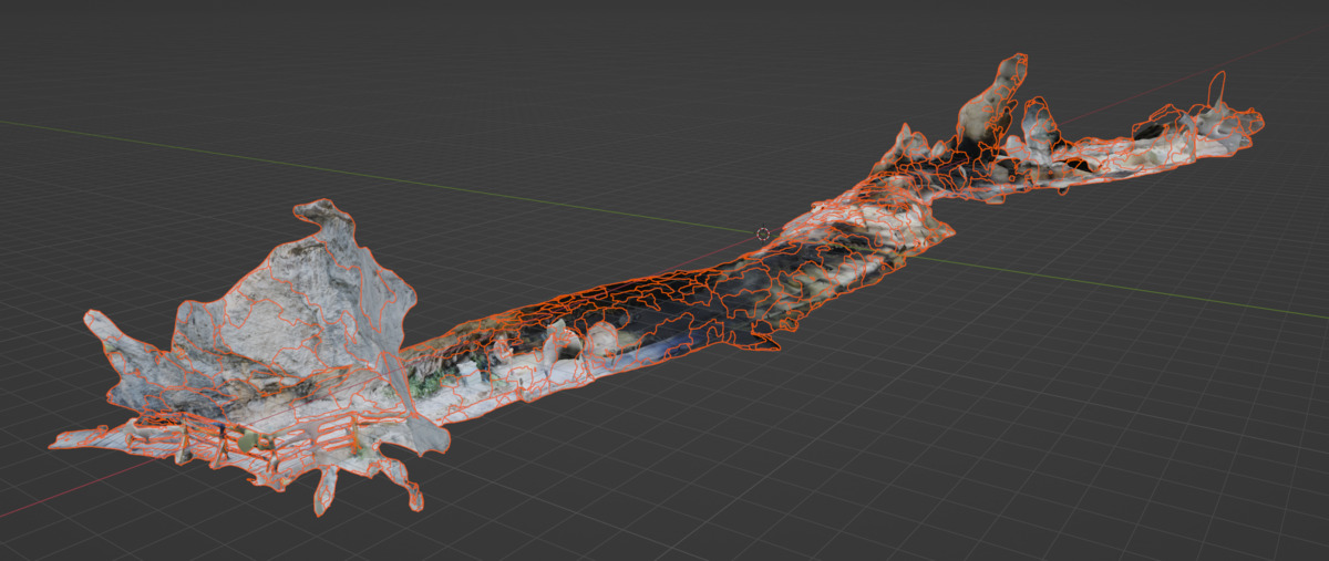 I scanned the cave, here are the 3D model links (GLB, Blender), a rotatable model for your browser, and the high-resolution PDF map. And this is what the map and the model look like: