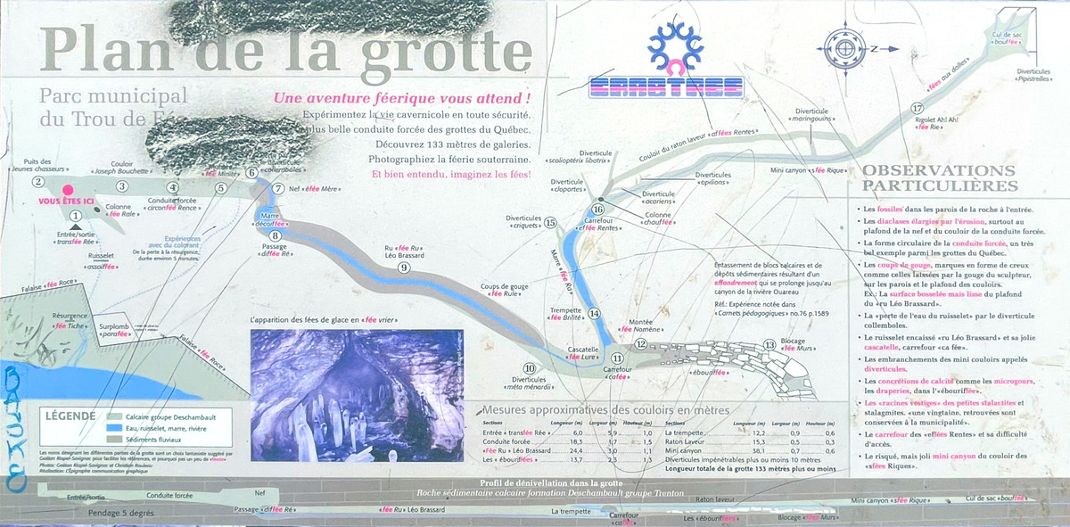 For more information about the cave and access, try these web sites: Tourism Joliette, Crabtree. I visited the cave in (late) summer 2024.