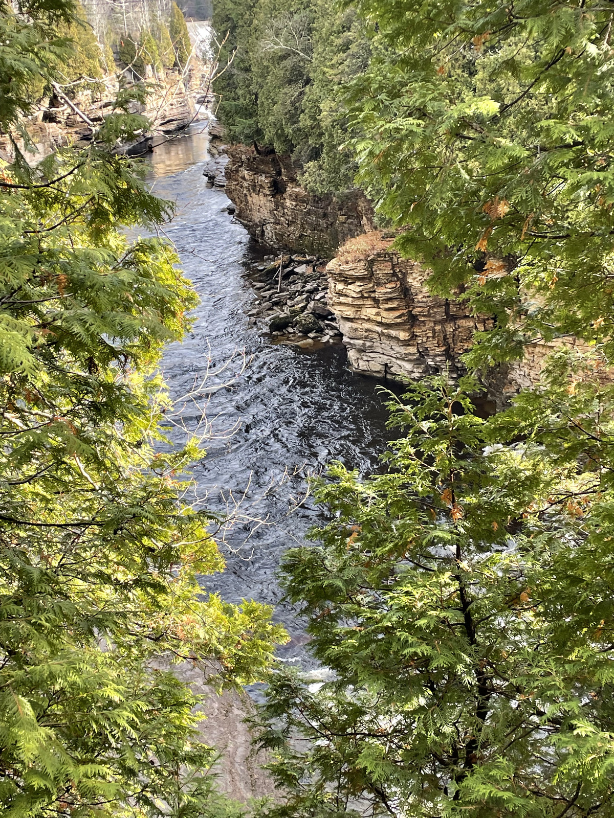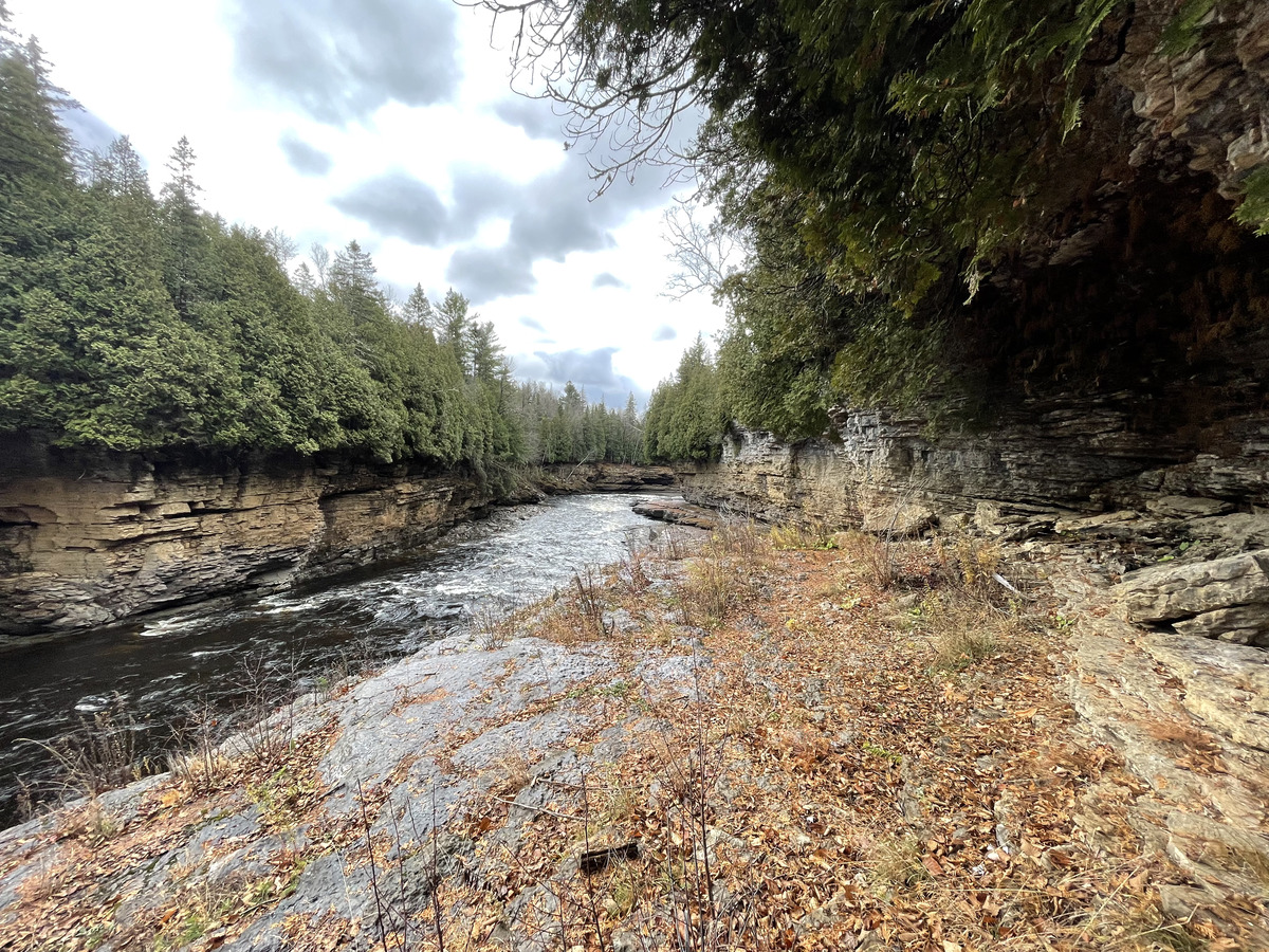 The Portneuf municipality is half way between Trois-Rivières and Quebec cities, on the north side of the St. Lawrence river. A bit north of them lies the Saint-Alban village and there is the natural park, Parc Naturel de Portneuf. And two wonderful caves, the Grotte le Trou du Diable and Grotte aux Cascatelles. The first one is a Quebec speleological society's organized touring cave, a wet wading cave. I was not able to do this tour, since it was out of the season. In any case, summer would probably be a nicer time to be deep in the water. The second one is cave by the gorge-like river Sainte-Anne, where a small stream has carved a cave to short-cut the gorge walls.
