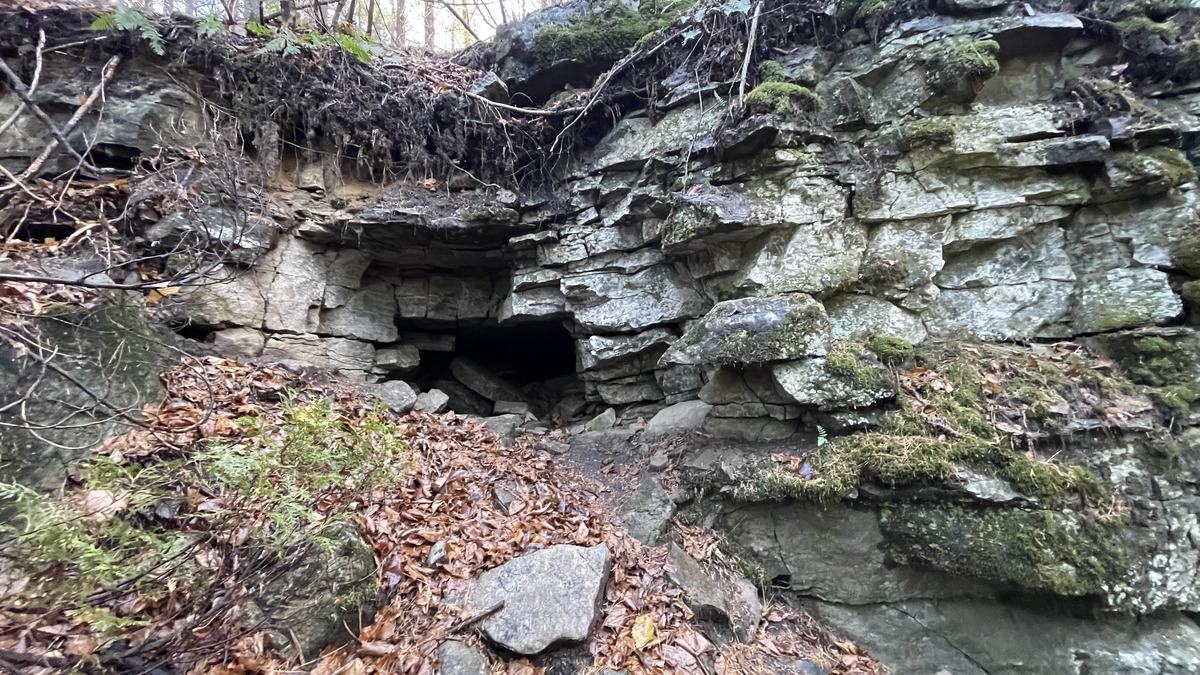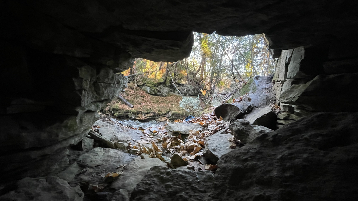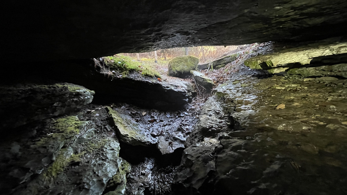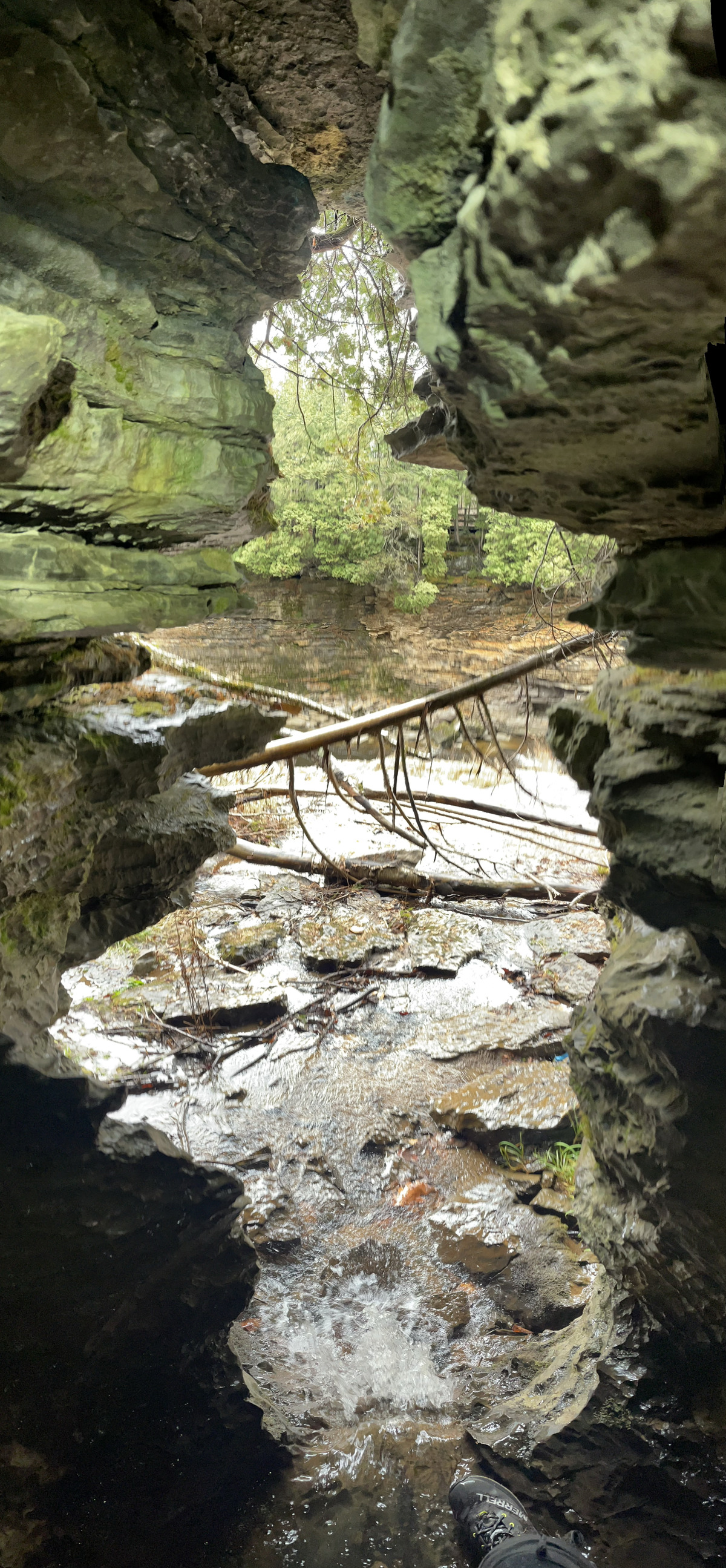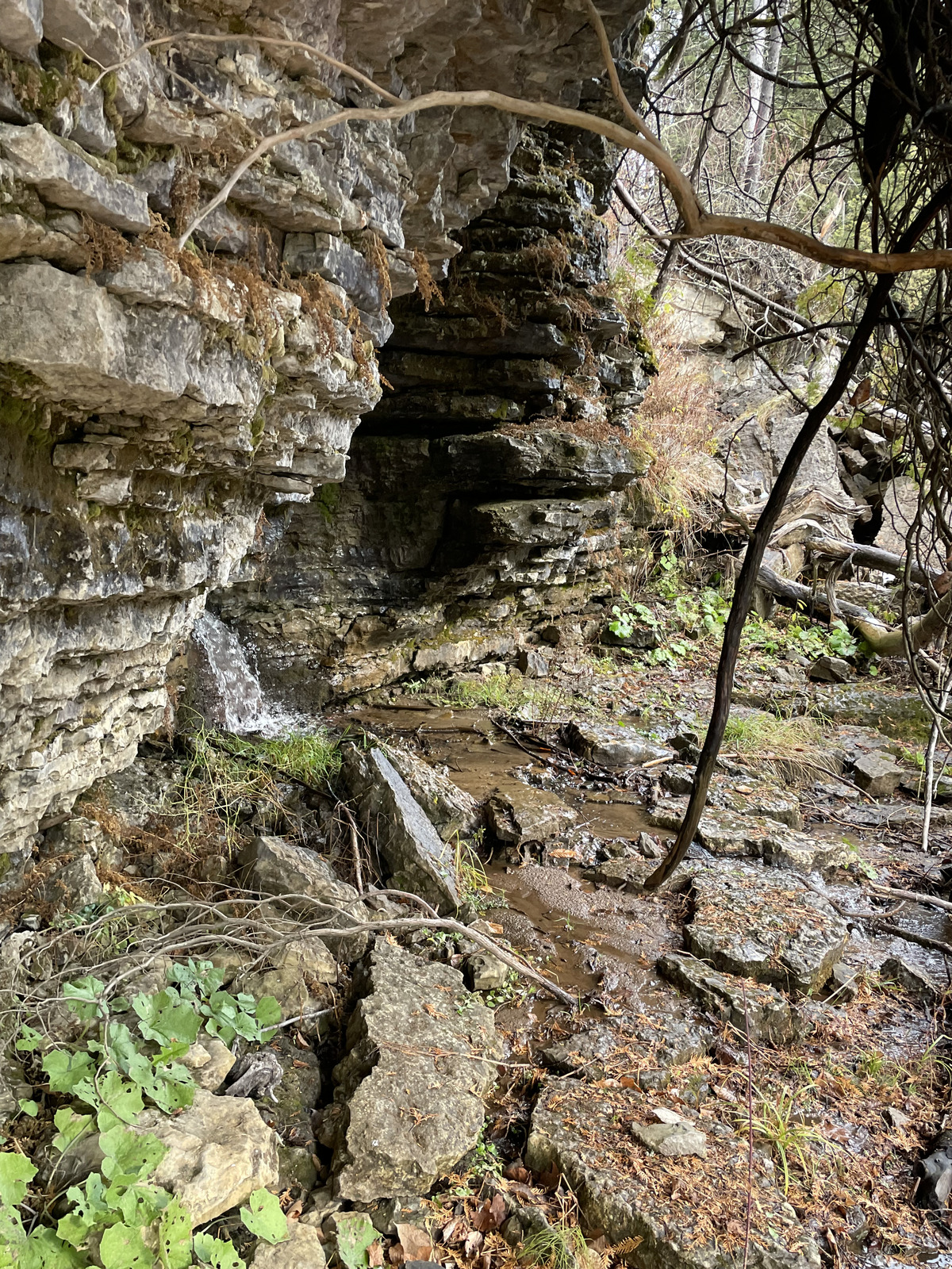 Some photos of this cave below, the first entrance here pictures below. There's actually two entrances here, one dry and one with flowing water:
