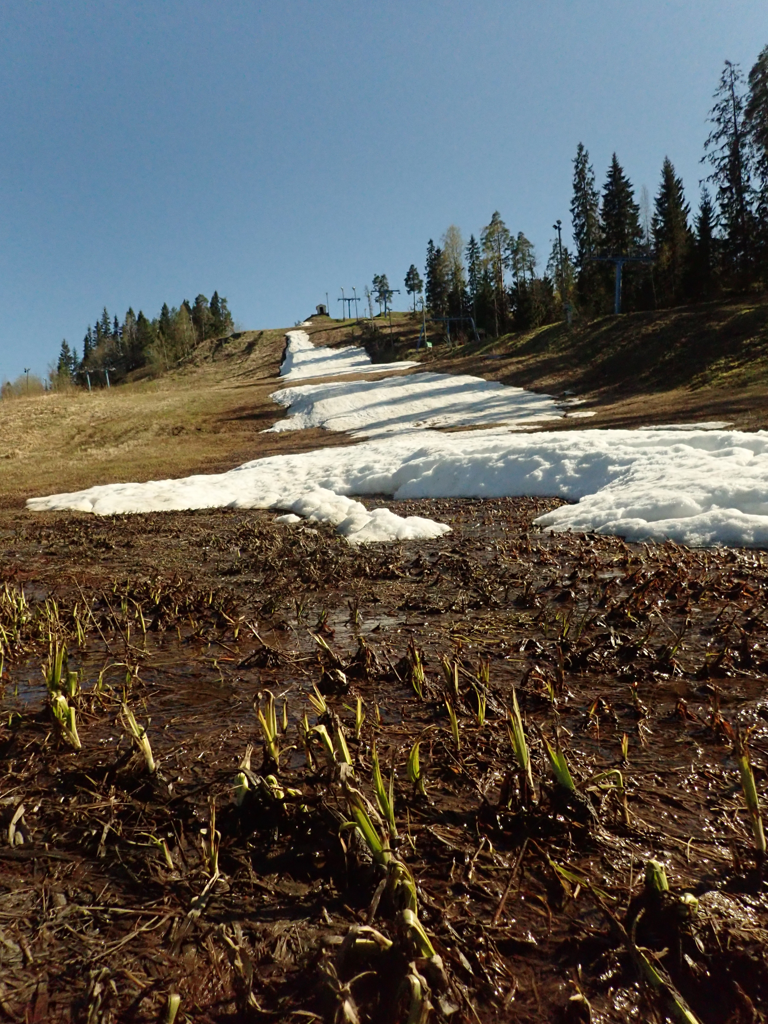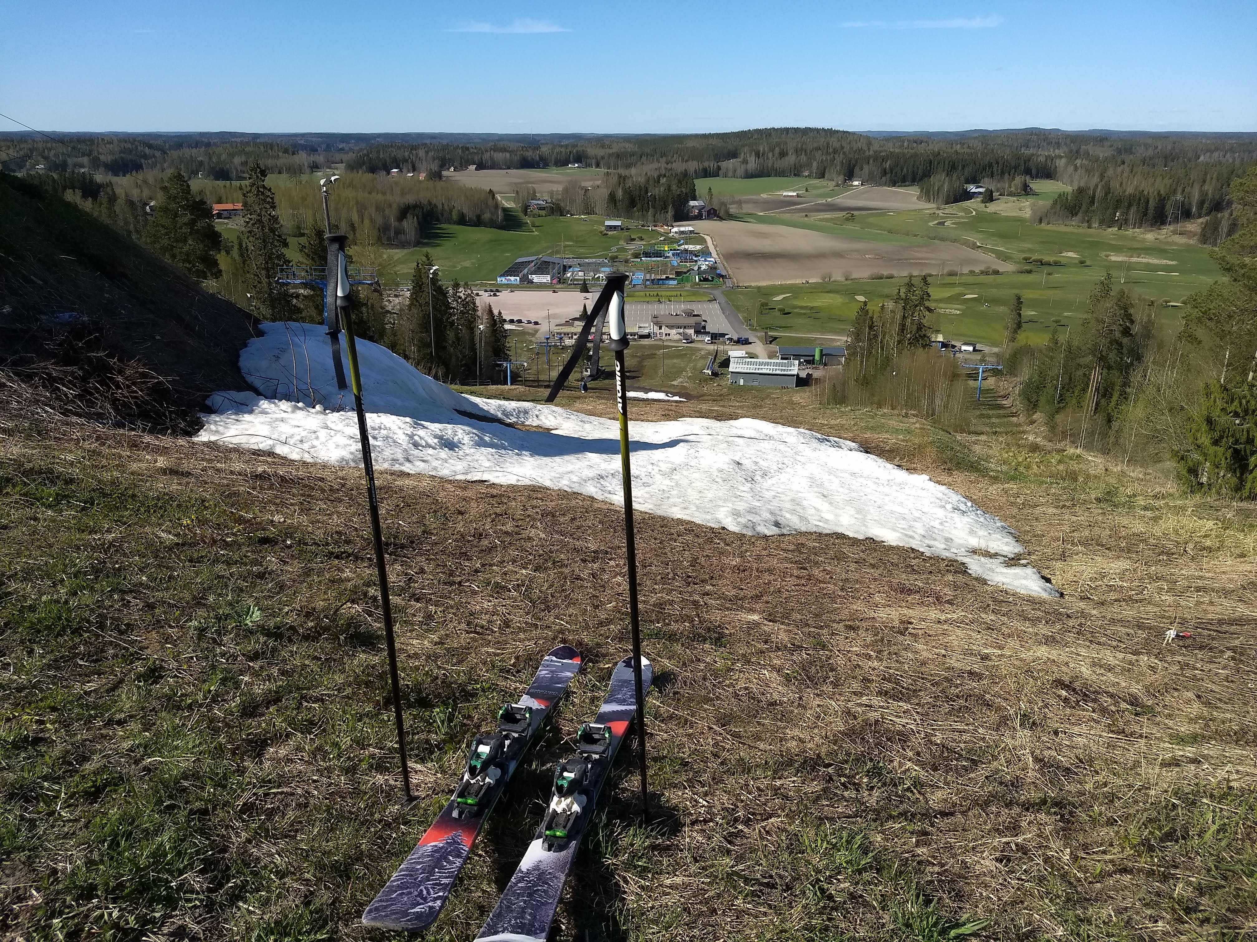 Tero and I went to Vihti to see if we could still ski it. Vihti is the best, much snow left! A few parts not covered in snow, but one can ski through them!