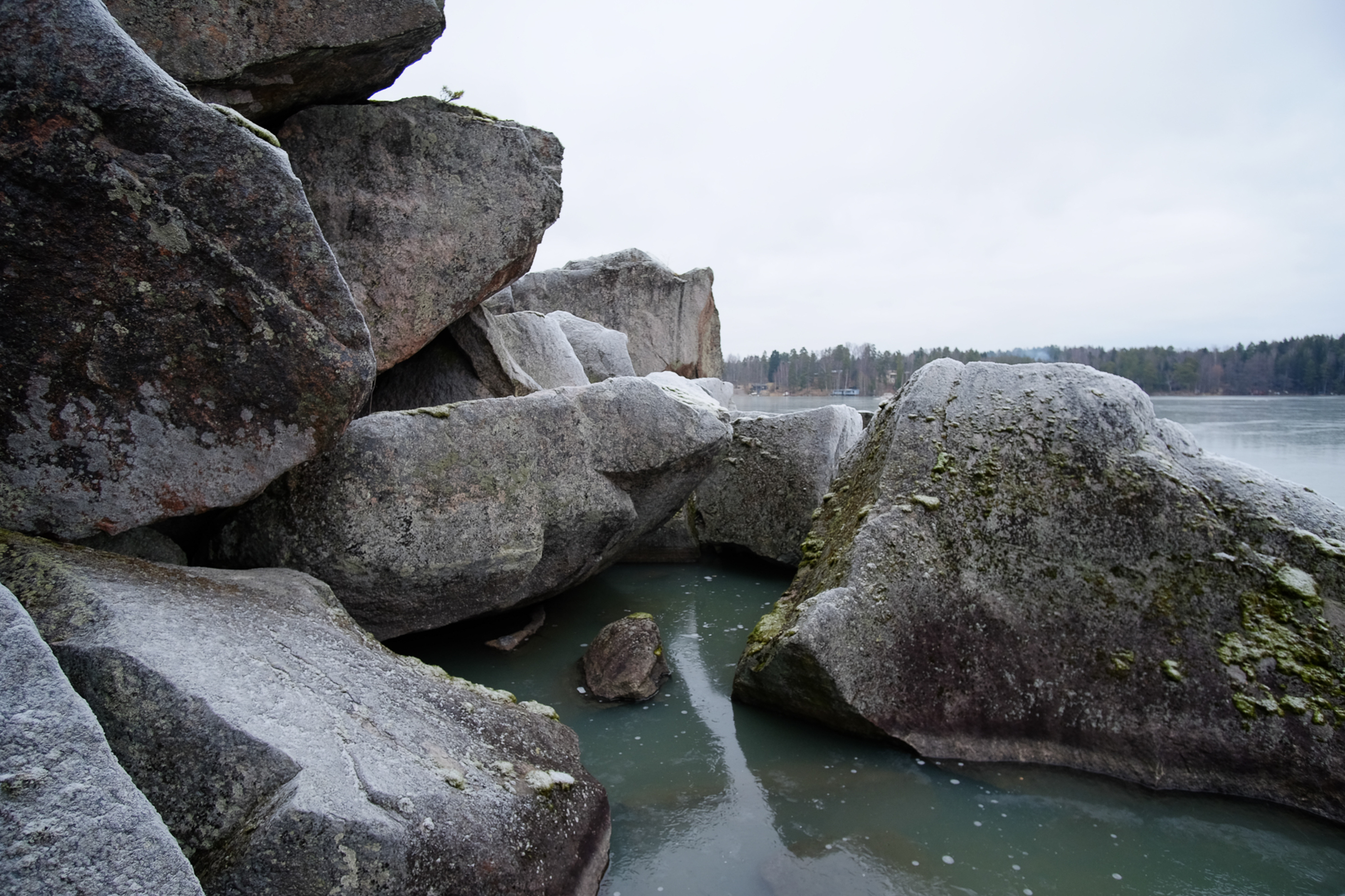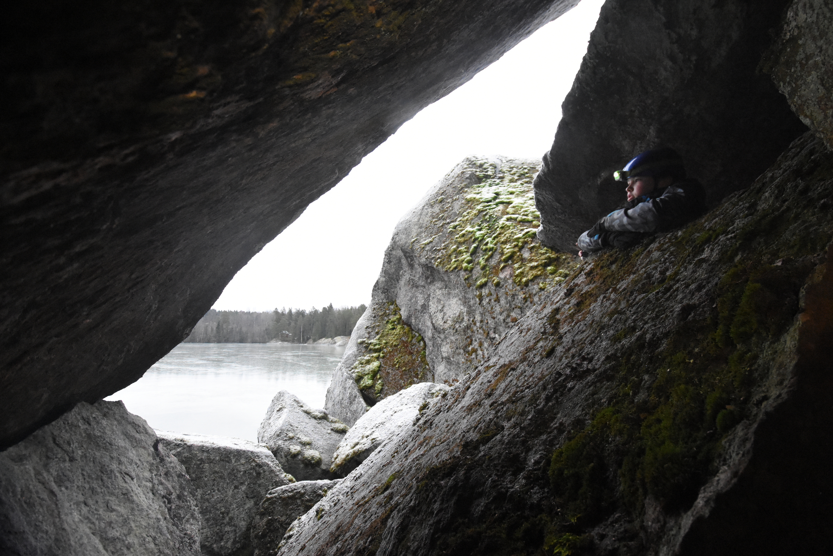 Imagine rocks thrown together, all sizes all the way up to house-sized boulders. Korkberget doesn't get more than a brief mention in "Caves of Finland". But it is one of the biggest caves in our area, and quite a maze.