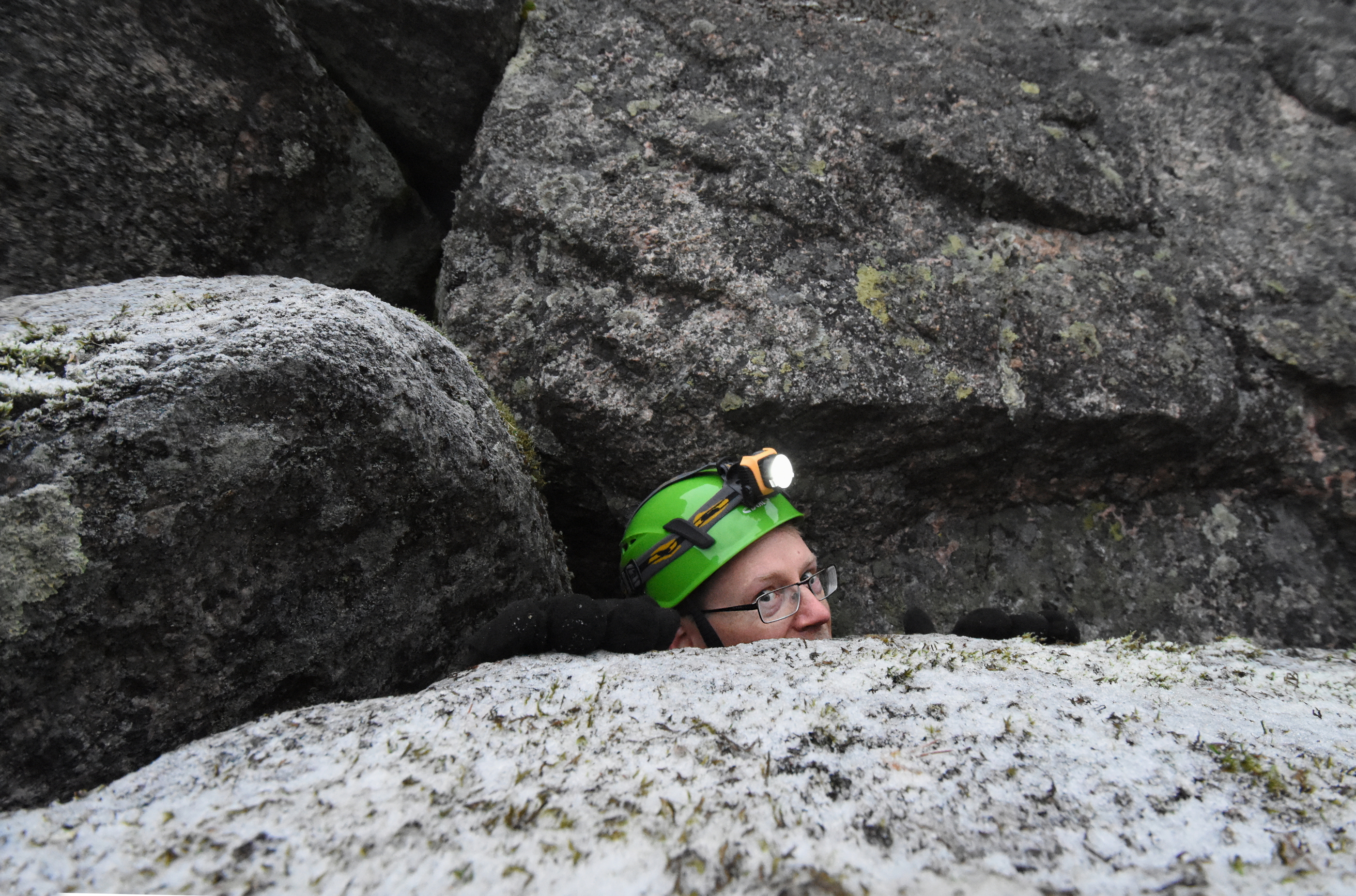 And then thing being five meters below in a tight pile of rocks was that the smaller rocks sometimes moved. This was not building up my confidence, though I suppose the big boulders have been where they are for thousands of years.