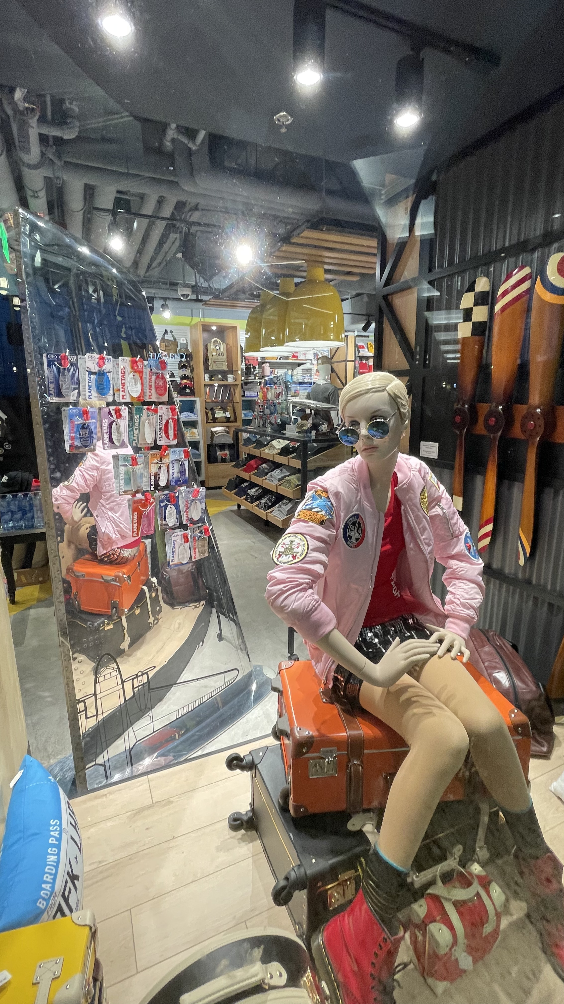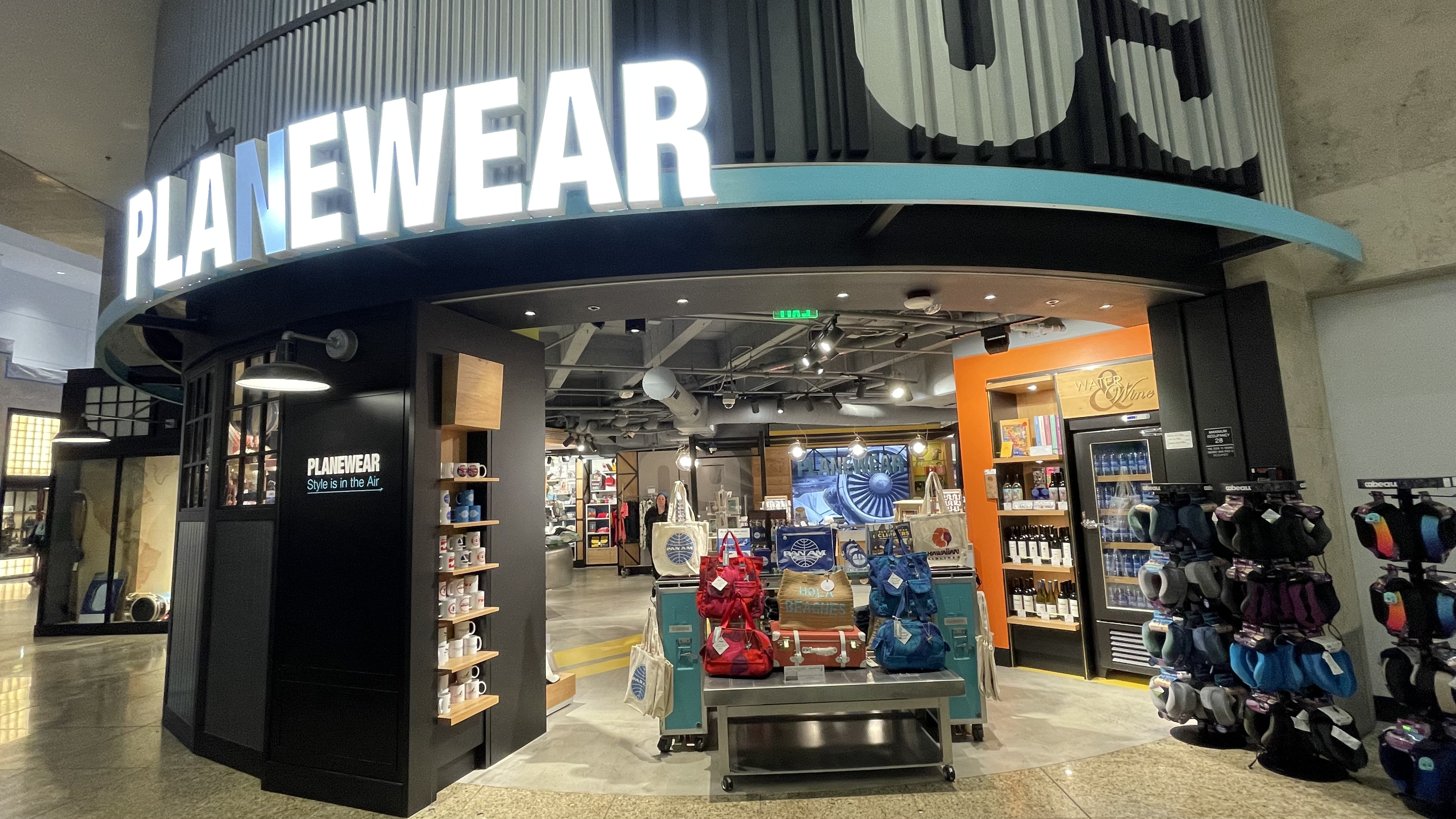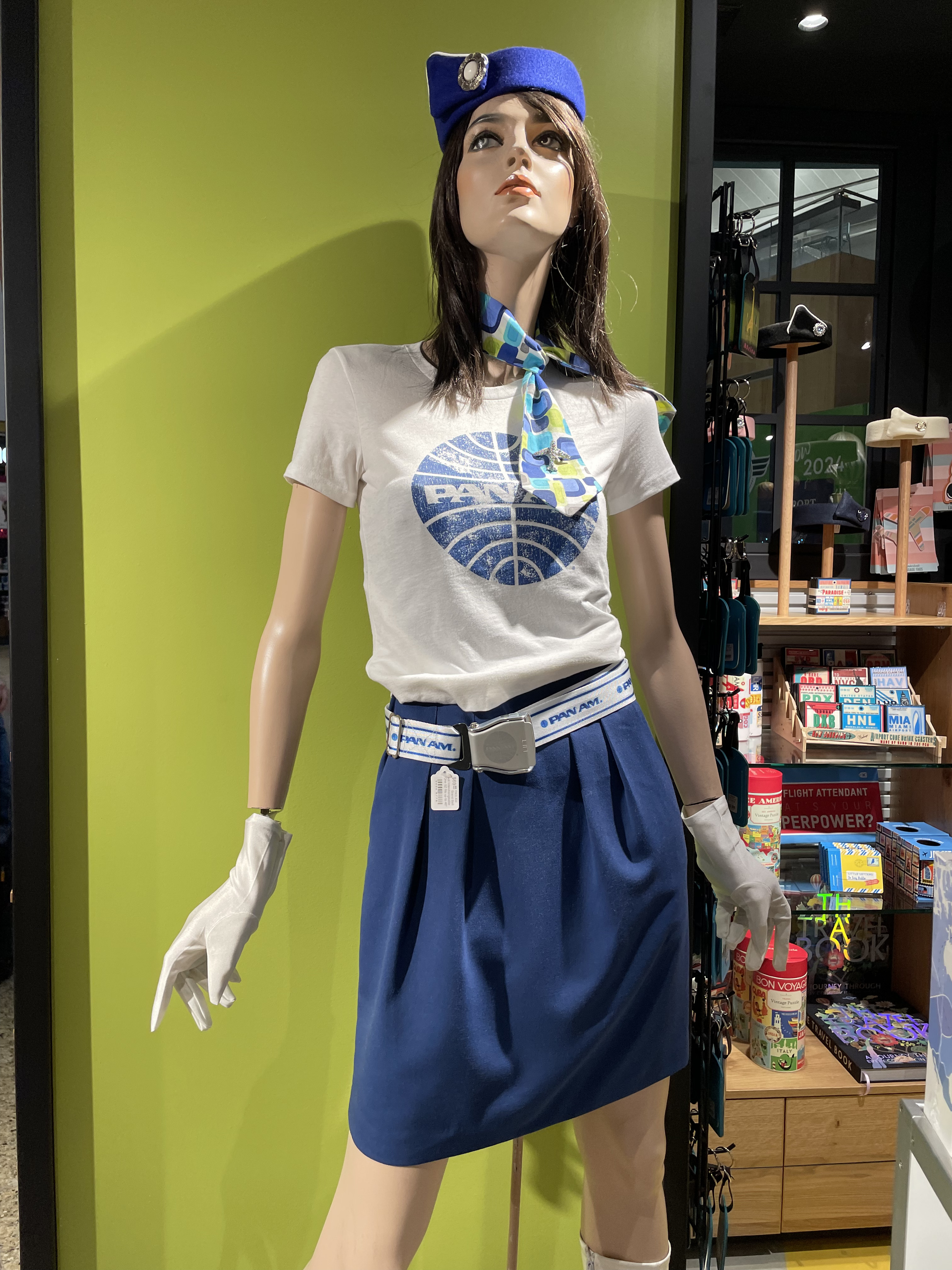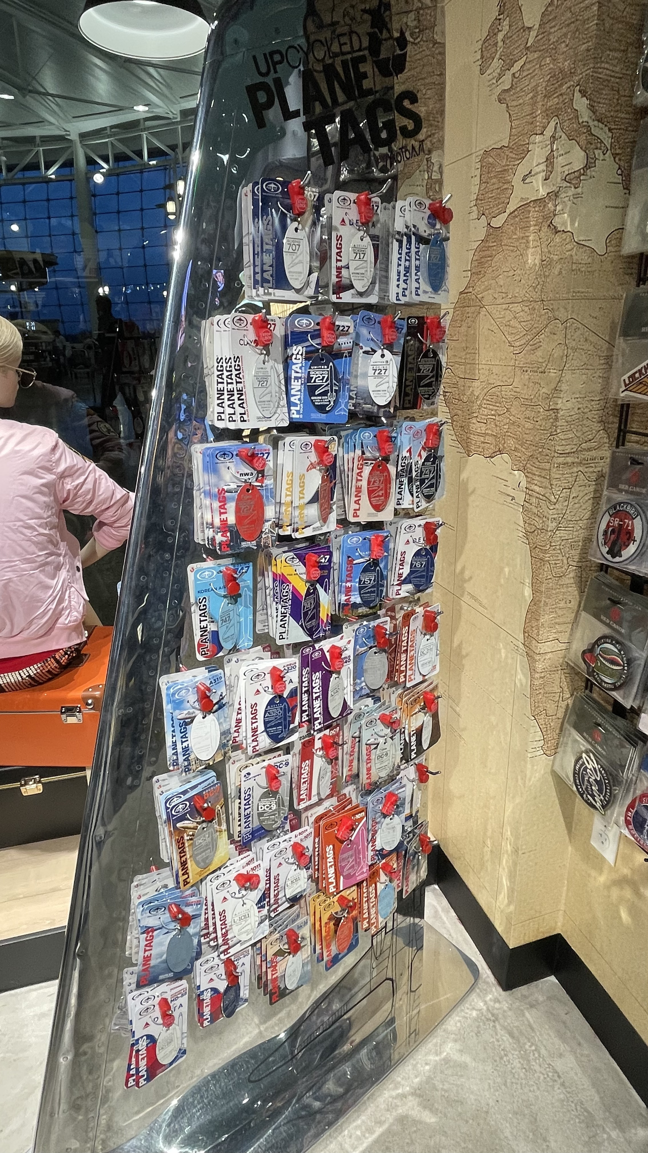 The PLANEWEAR shop sells airplane memorabilia, like Pan Am clothing, aluminium strips from dismantled, historic airplanes, luggage tags, various "remove before flight" and "crew" tags, etc. Very nice! Much recommended!