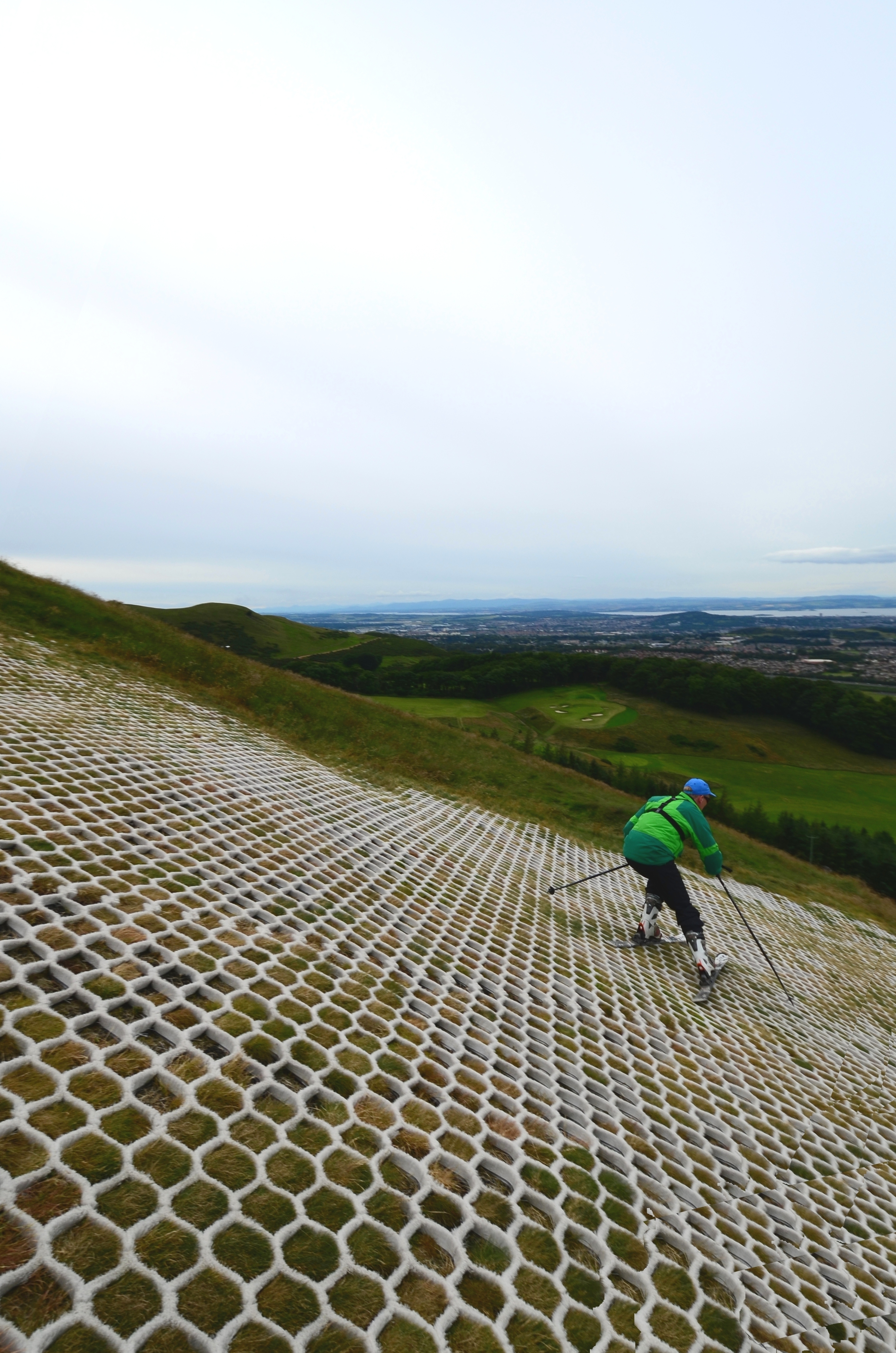 We are at the Midlothian Snowsports Center in Edinburgh, in the middle of the summer. My second day of skiing in the UK.