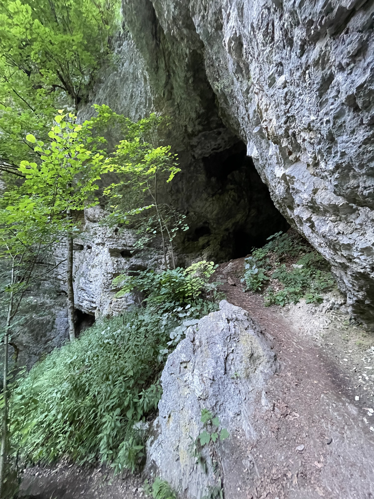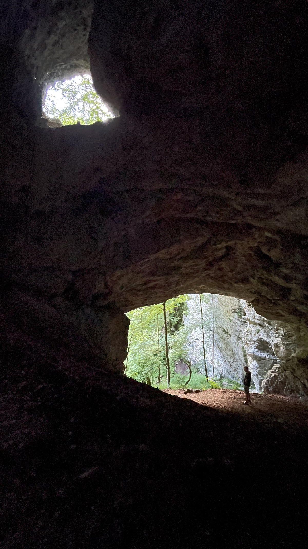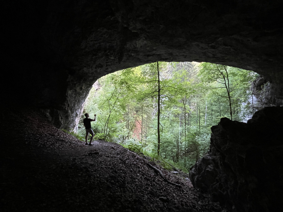 Slovenia. If you are near the wonderful lake, castles, and hills of Bled but are also interested in caves and off the beaten path hiking, check out the Pokljuška soteska or the Pokljuška Gorge. Along the way there's a very nice cave, the Pokljuška luknja. Its several entrances give a striking views inside.