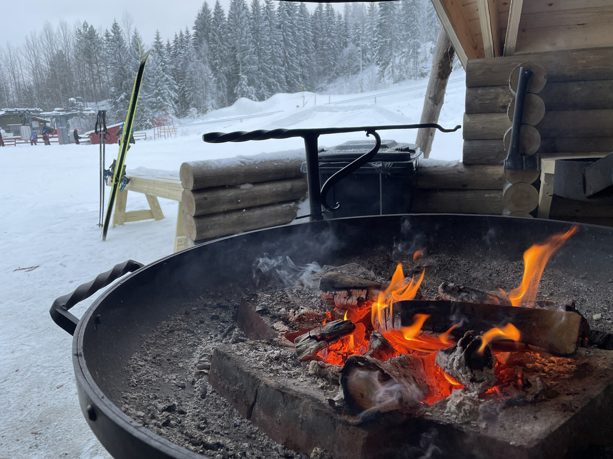 It was a cold day at the hill, around -13 degrees, though not much wind. I did a couple of runs and then warmed up for couple of minutes in the fireplace lean-to before continuing, very nice!